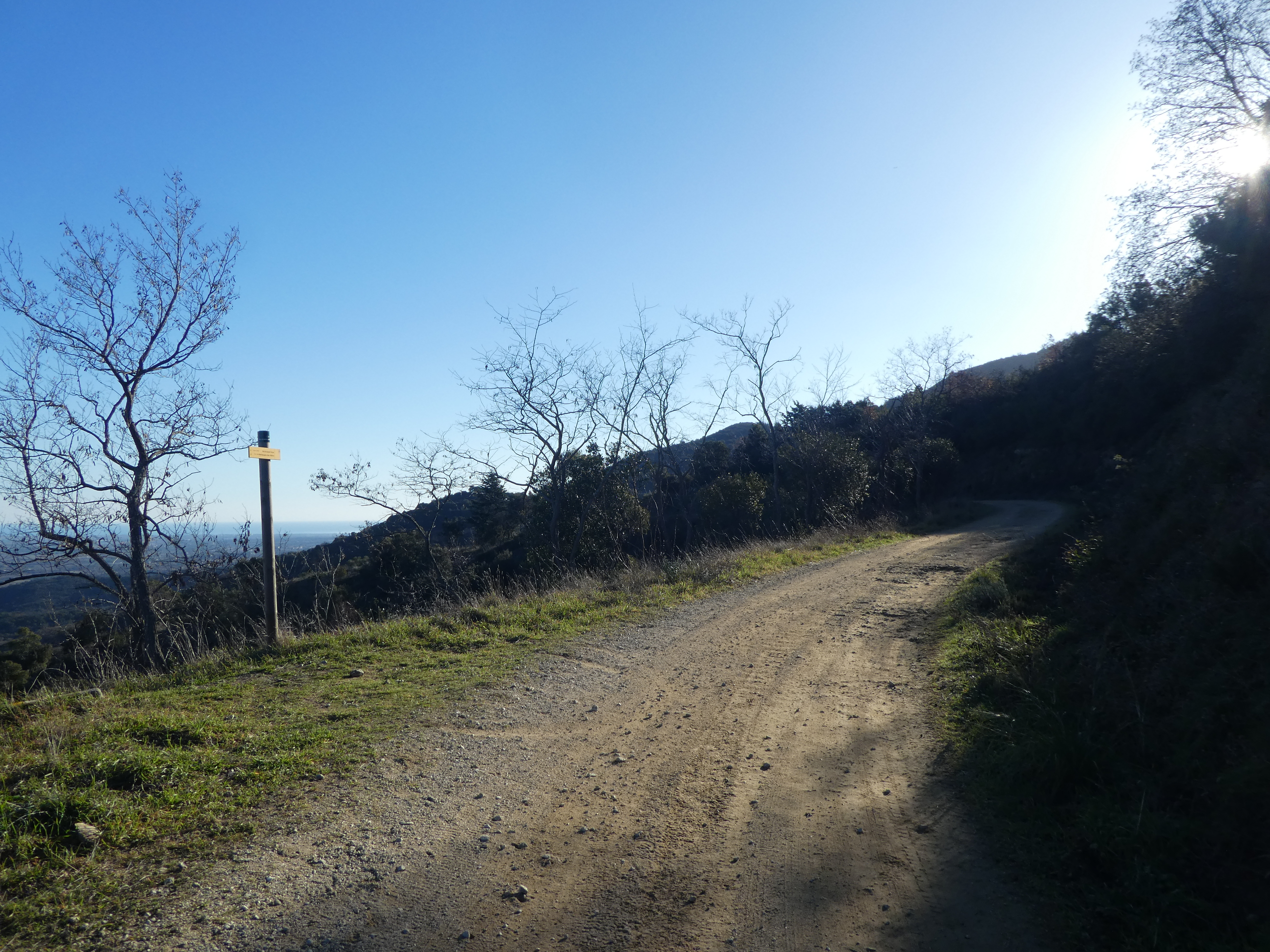 Avant Coll de Llinàs (803 m) : suivre le large chemin partant sur la gauche direction Coll de Llinàs, balisé en jaune