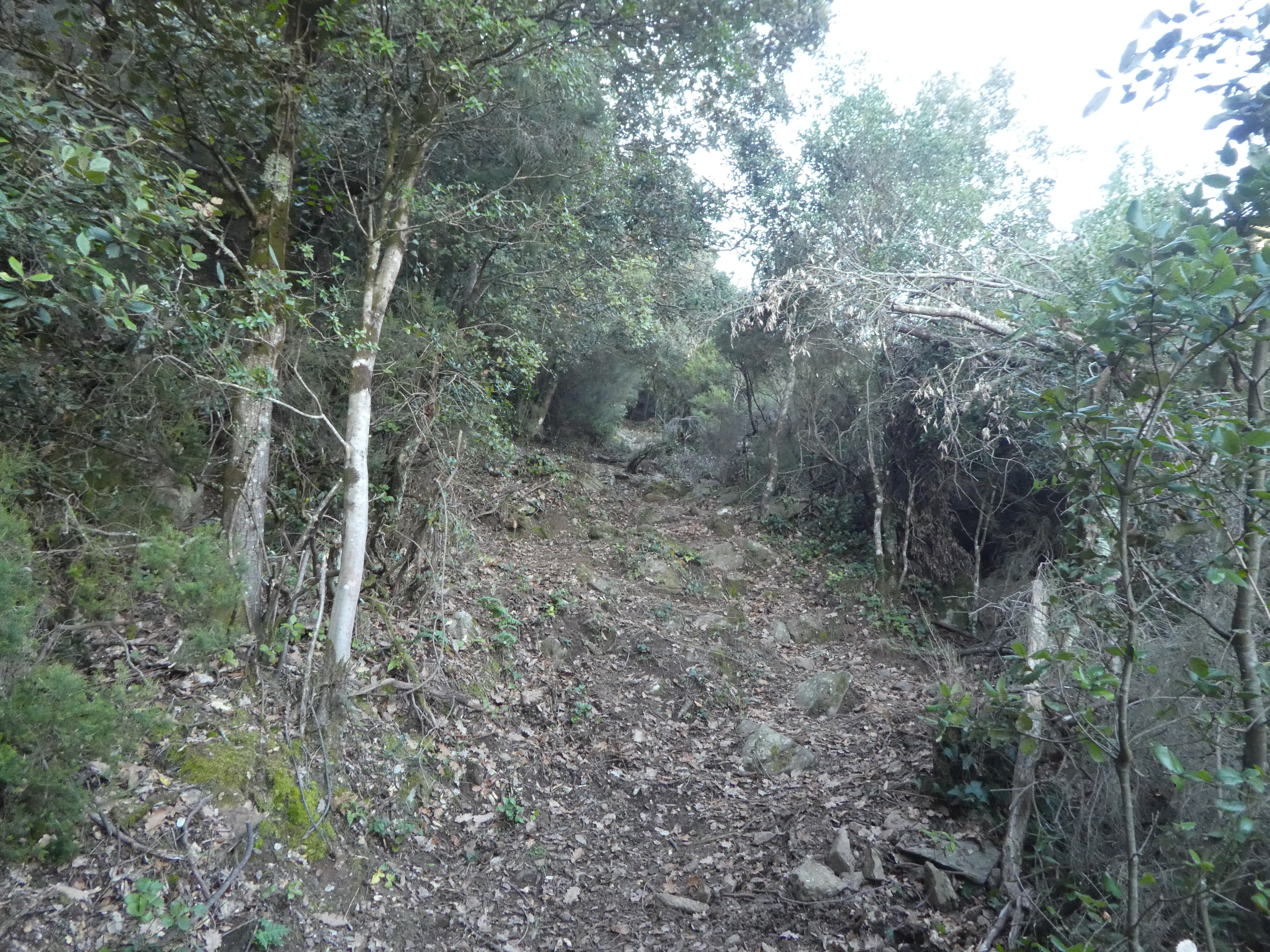 - Montée raide sur le sentier remontant le Còrrec de Sant Cristau jusqu'au Coll de Llinàs