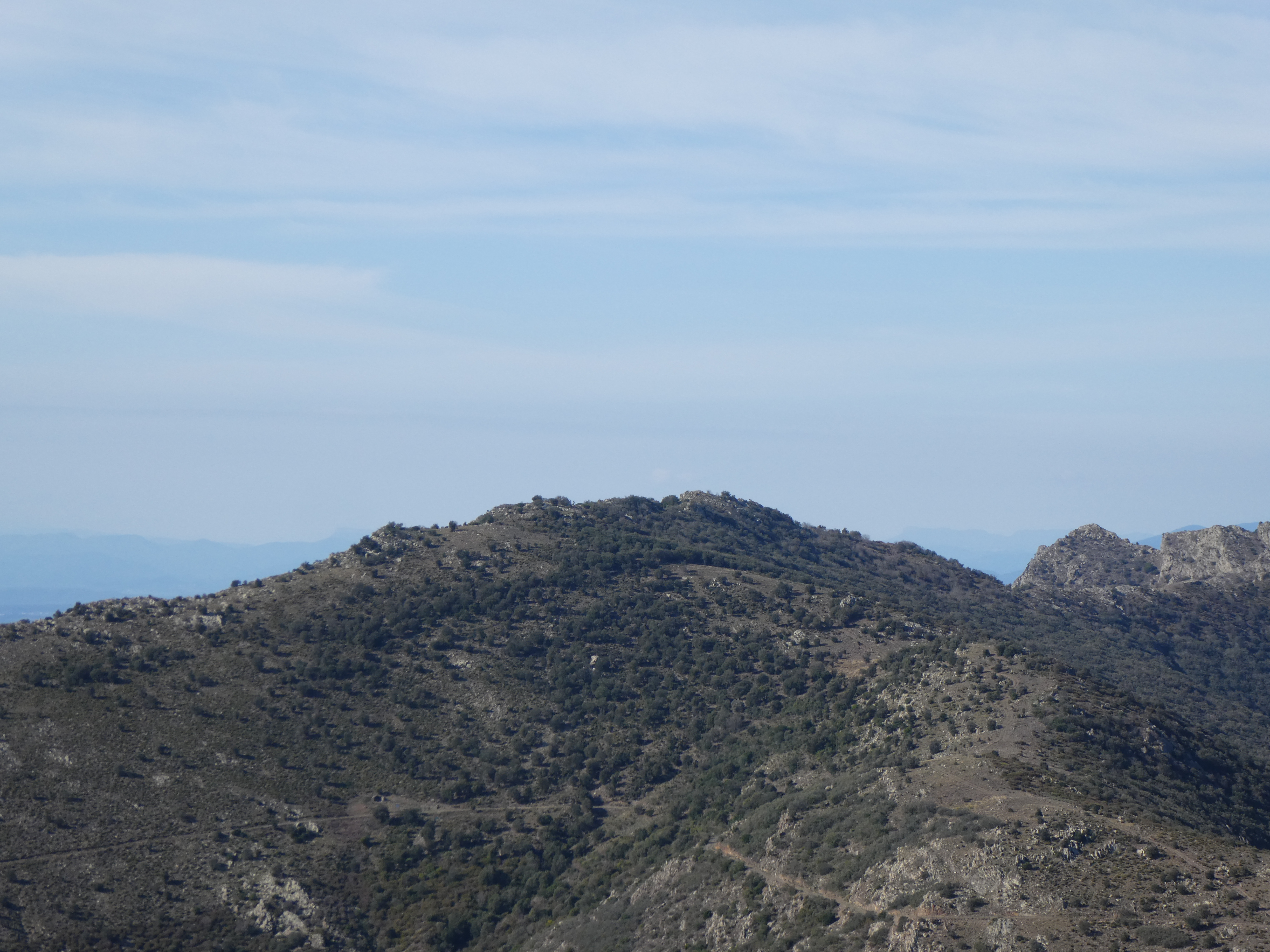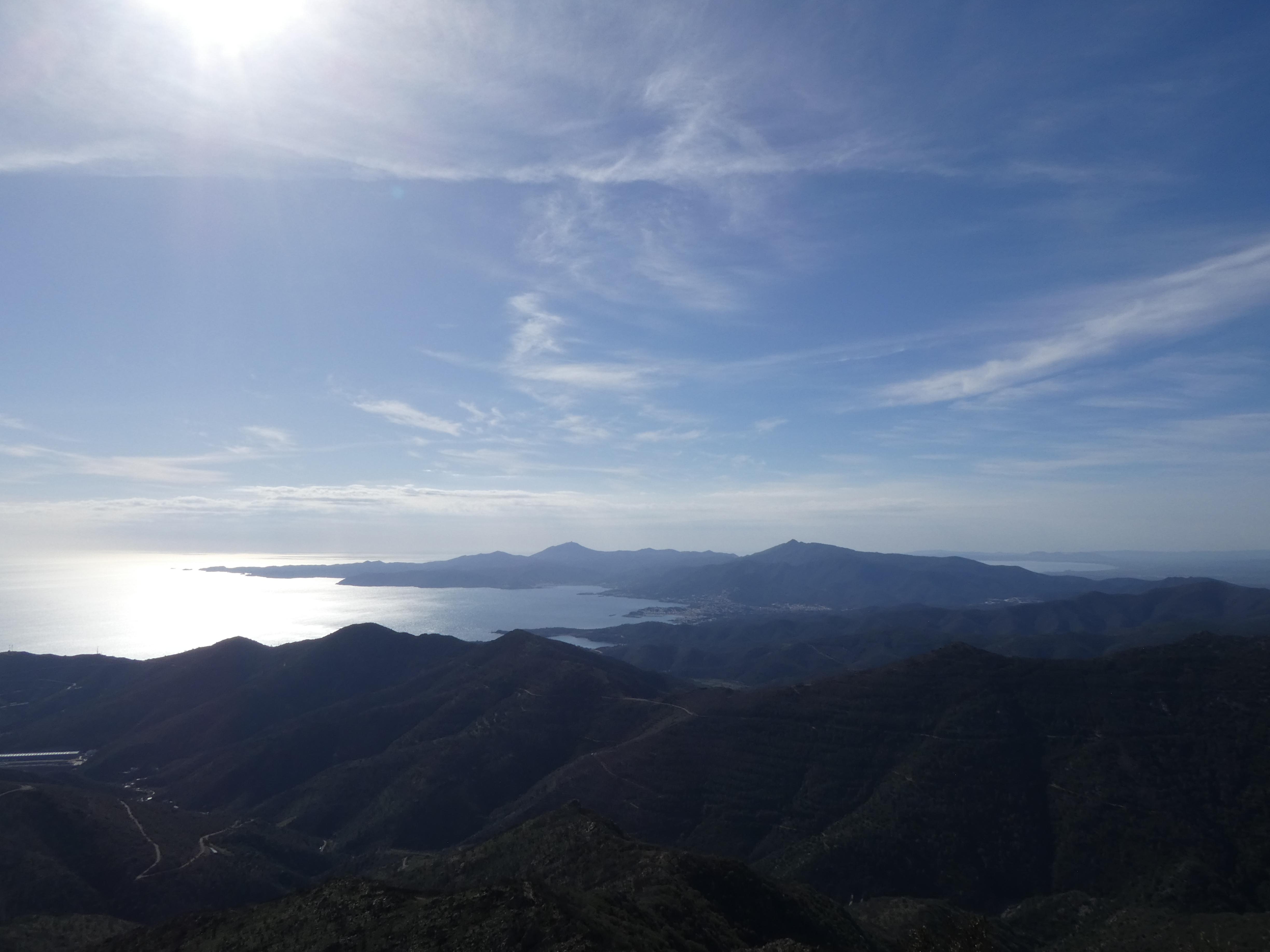 Arrivée au sommet du Puig de Cervera (207 m) : beau panorama sur les sommets du Parc Natural de Cap de Creus et des Albères maritimes