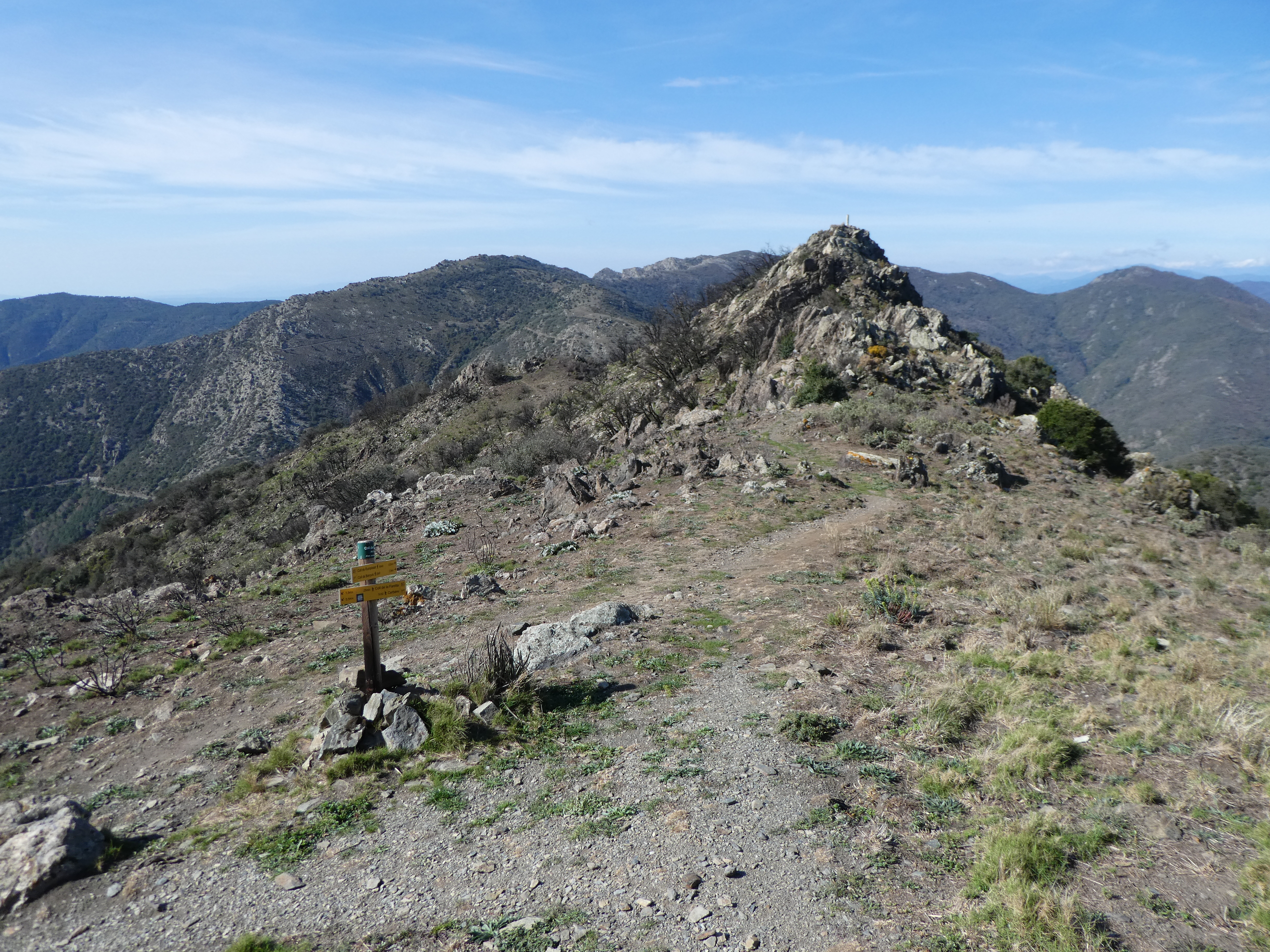 Redescendre du sommet dans le même sens que celui de l'aller direction Cerbère (par la Farelle), balisé en jaune