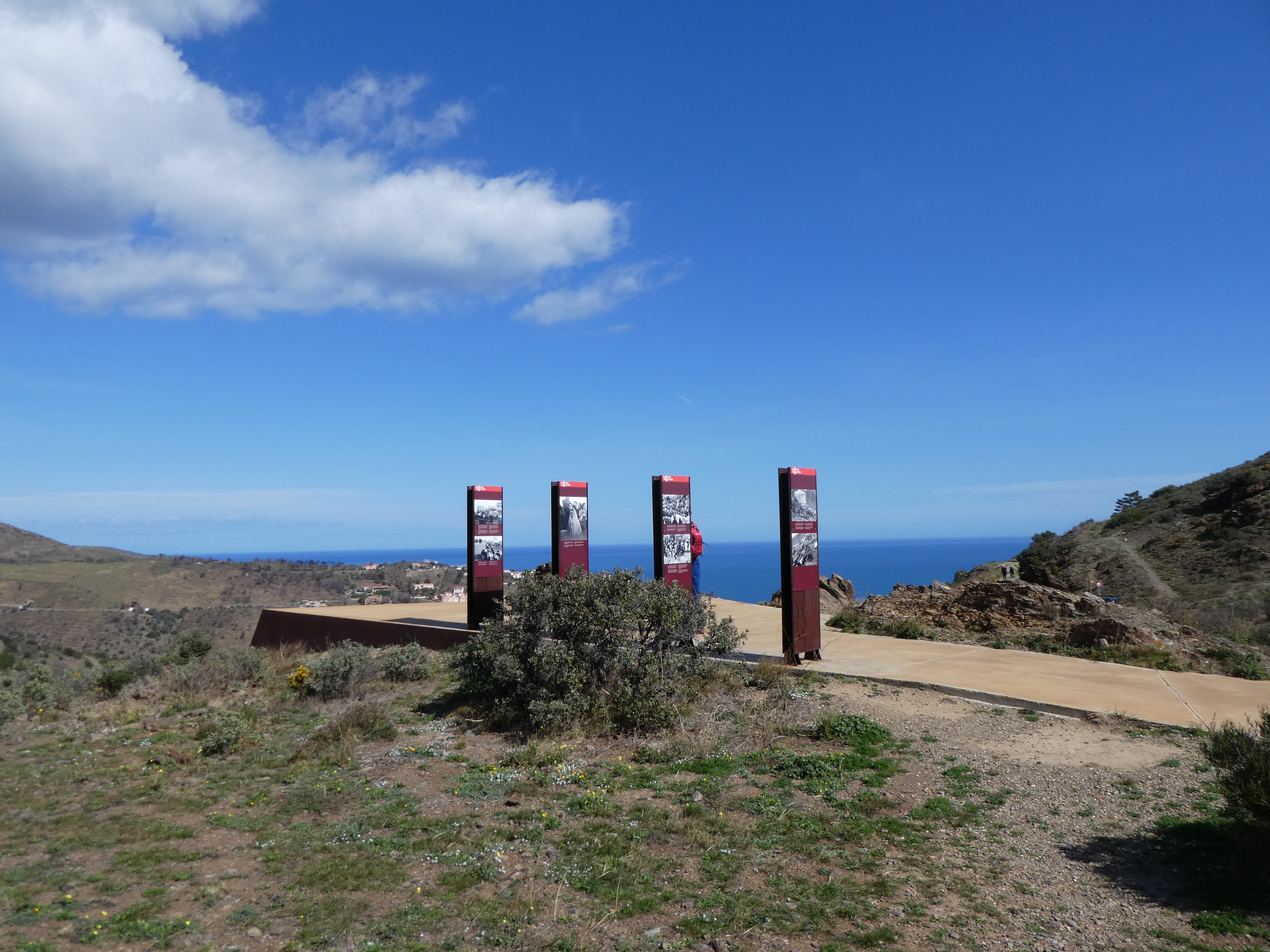 A ce croisement cairné (100 mètres après le précédent), suivre le chemin partant tout droit vers le Monument de l'Exil direction Cerbère, aucun balisage dorénavant
