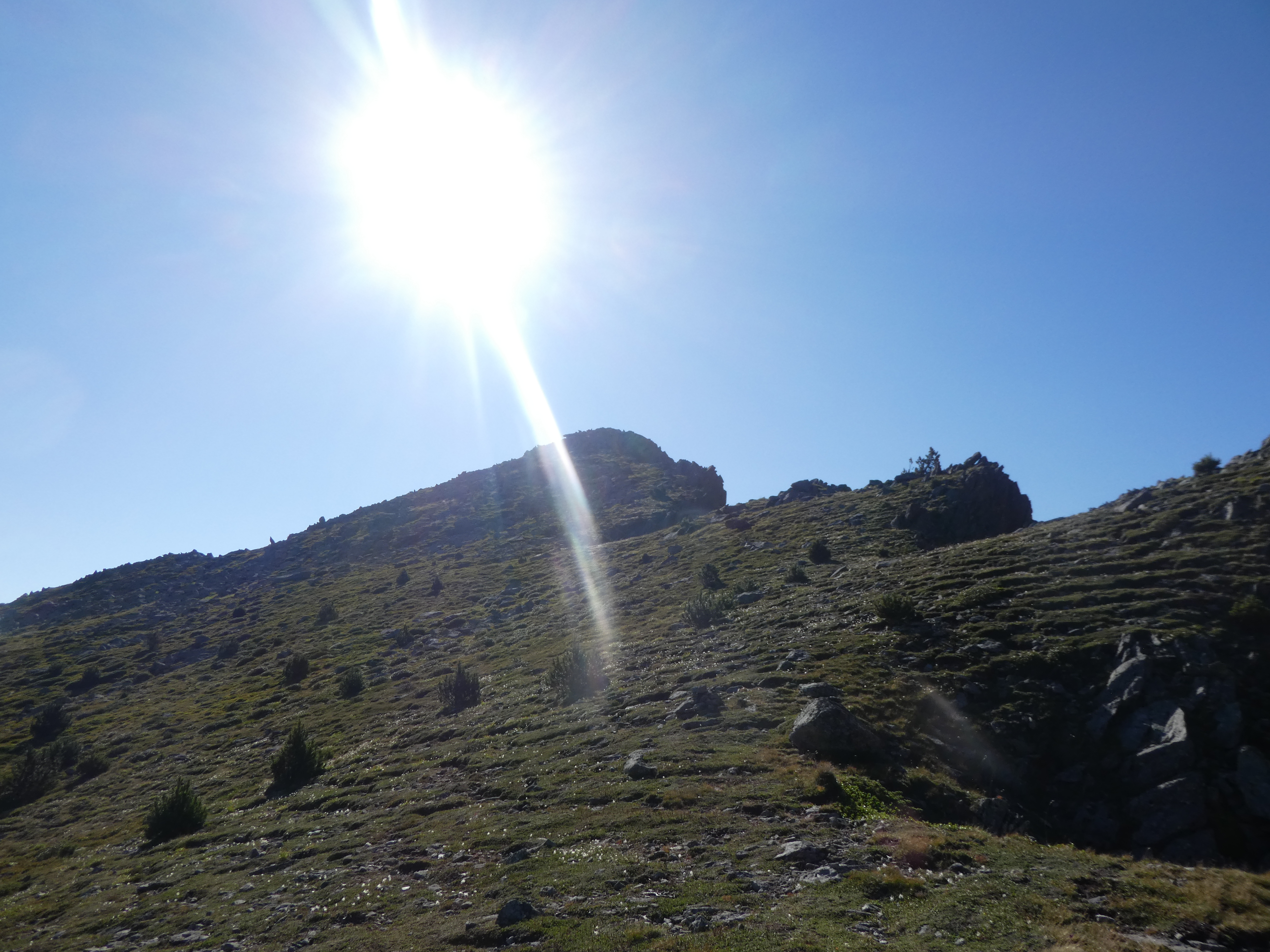 A ce croisement cairné avec le "couloir" de descente vers le Bac de la Portella (200 mètres après avoir quitté le sommet), suivre ce dernier sur la gauche direction les Bassetes