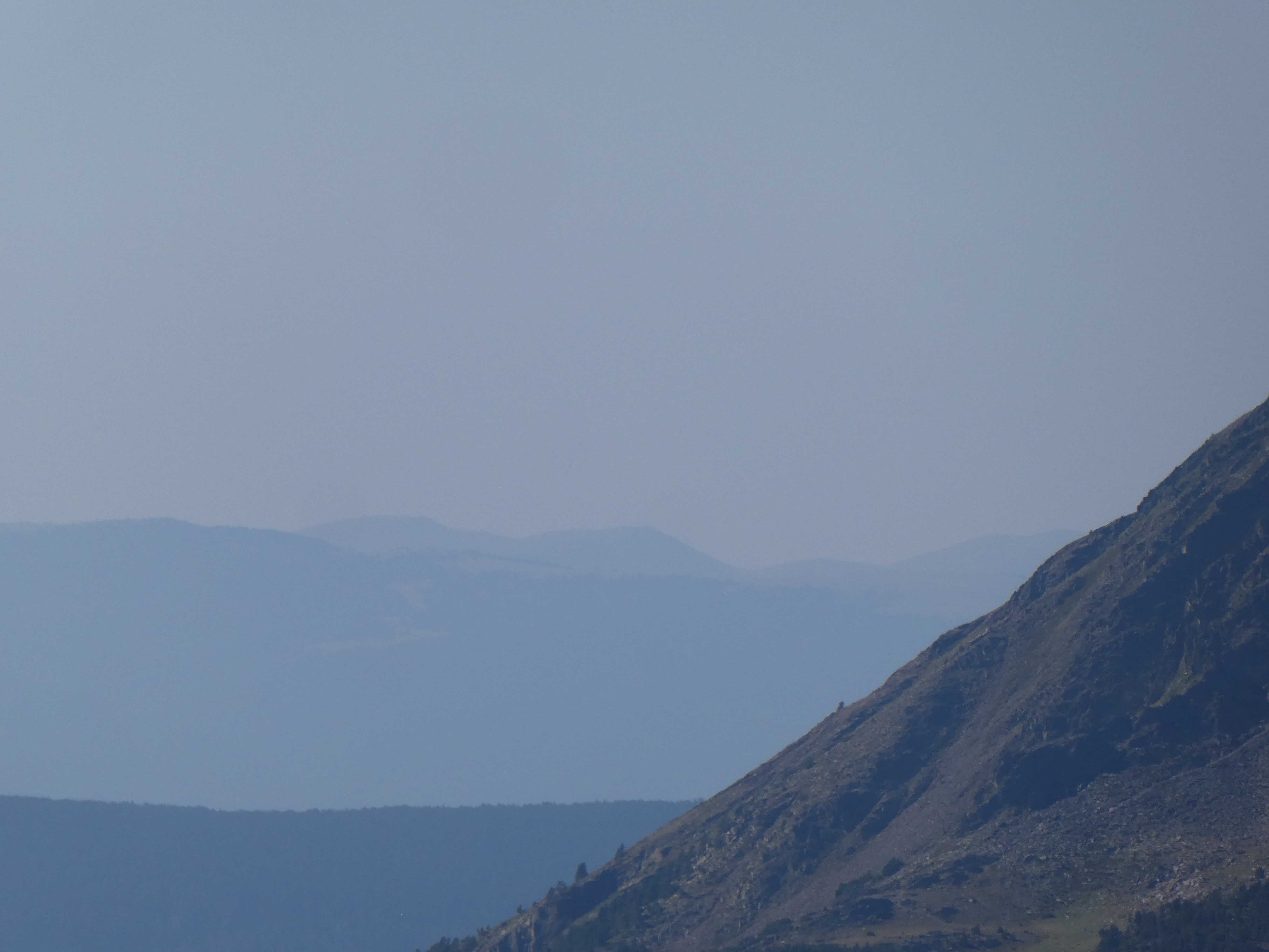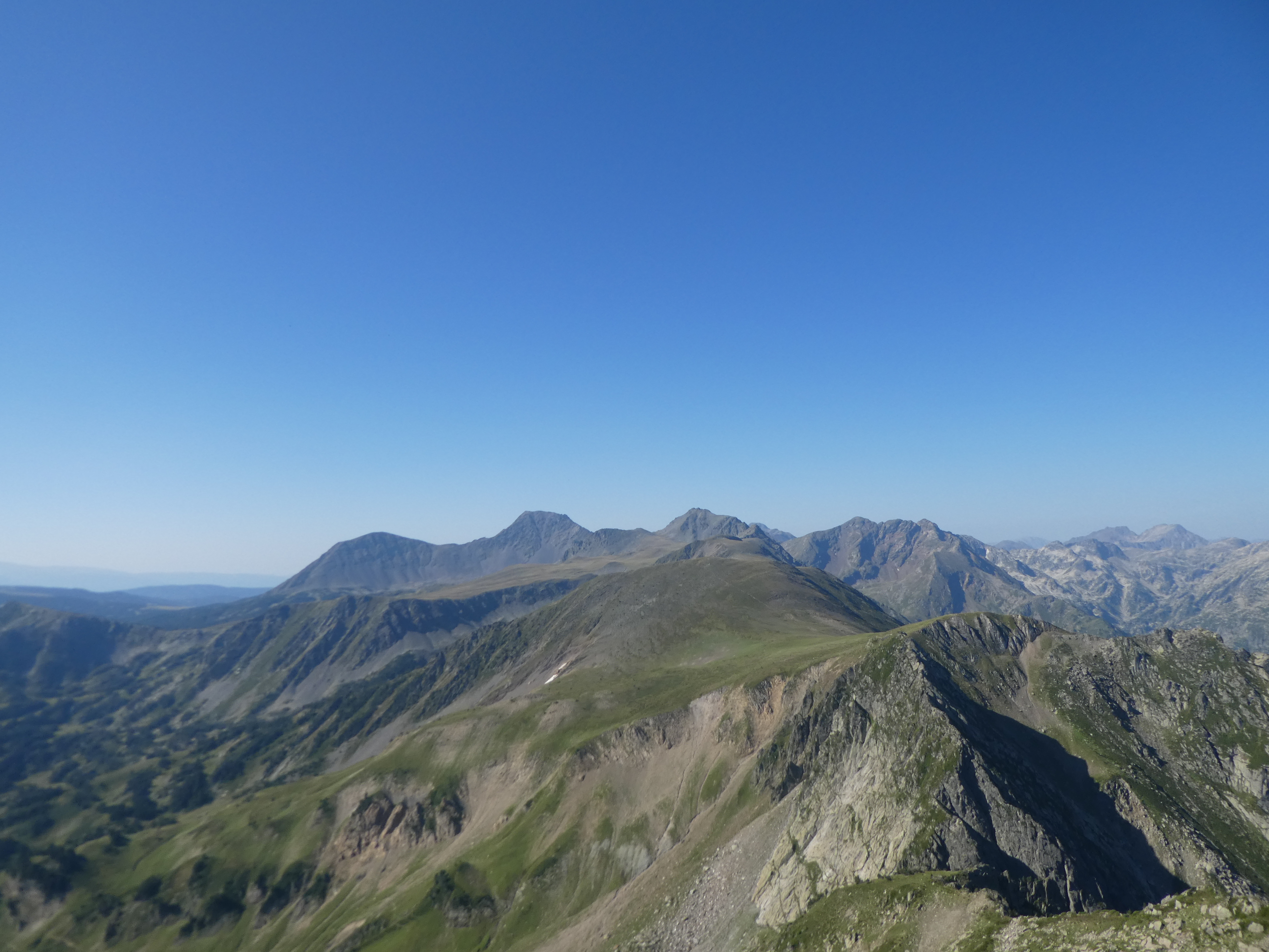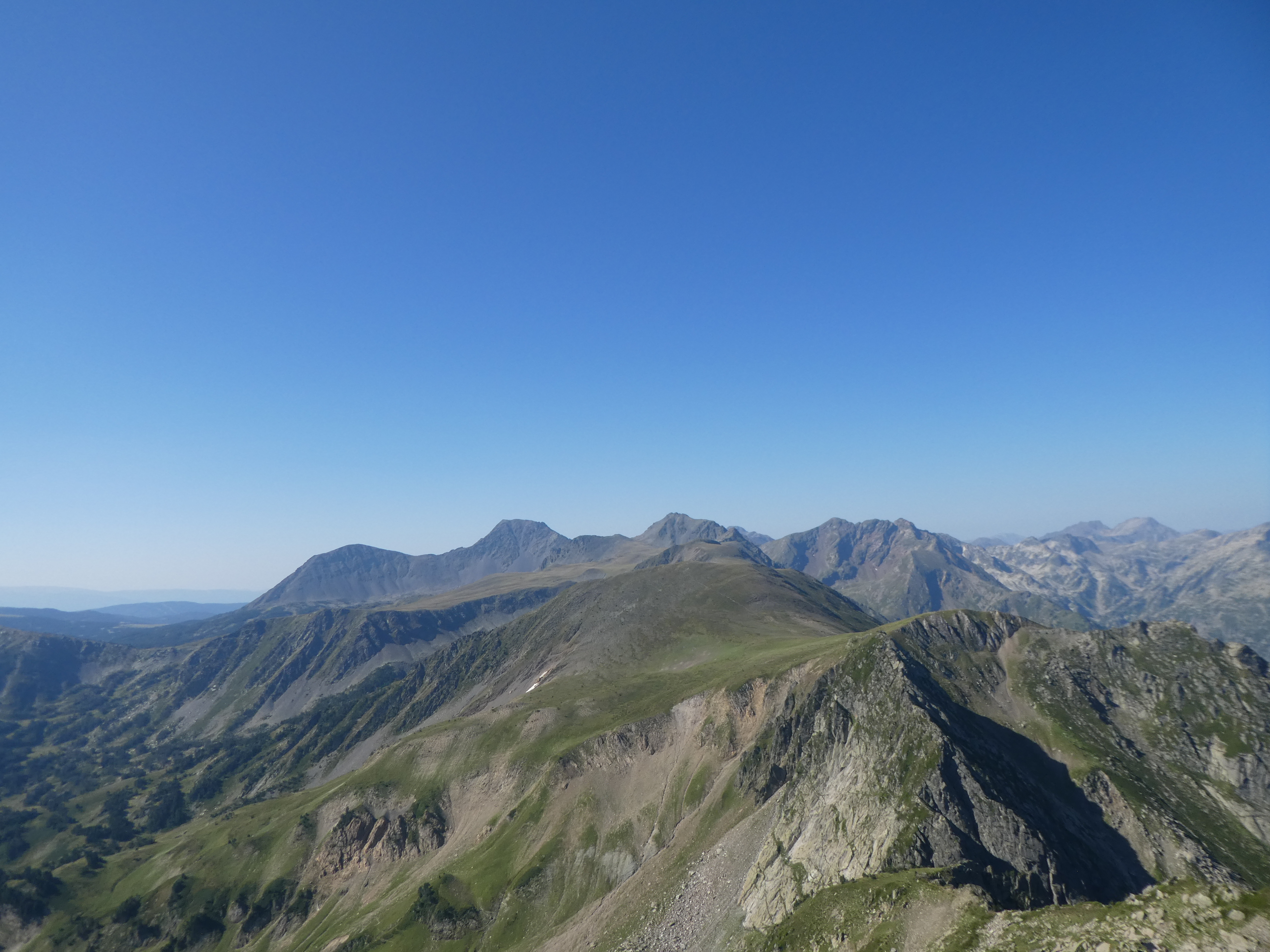 Zoom sur le Pic del Bernat Salvatge (2423 m) au centre-gauche et el Madres (2469 m) au centre-droit