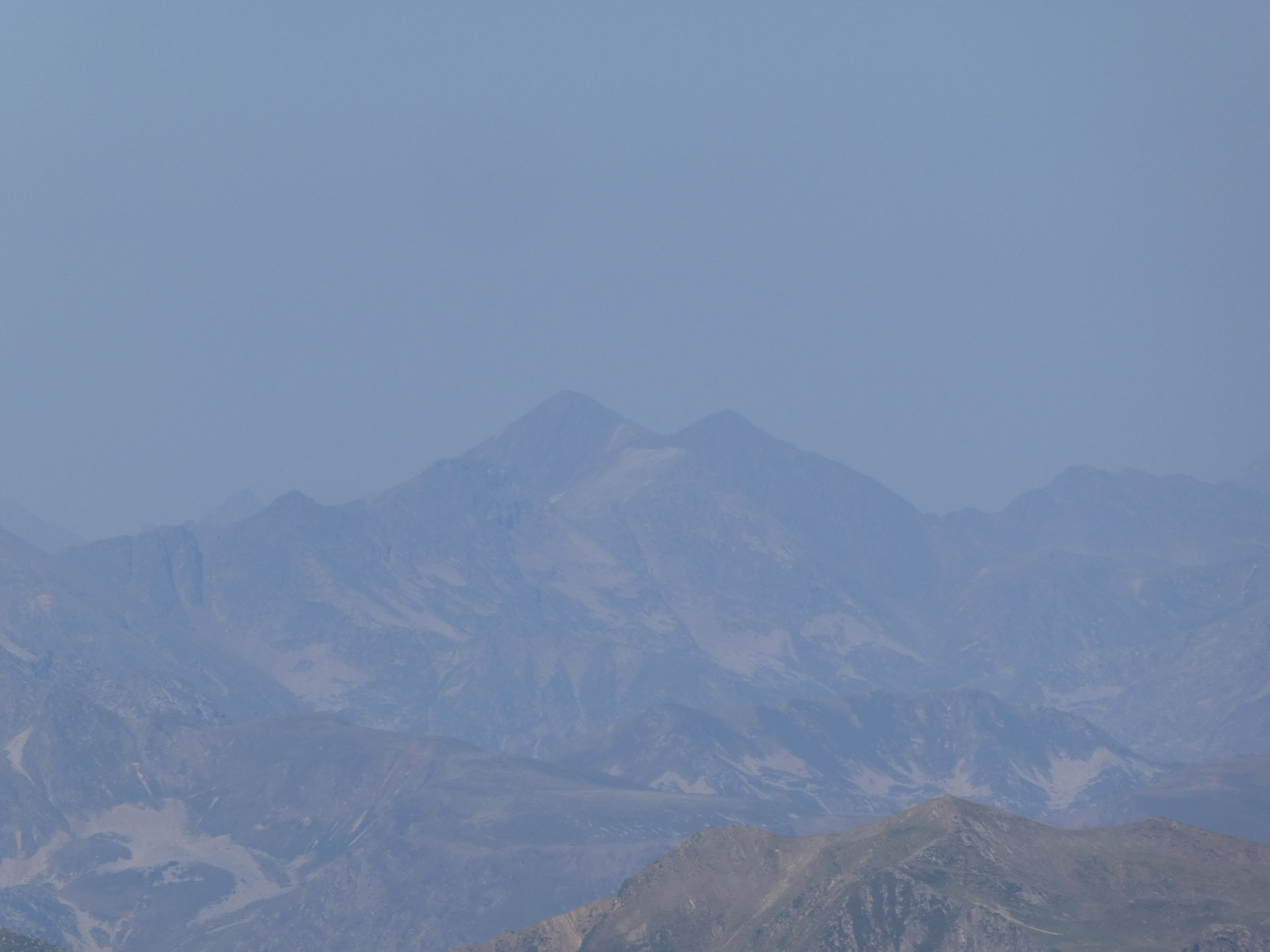 Zoom sur le Puigpedrós (2914 m) ... en bas à gauche, on aperçoit le Puig de Font Viva (2673 m)