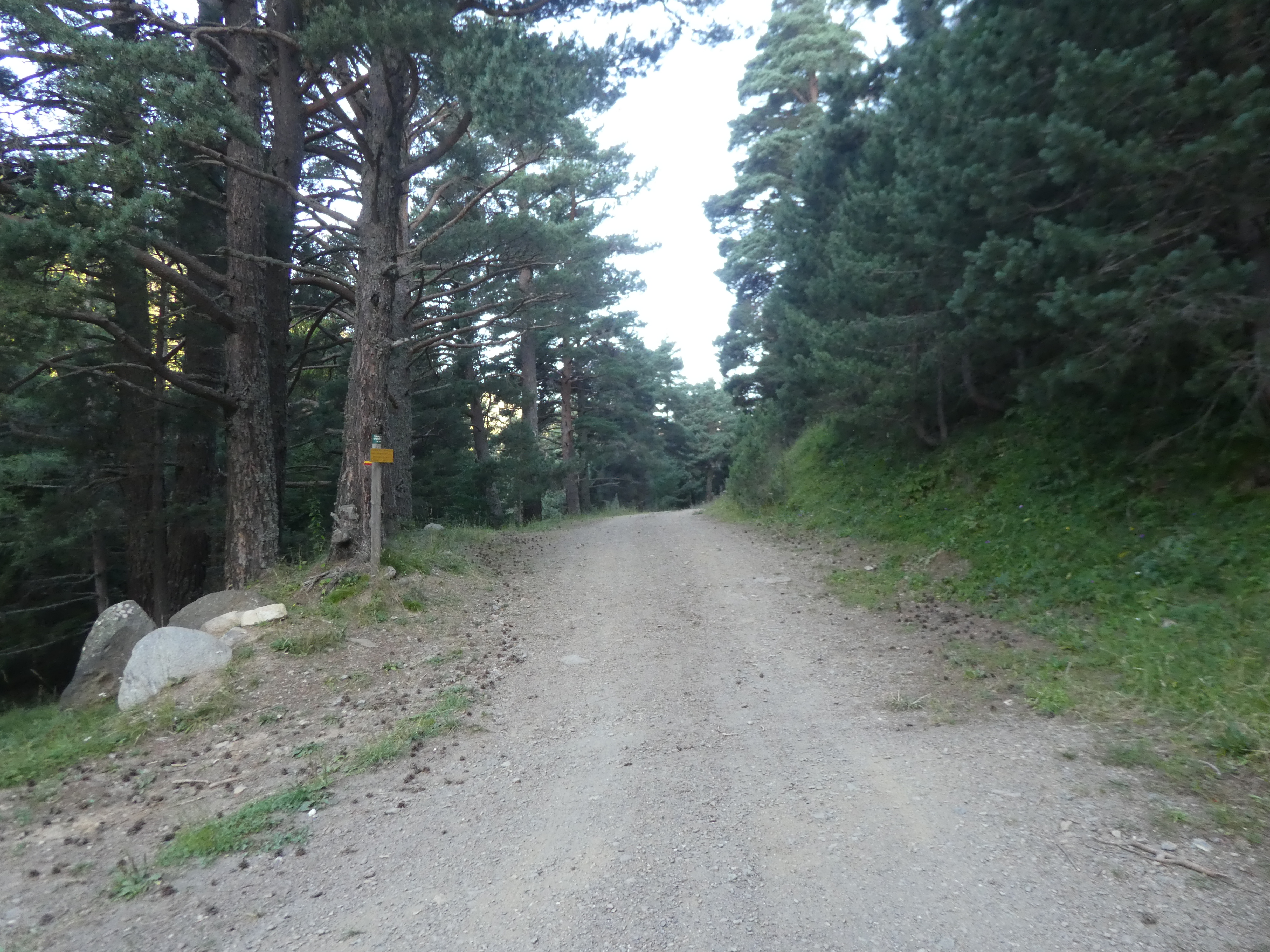 A ce croisement marqué par la présence d'un panneau directionnel (2800 mètres après le précédent), suivre cette dernière partant tout droit direction Refuge des Camporells, balisé en jaune et rouge
