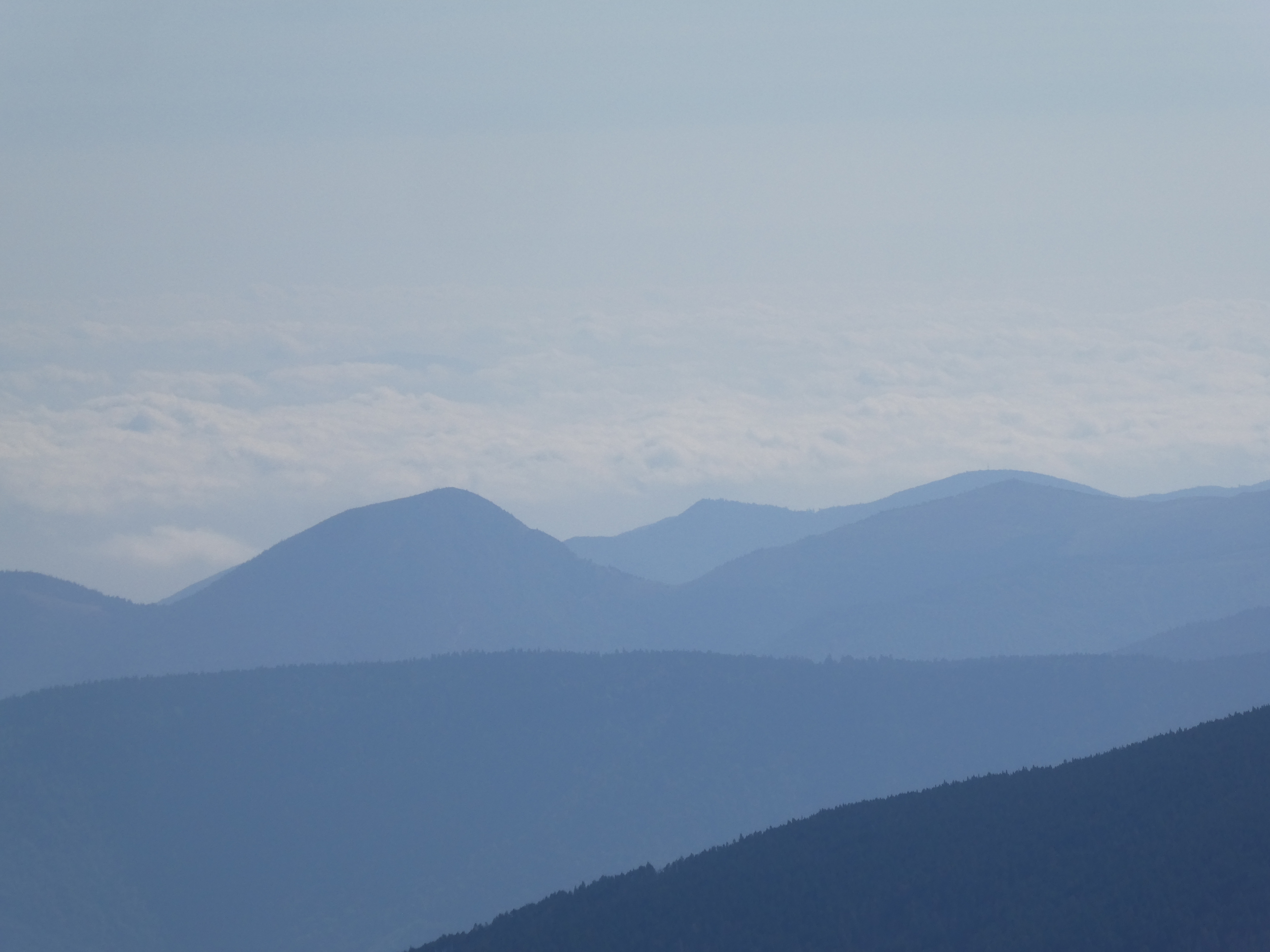 Zoom sur la Montagne de Tabe avec le Pic de Girabal (2169 m) à gauche, et le Pic de Saint-Barthélémy (2348 m) et le Pic de Soularac (2368 m) au centre