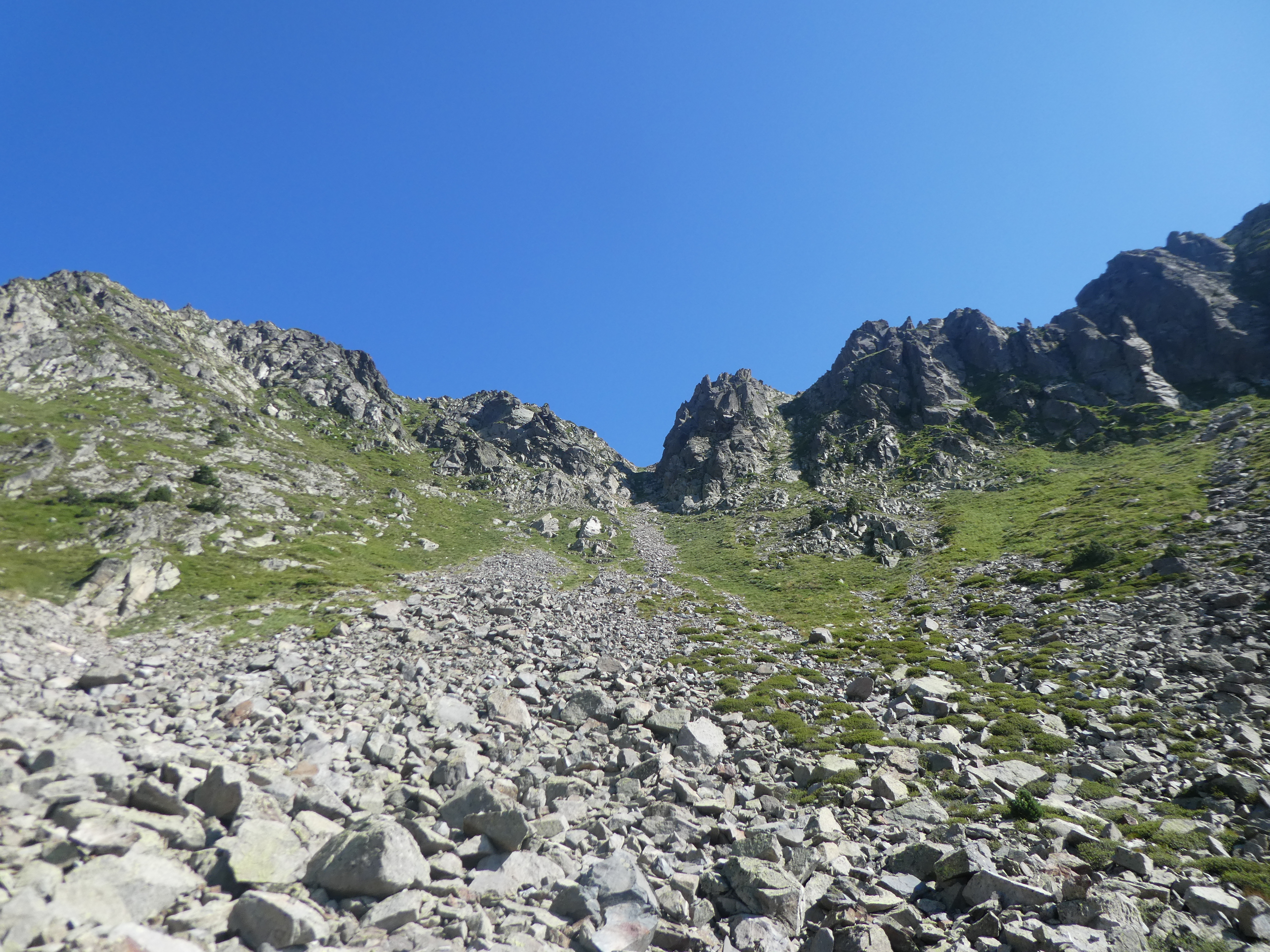 Vue sur le "couloir" à remonter pour atteindre la crête sommitale du Pic de Baxouillade (pente raide)