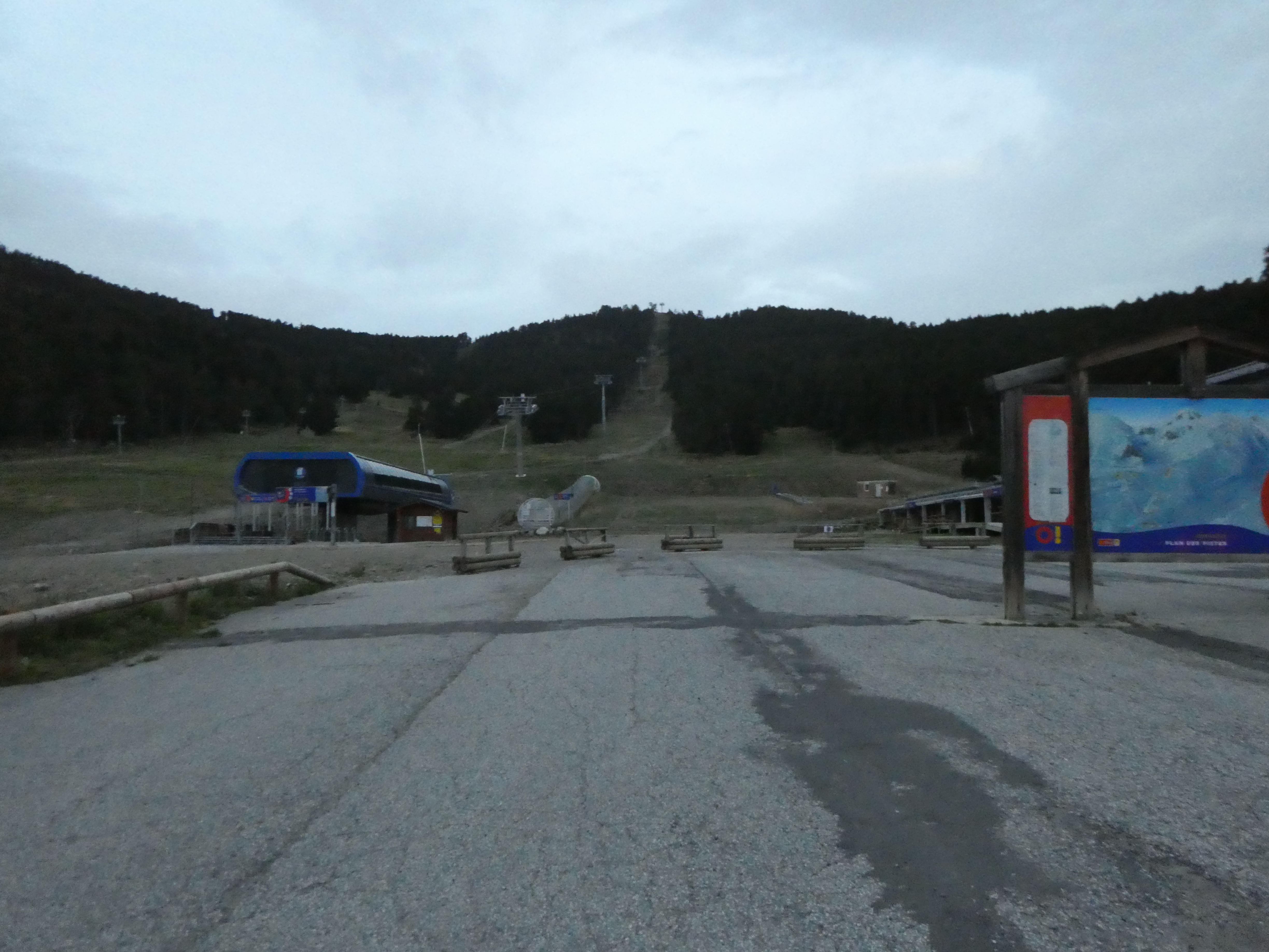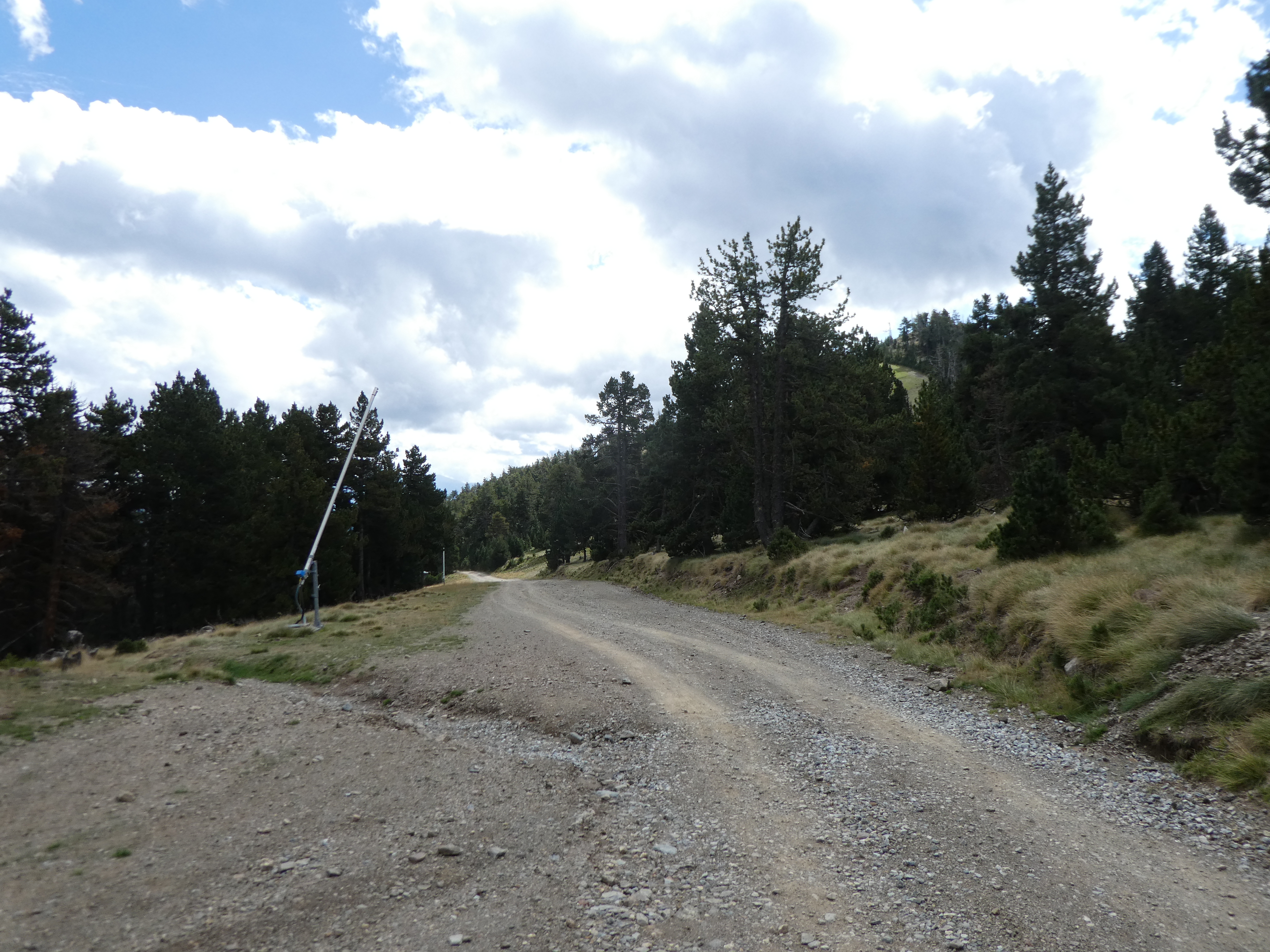 A ce croisement avec le chemin menant directement au parking de la station de ski (250 mètres après le précédent), suivre ce dernier partant sur la droite direction Station de ski de Formiguères, aucun balisage dorénavant