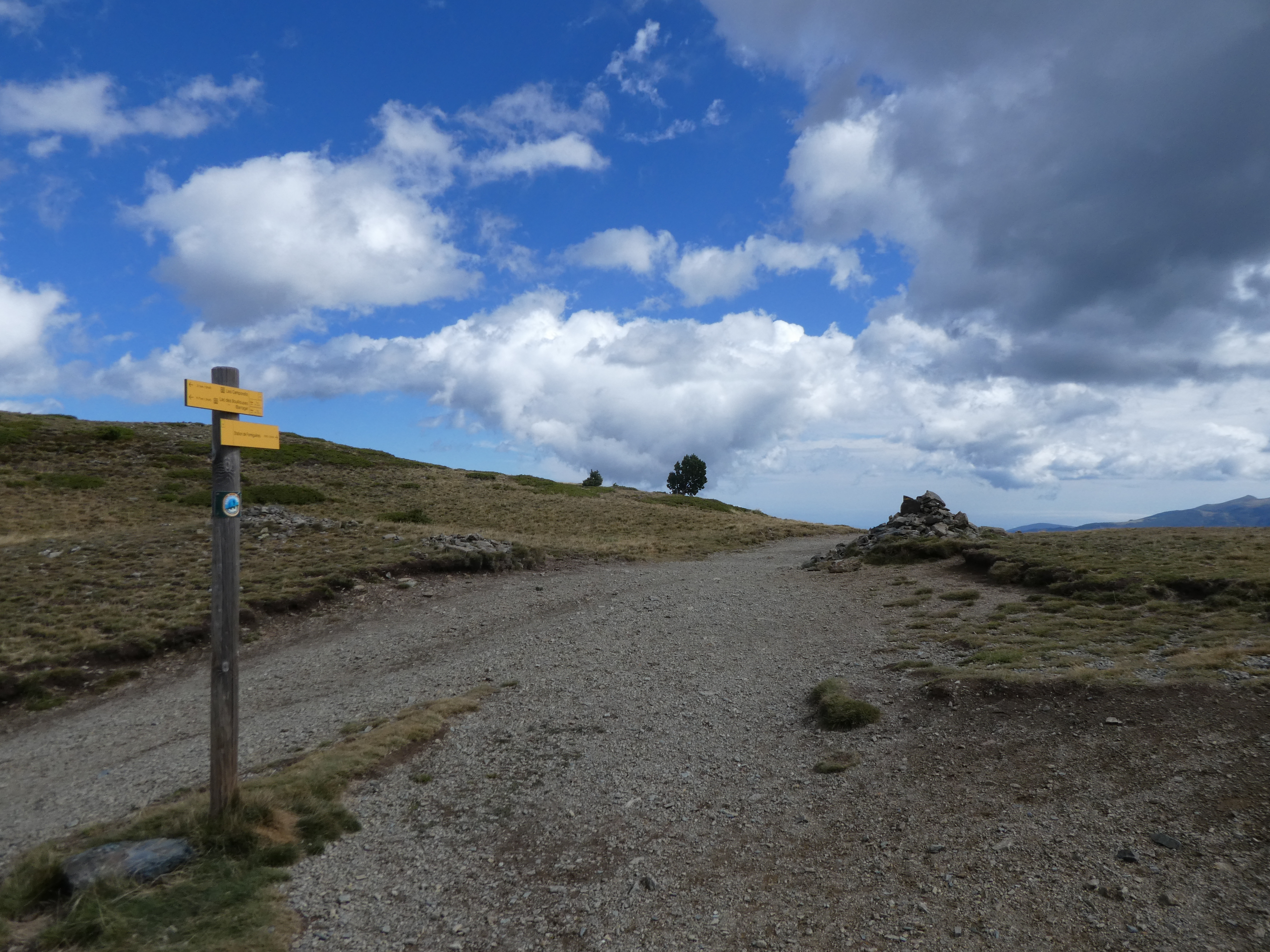A ce croisement avec le GRP Tour du Capcir situé au niveau du Coll de la Muntanyeta (500 mètres après le précédent), suivre ce dernier partant tout droit sur environ 600 mètres direction Esposolla, balisé en jaune et rouge dorénavant