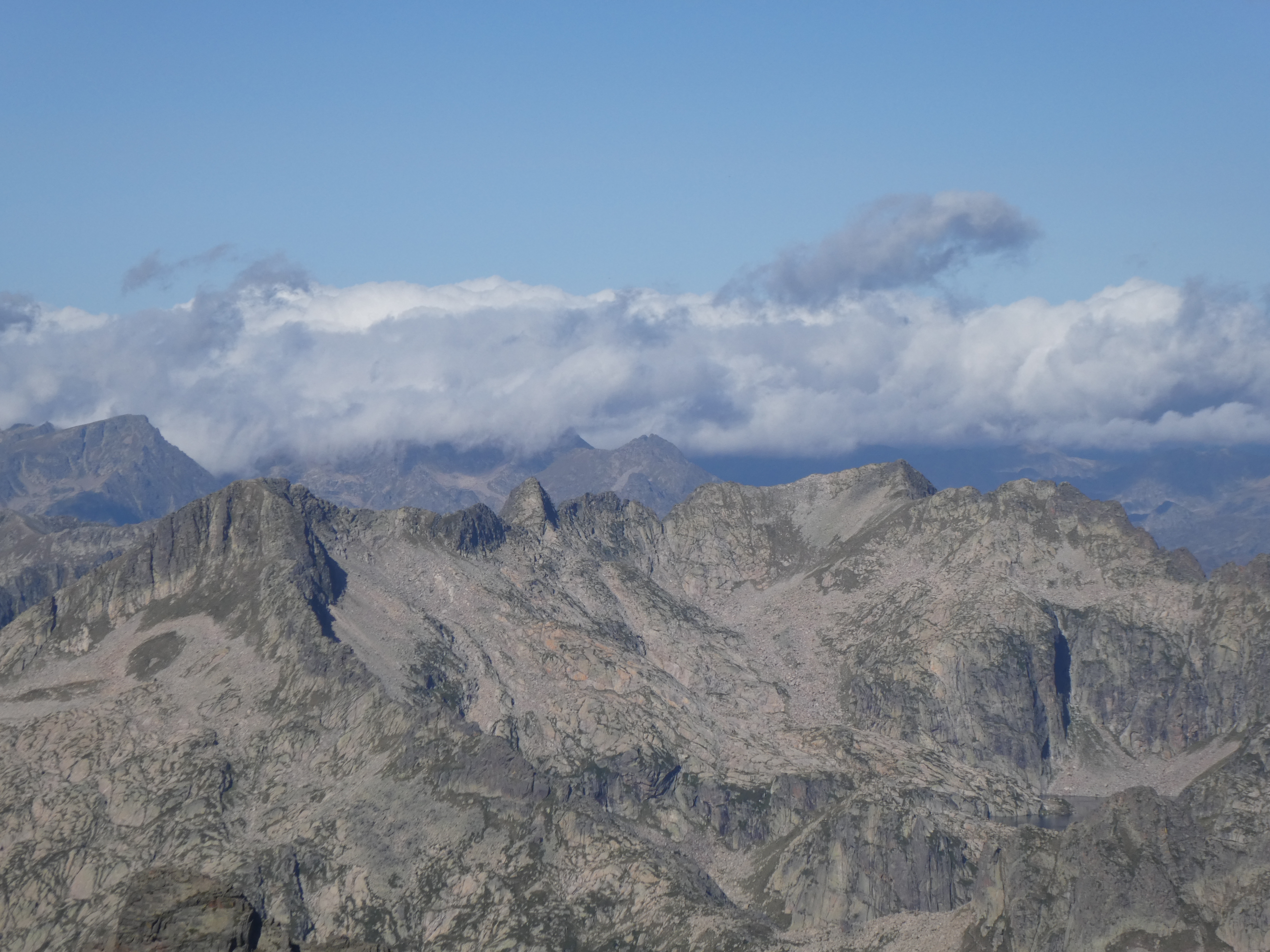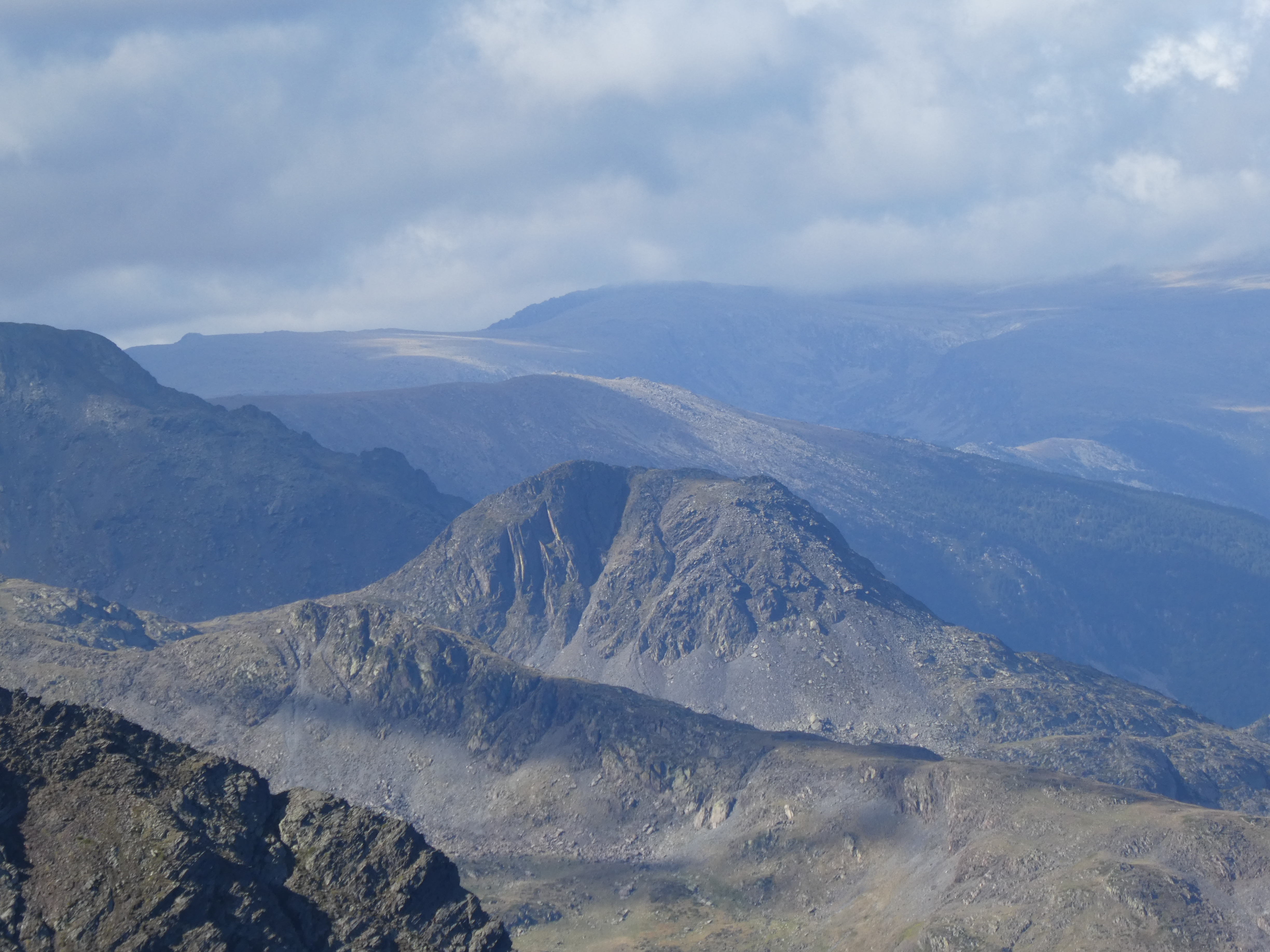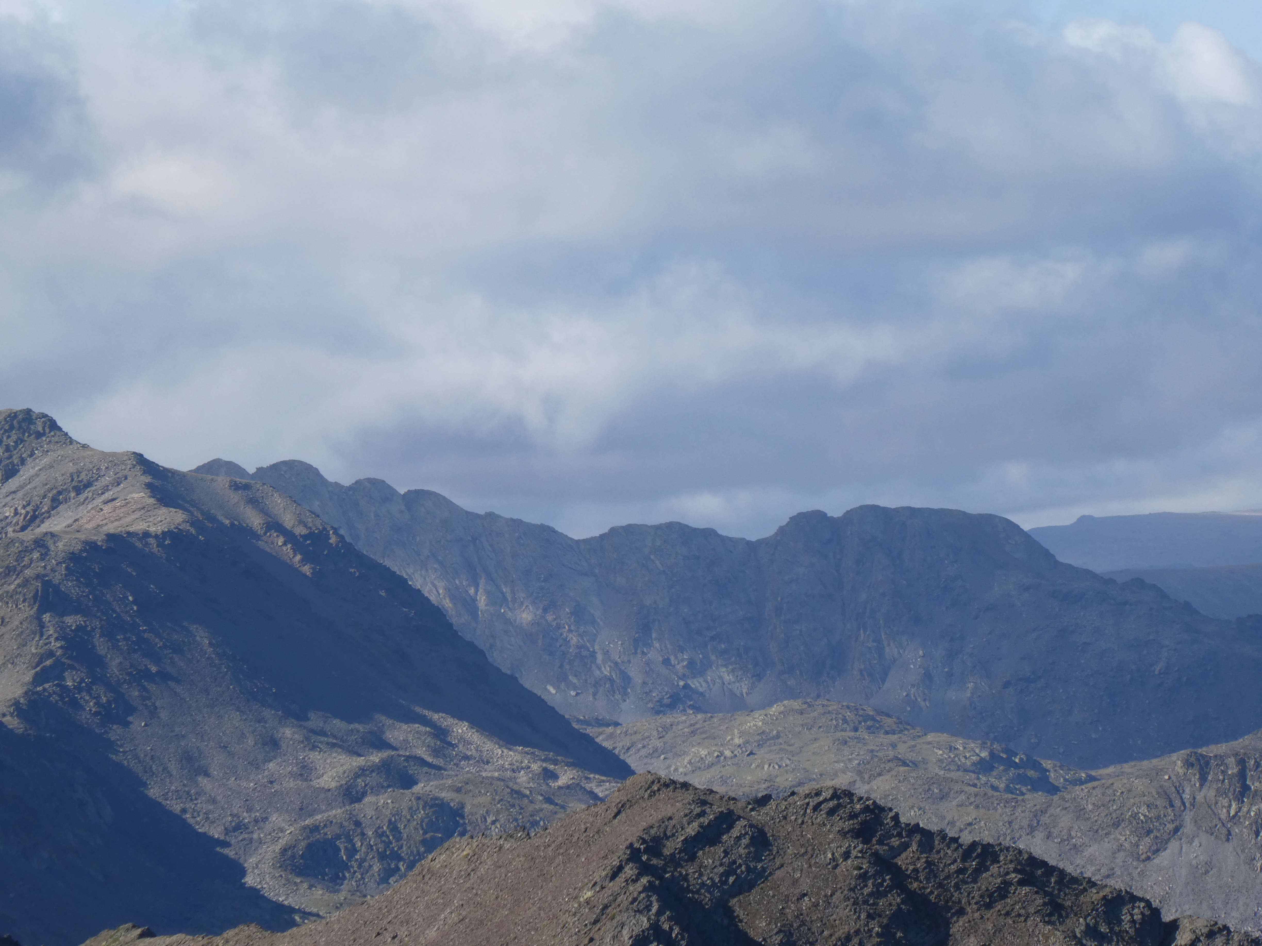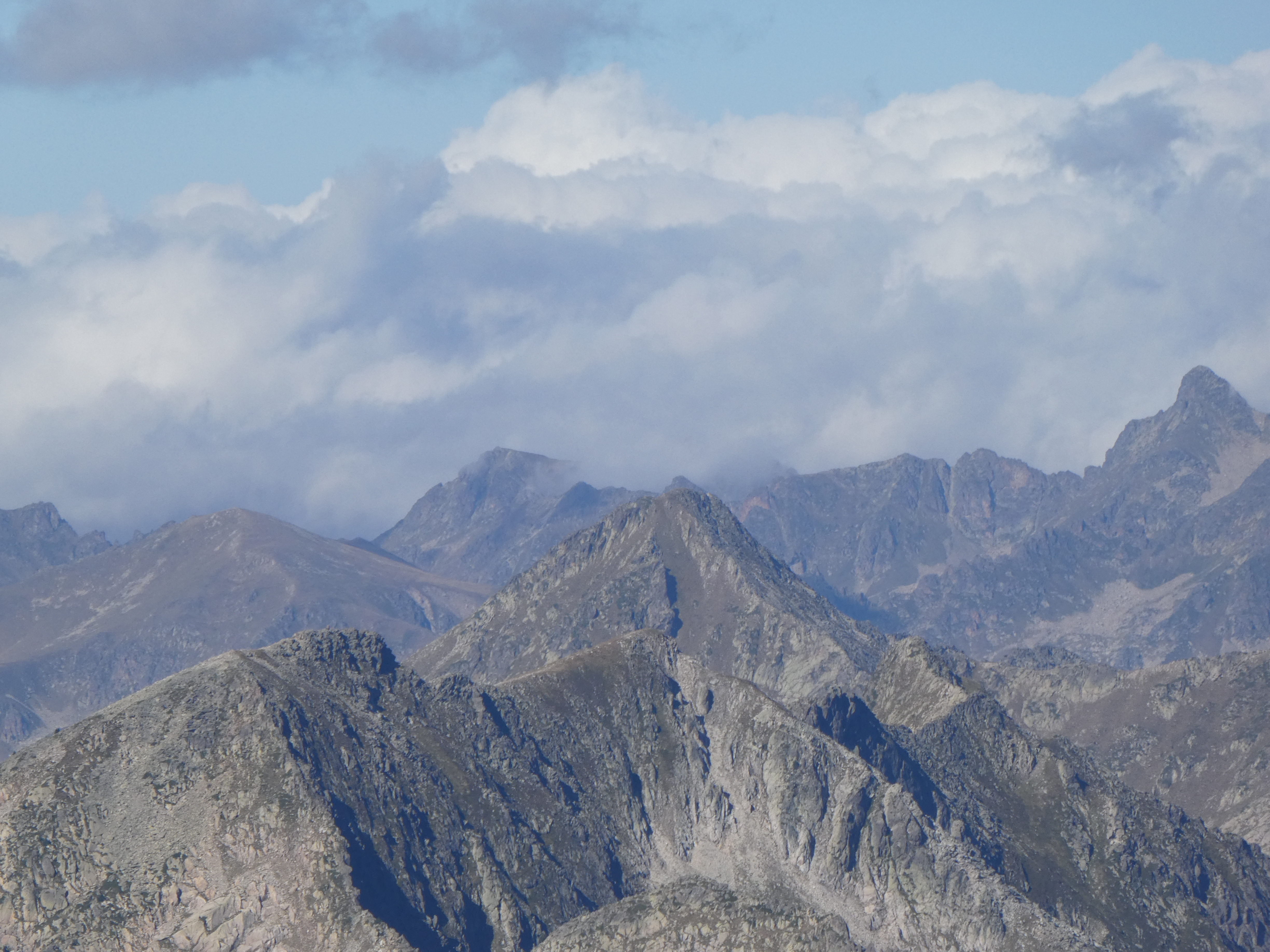 Zoom sur le Puig del Bernat Salvatge (2423 m) au centre-gauche, et el Madres (2469 m) et le Roc Nègre (2459 m) au centre-droit