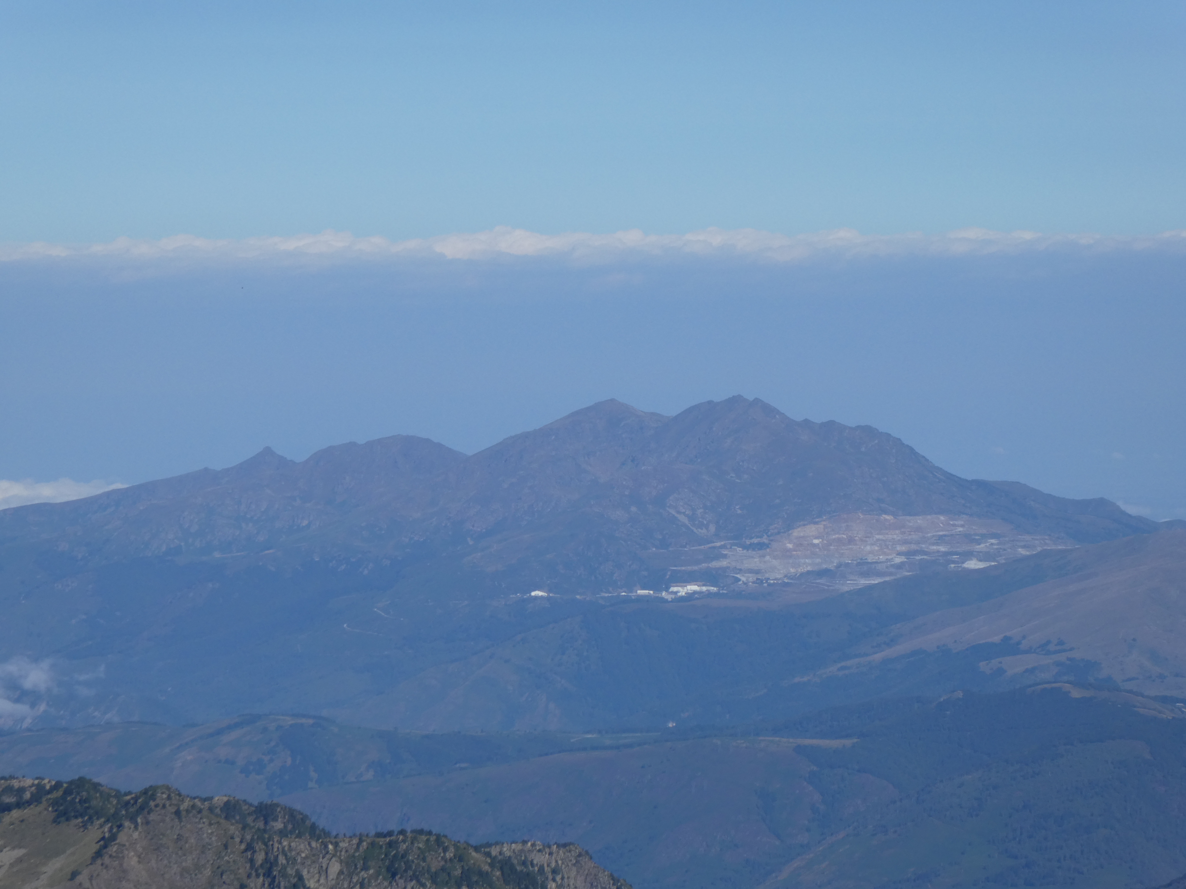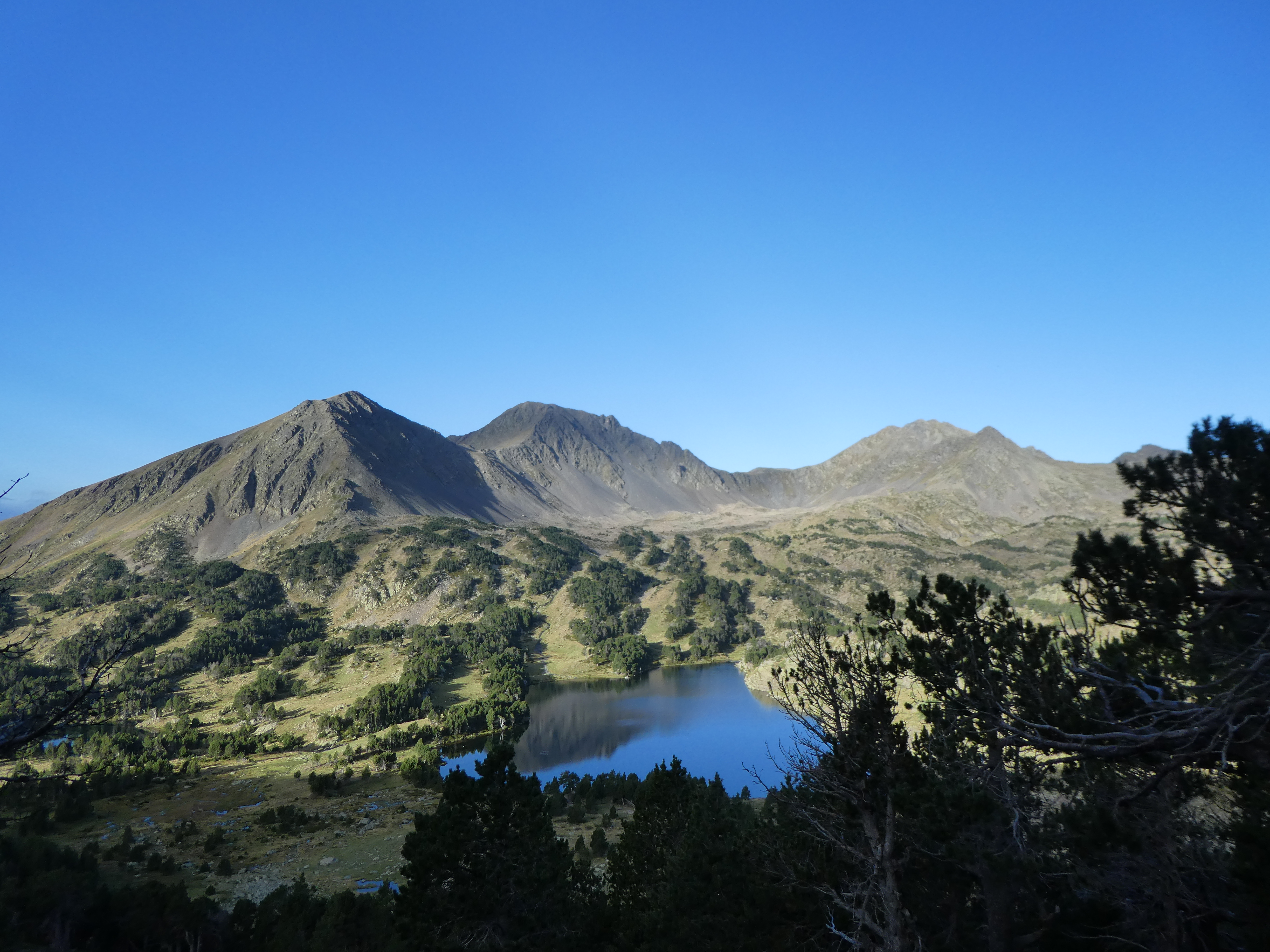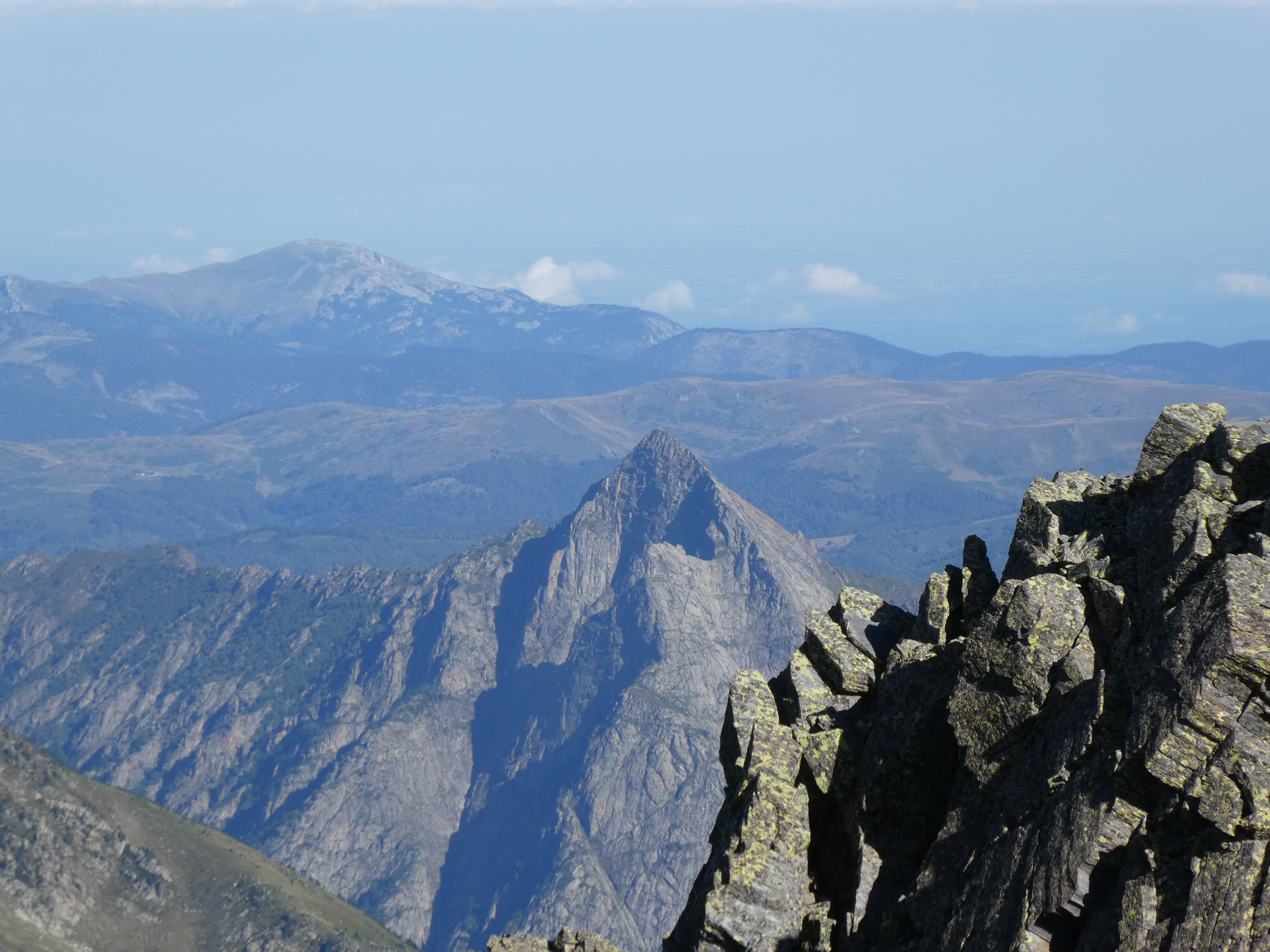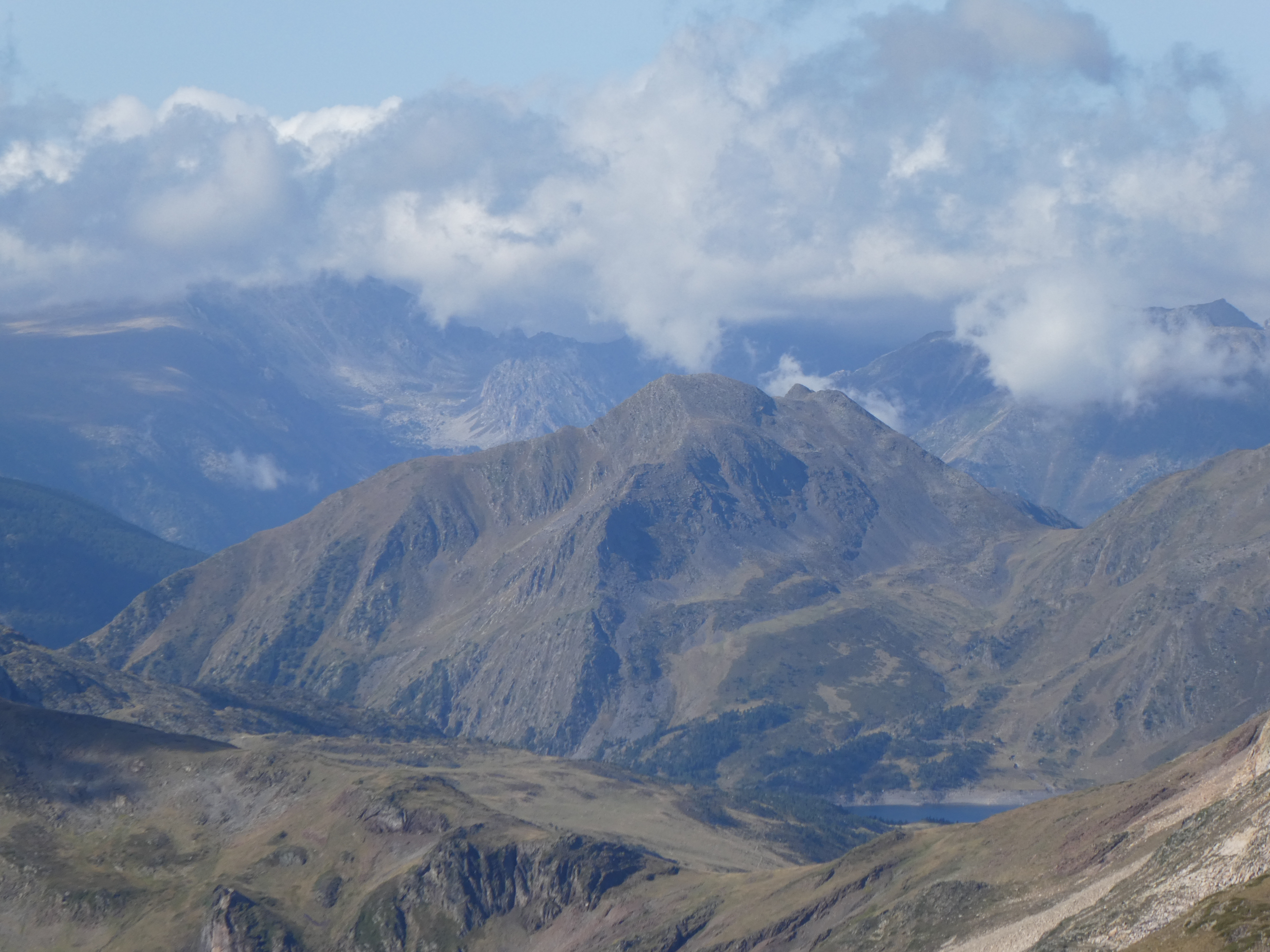 Zoom sur le Puig del Bernat Salvatge (2423 m) au centre-gauche, et el Madres (2469 m) et le Roc Nègre (2459 m) au centre-droit