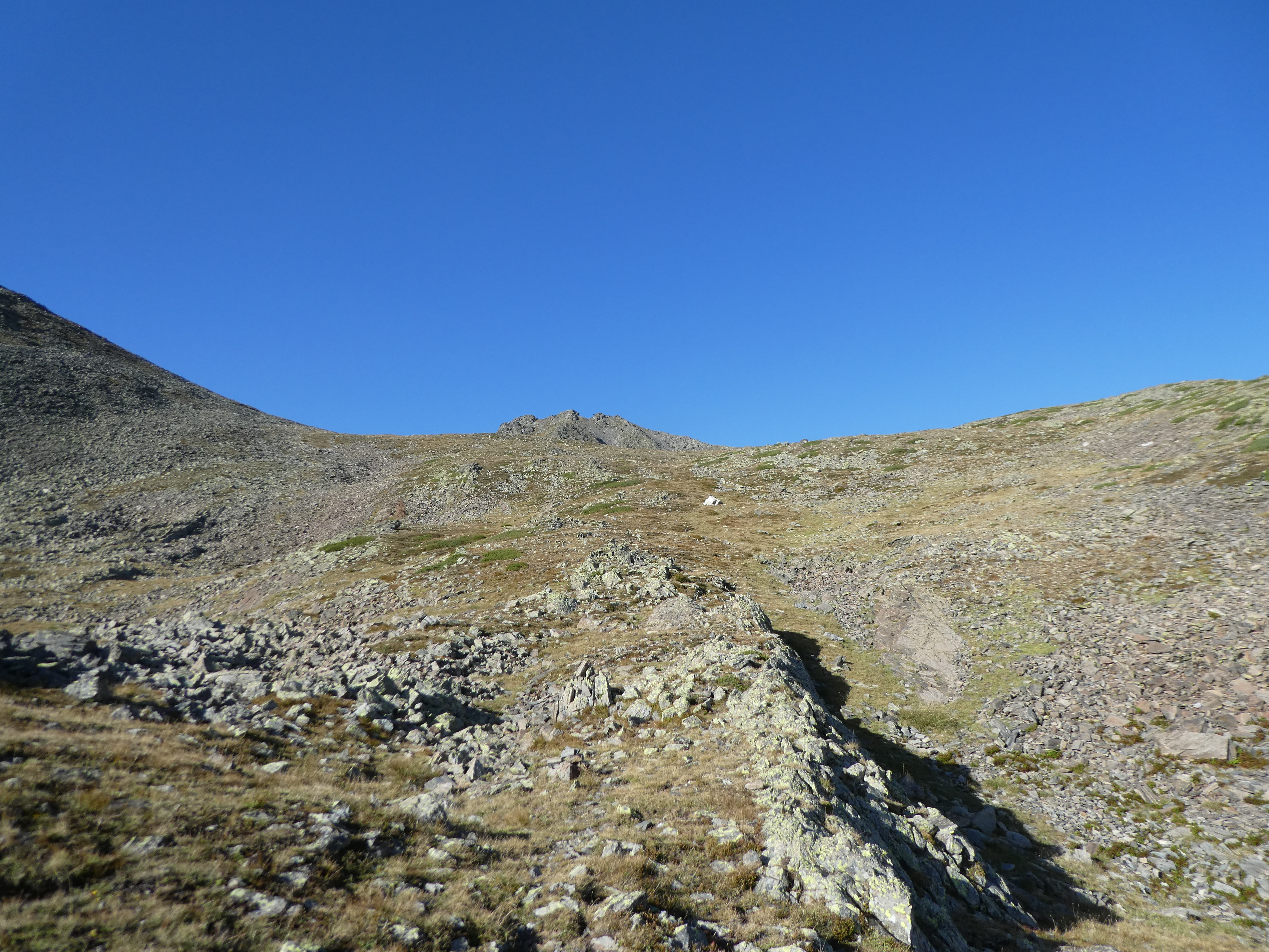 Ras de la Sal (2314 m) : suivre le GRP Tour du Capcir partant tout droit direction Refuge des Camporells, balisé en jaune et rouge dorénavant