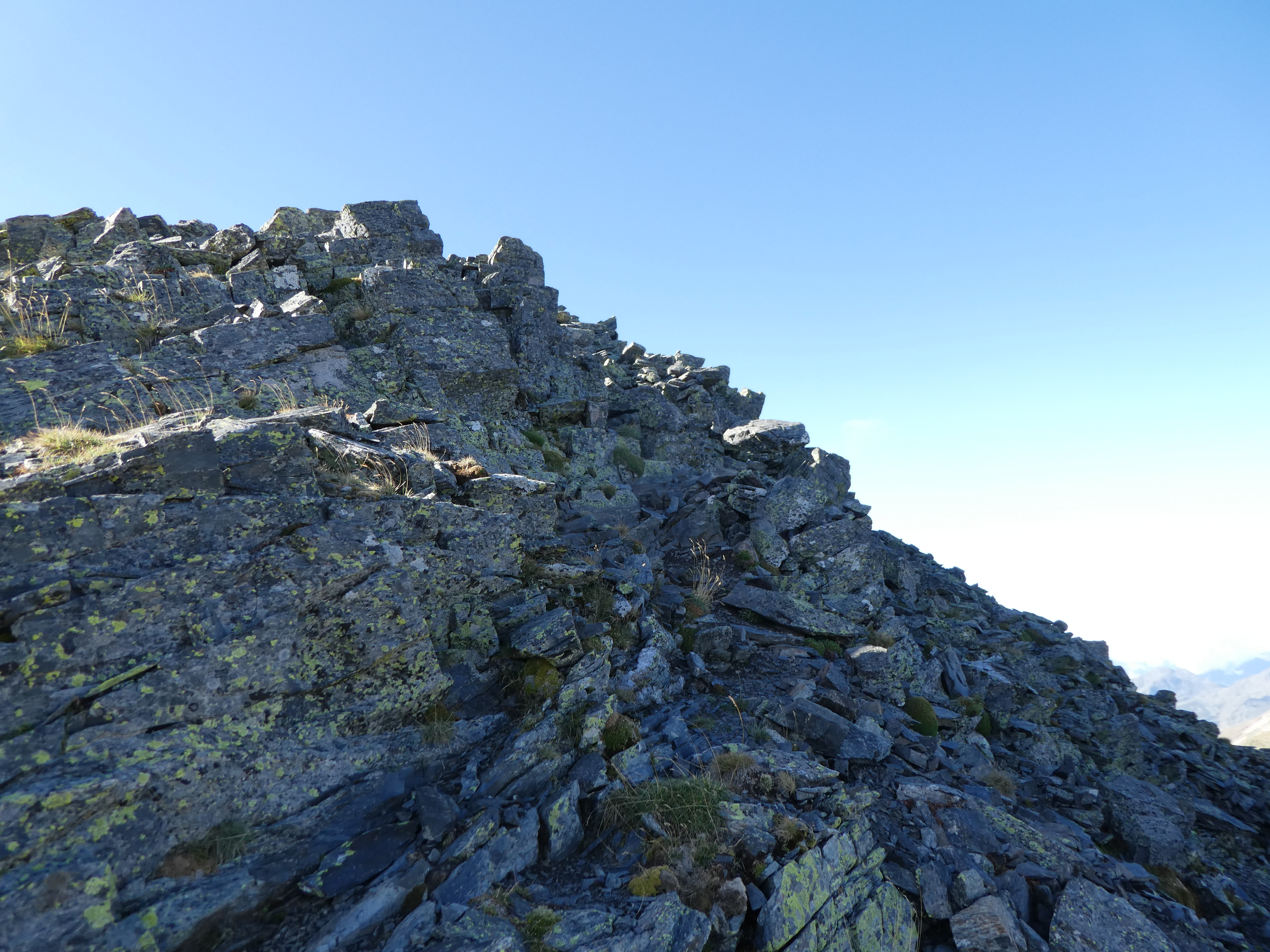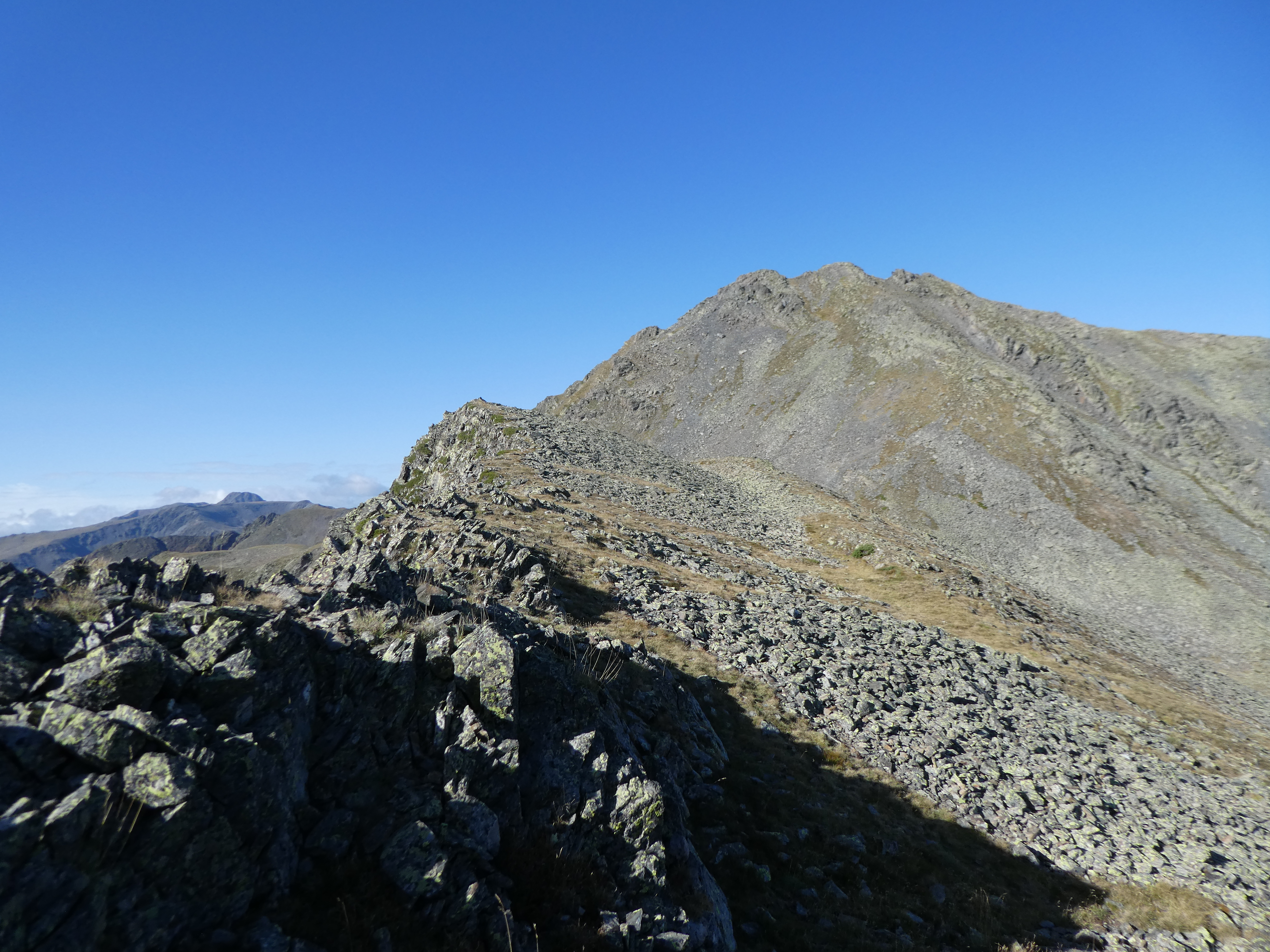 Dès que la crête sommitale du Puig de Camporells est atteinte (25 mètres après avoir quitté l'itinéraire du Puig de la Portella Gran), suivre cette dernière sur la gauche direction Puig de Camporells