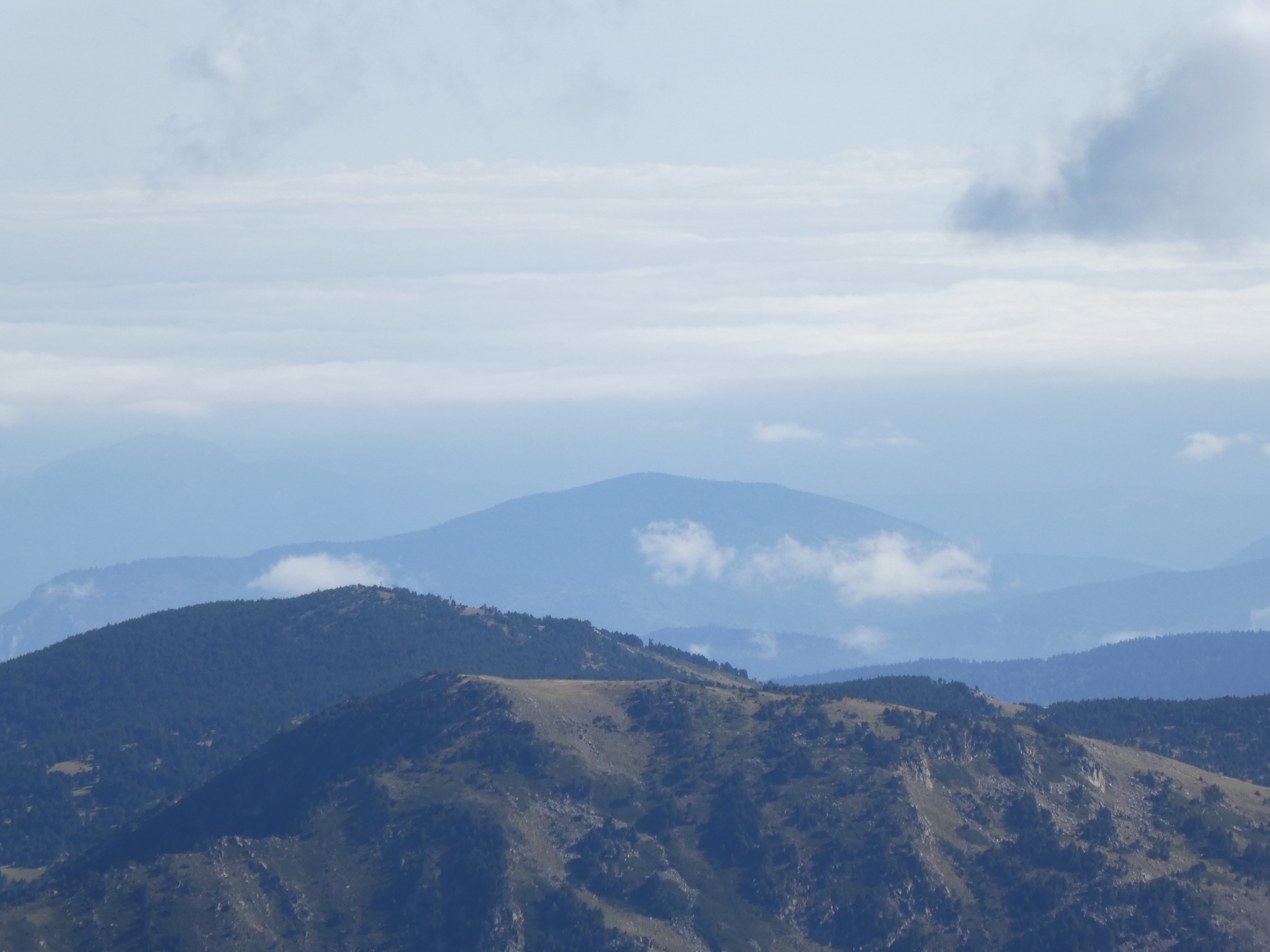 Zoom sur le Serre de Caillong (1556 m) à gauche et le Calm (1591 m) à droite