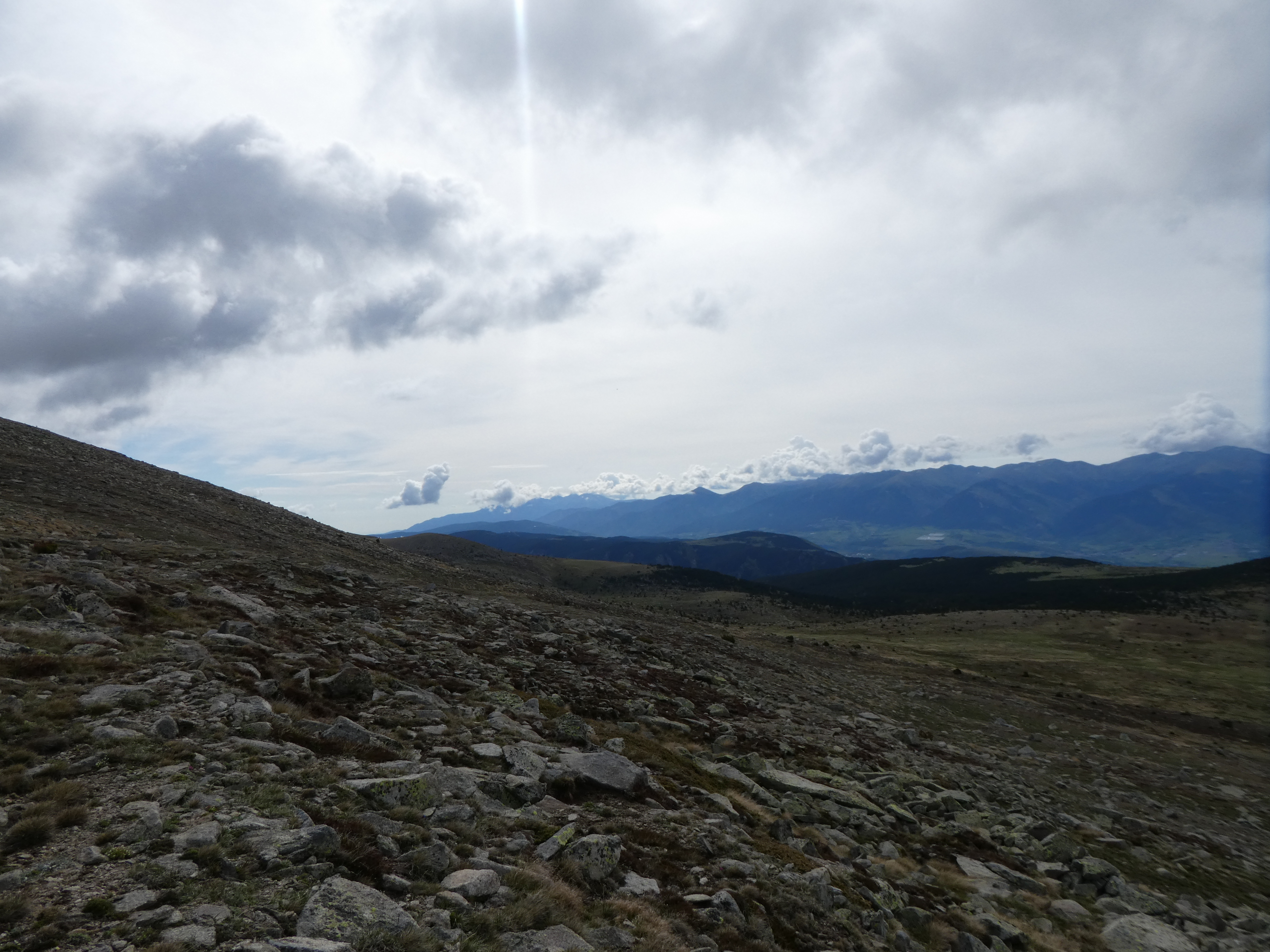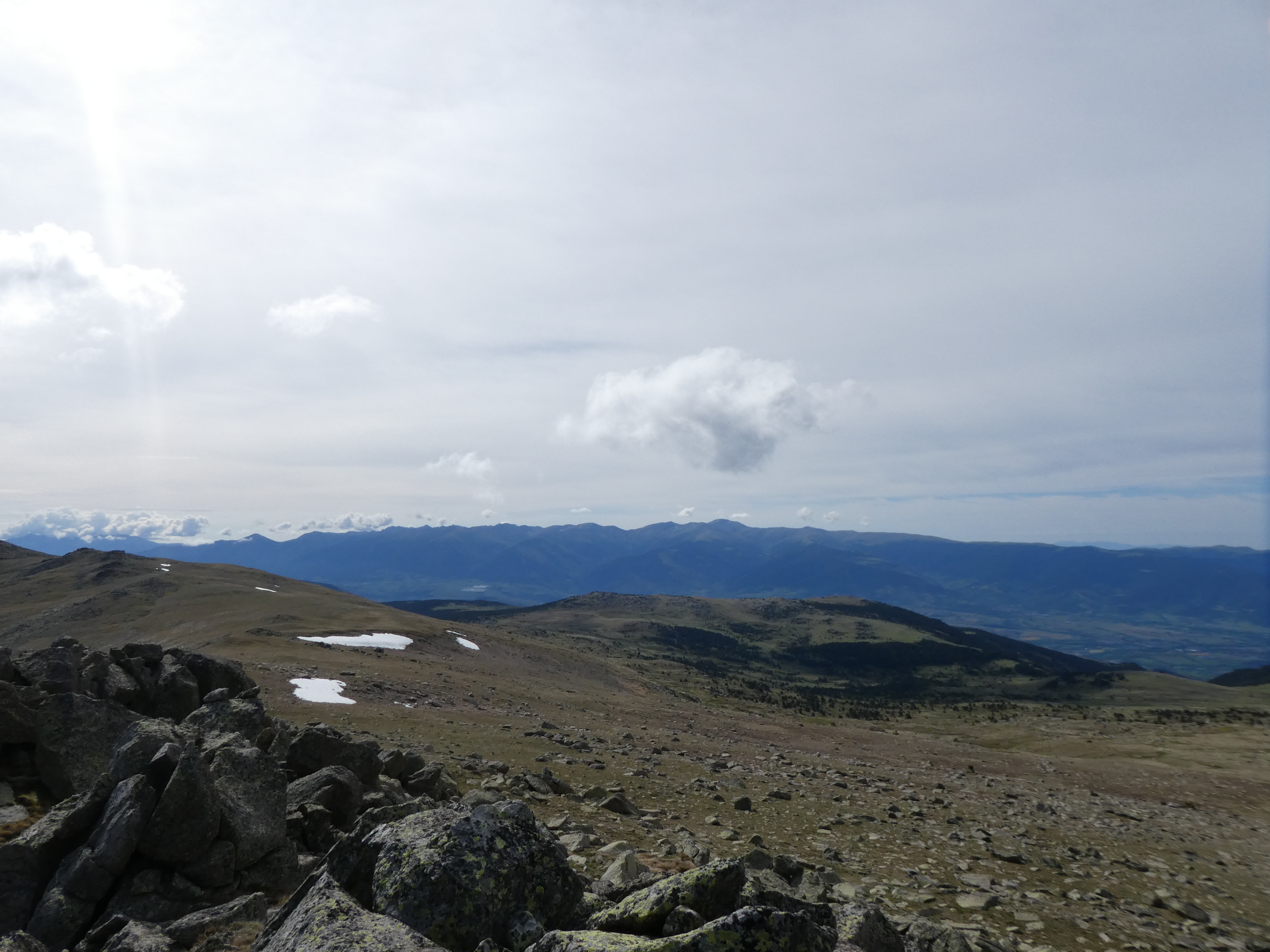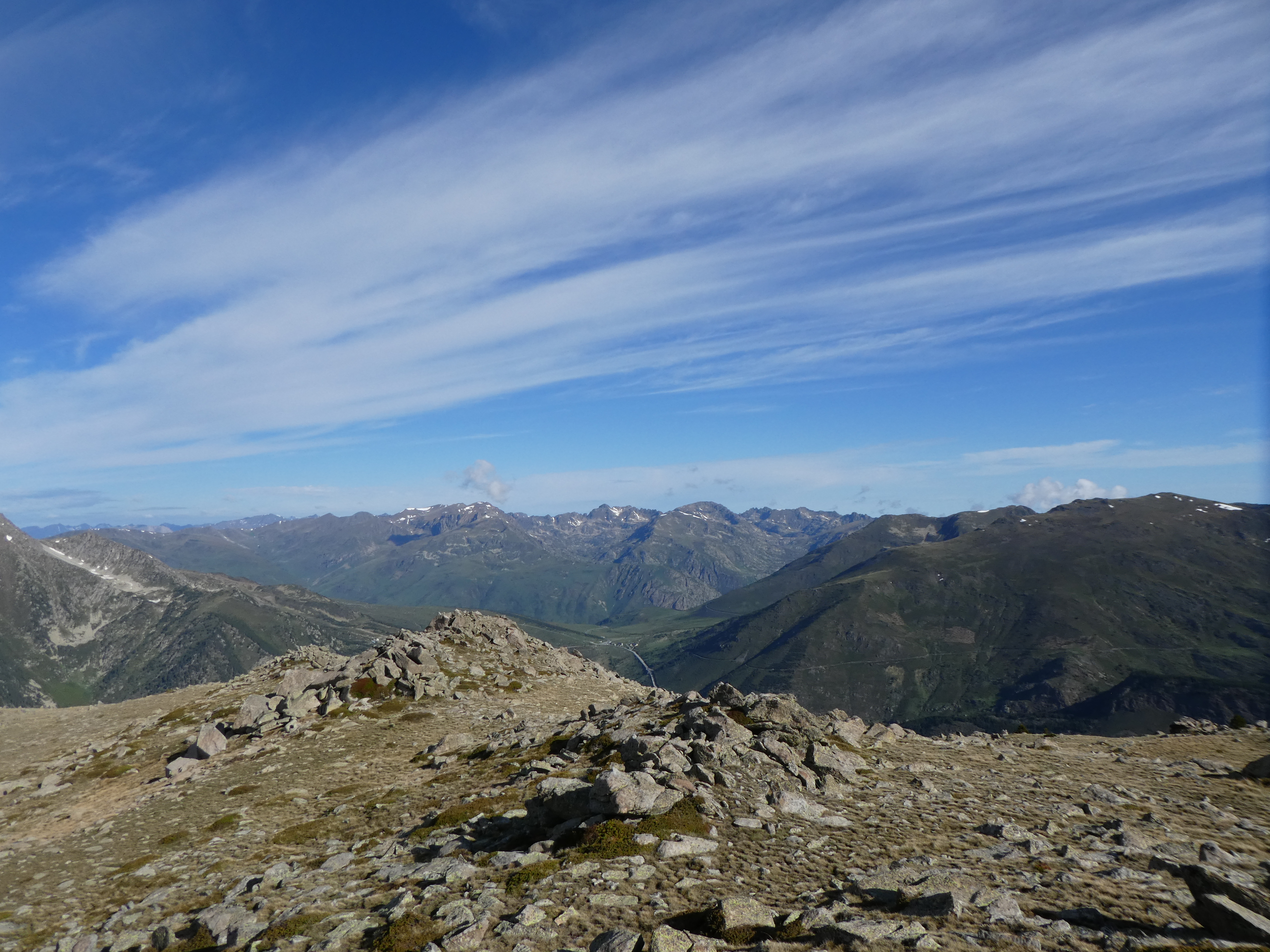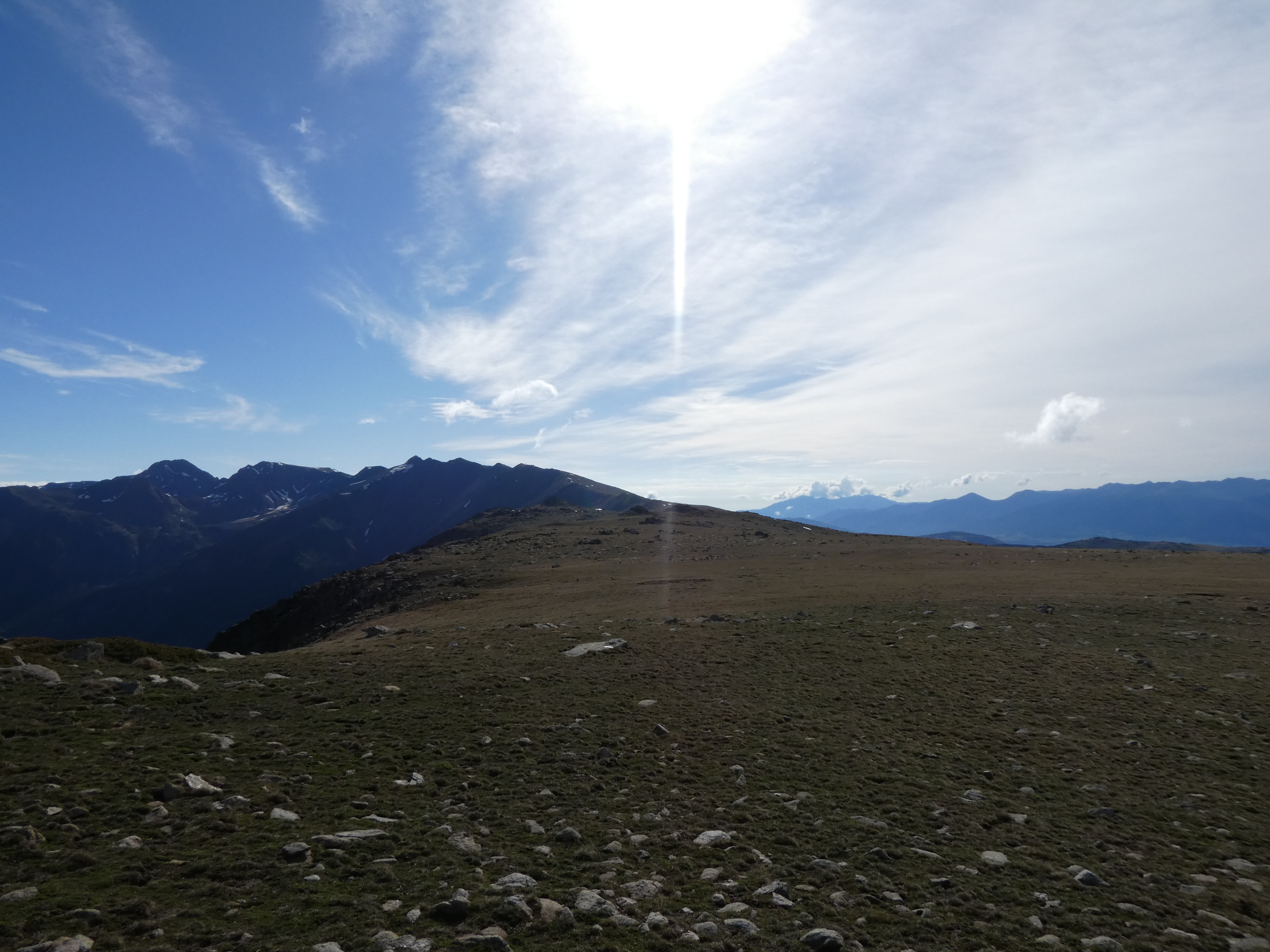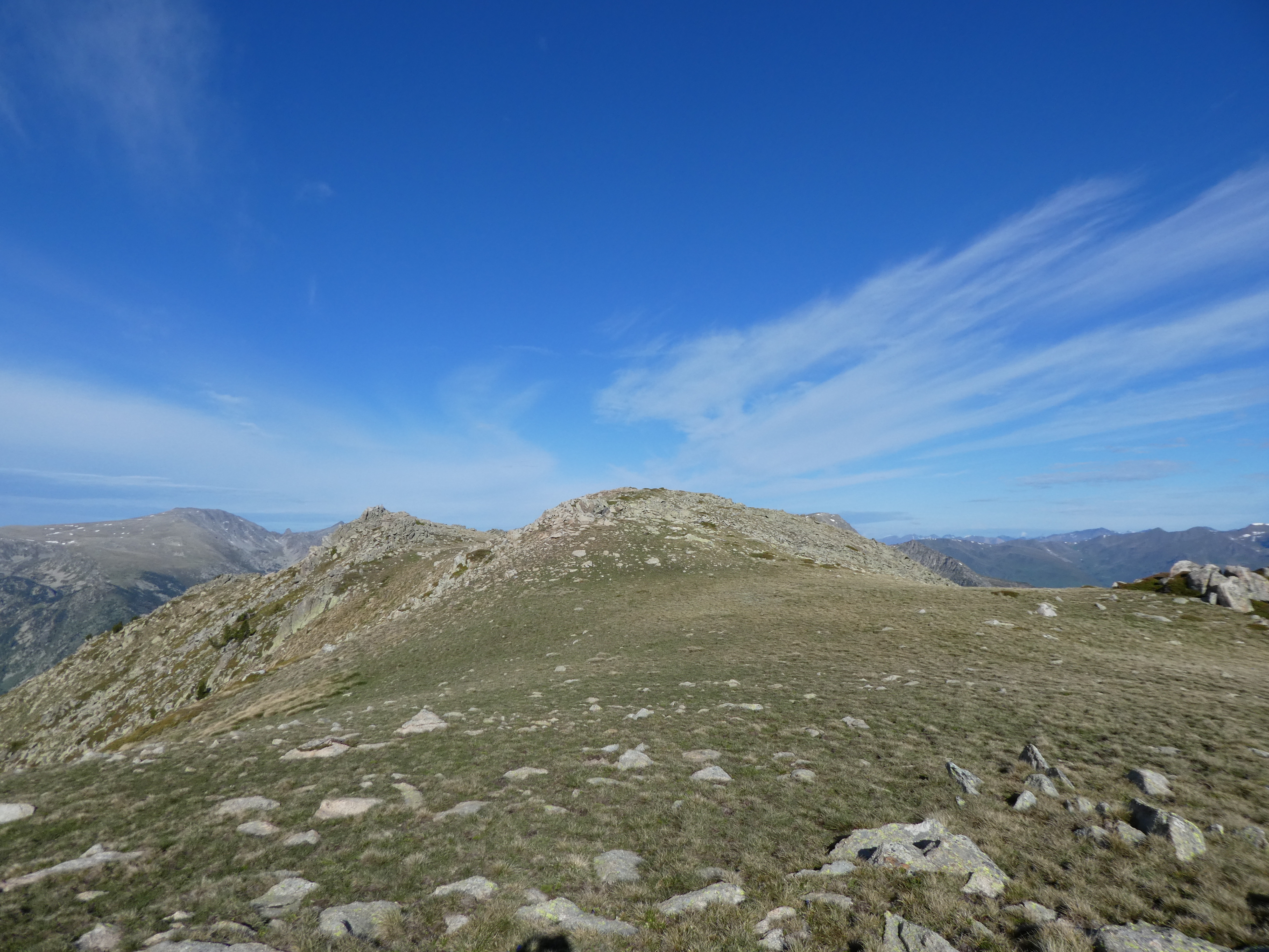 Arrivée au sommet de la Serra de la Portella de Bac d'Hortell (2574 m) : panorama semblable à celui d'el Punxó avec vue plus dégagée sur la Haute Vallée du Querol