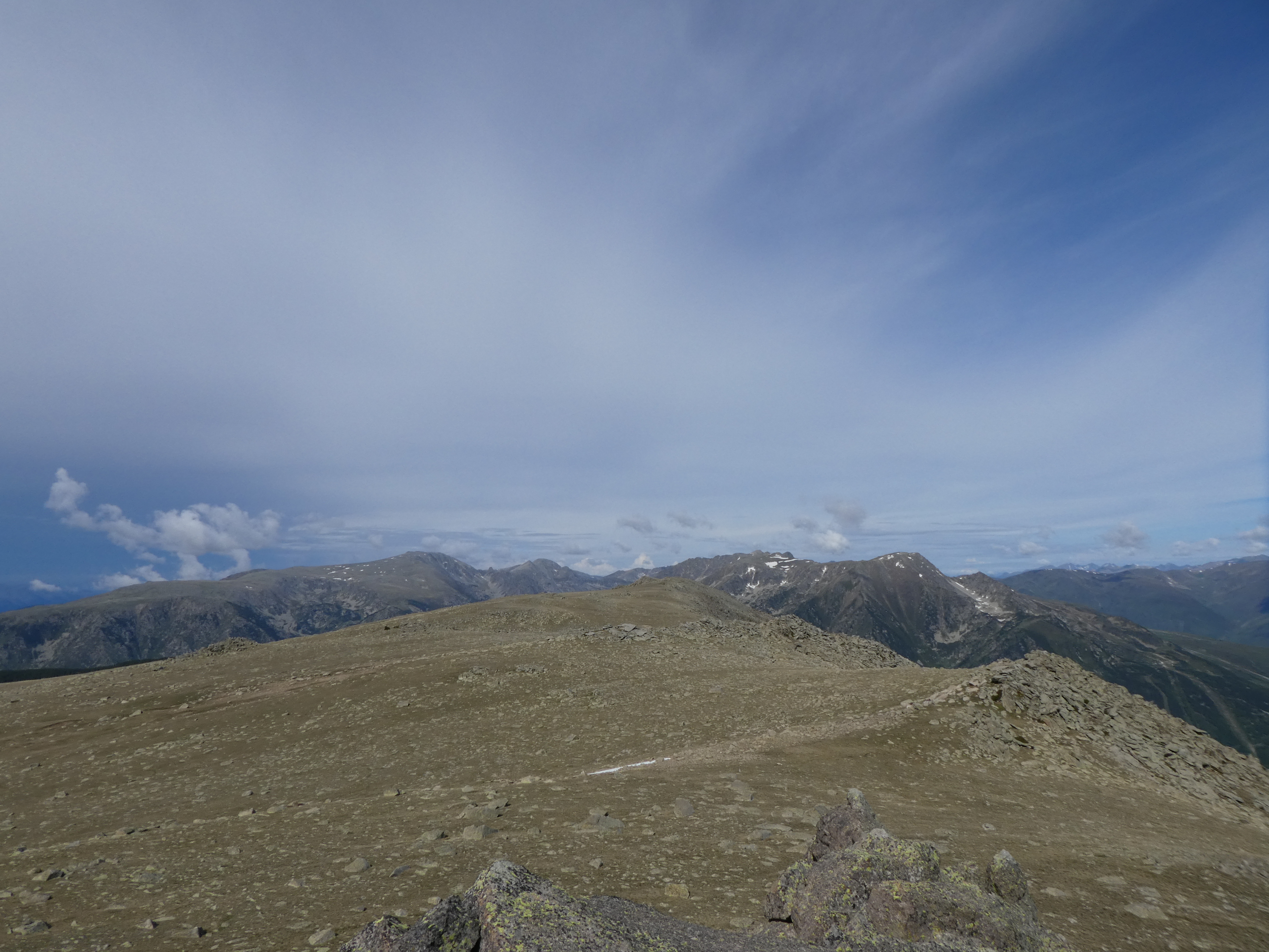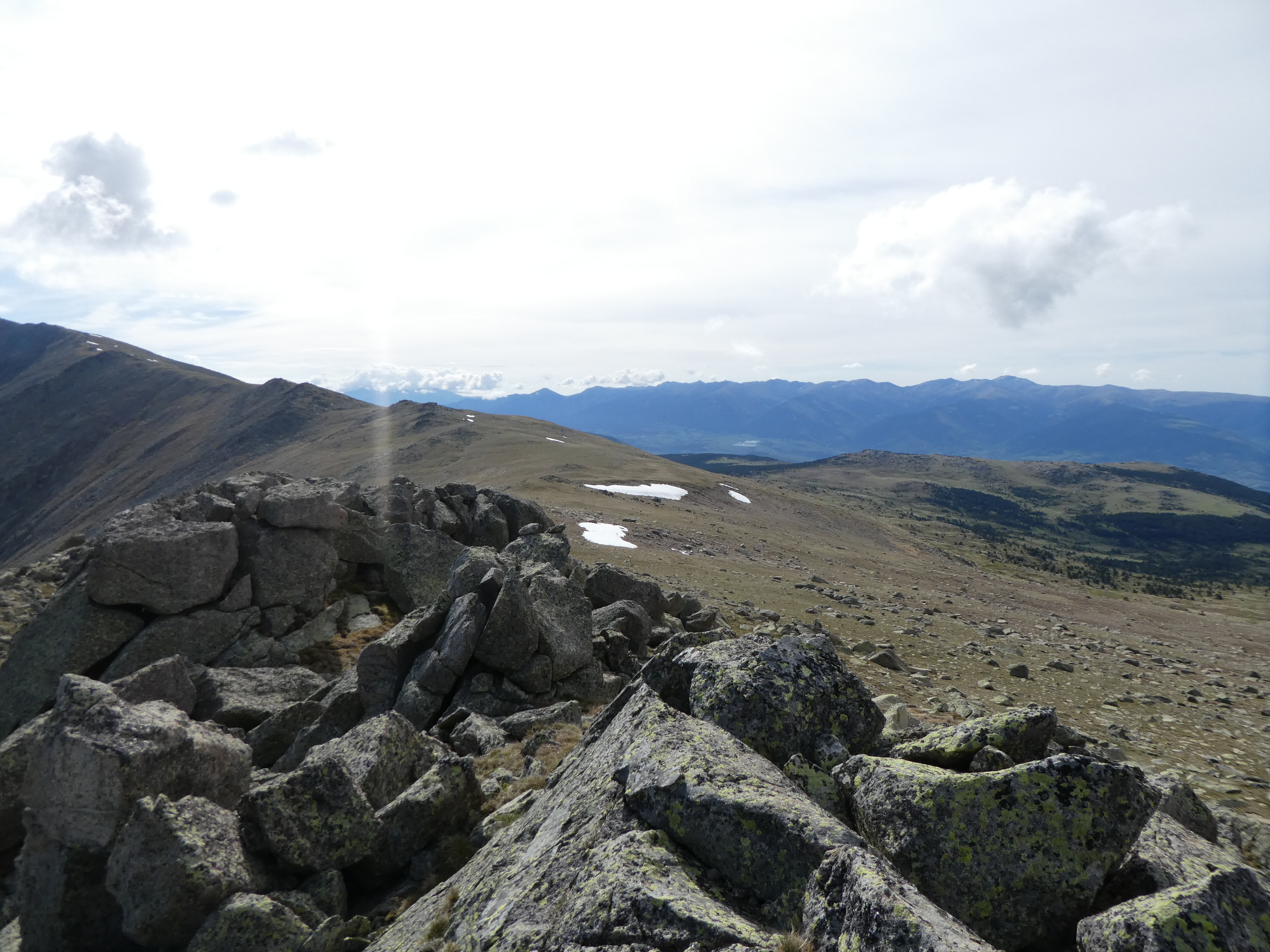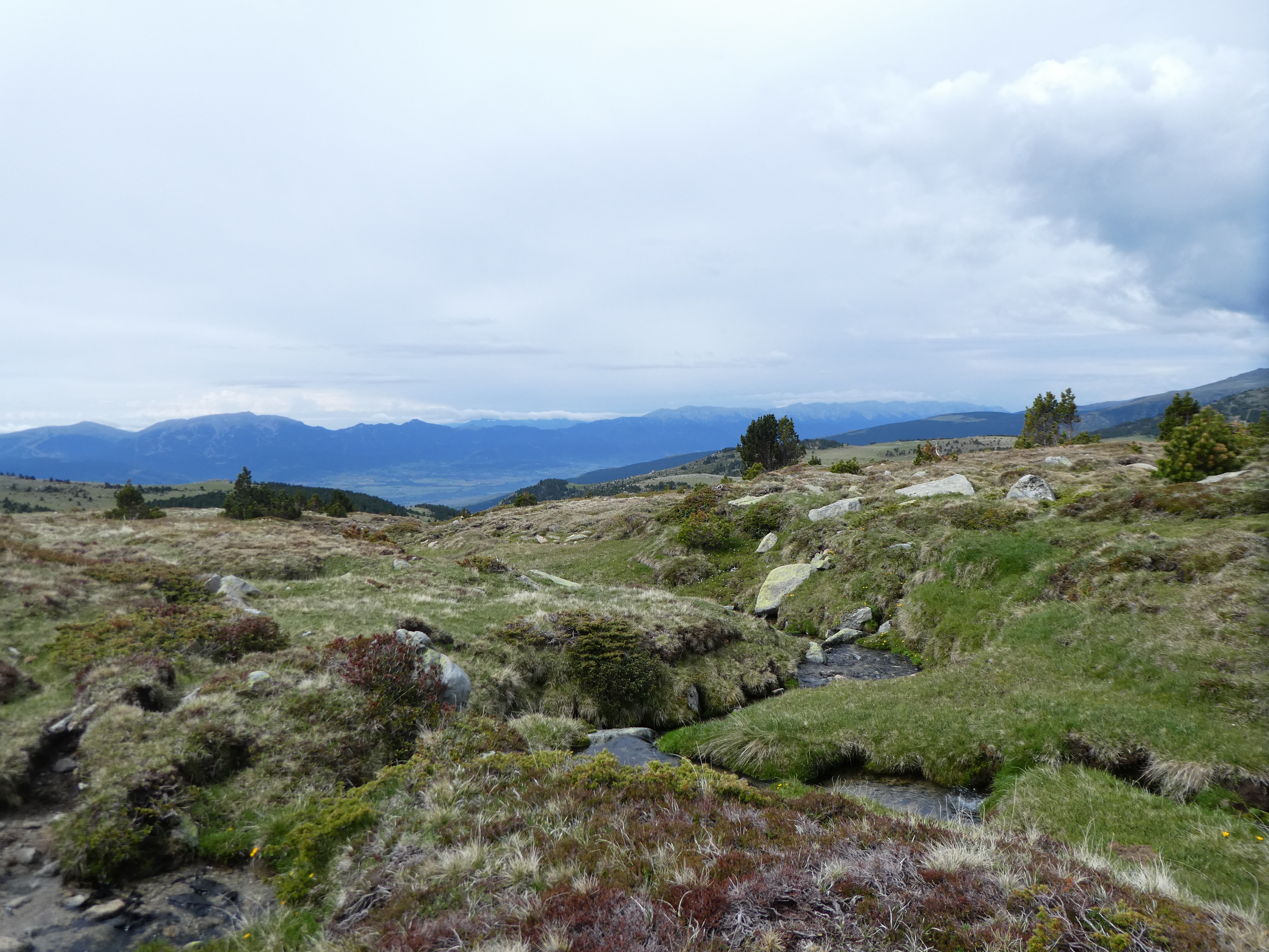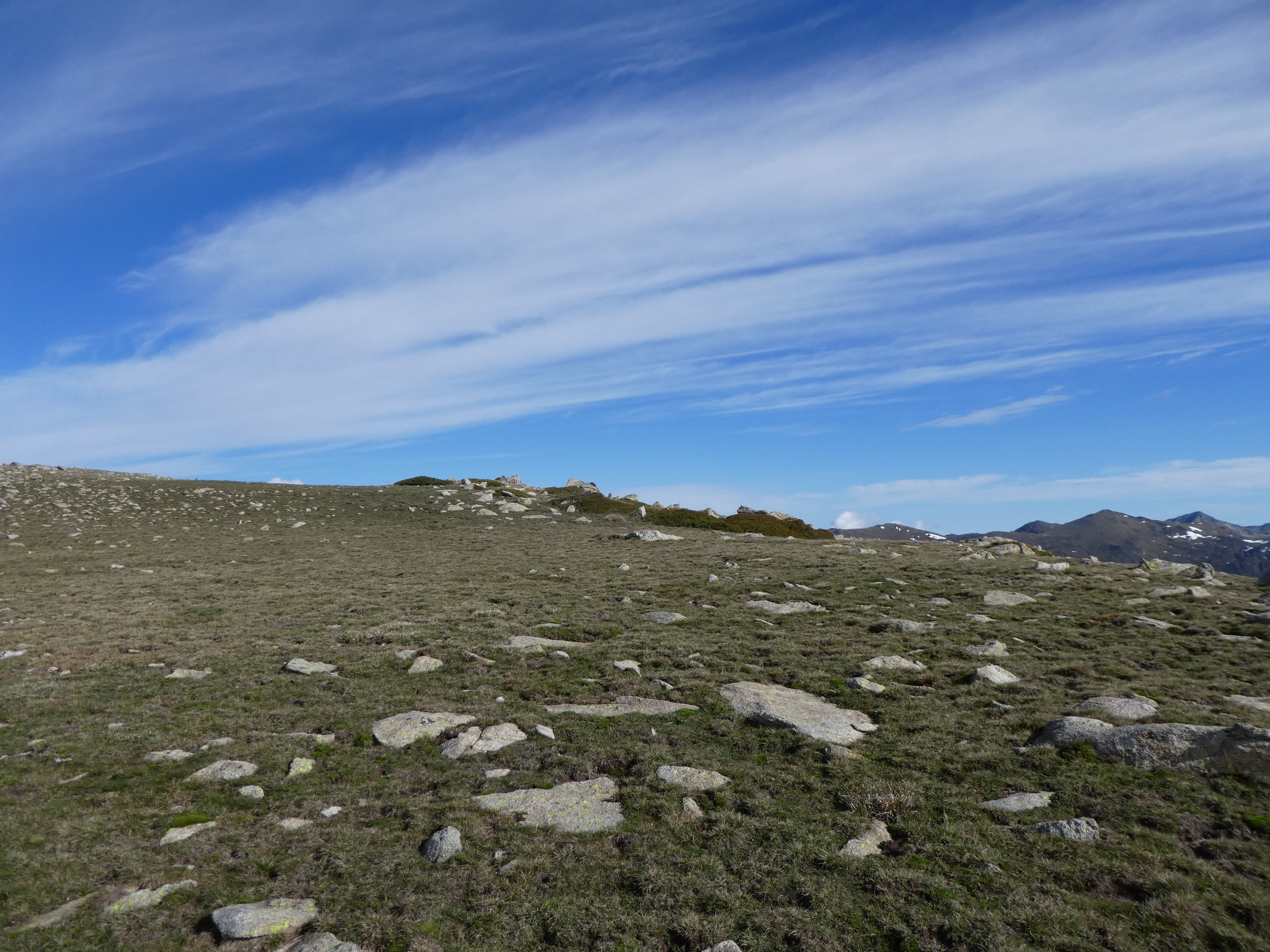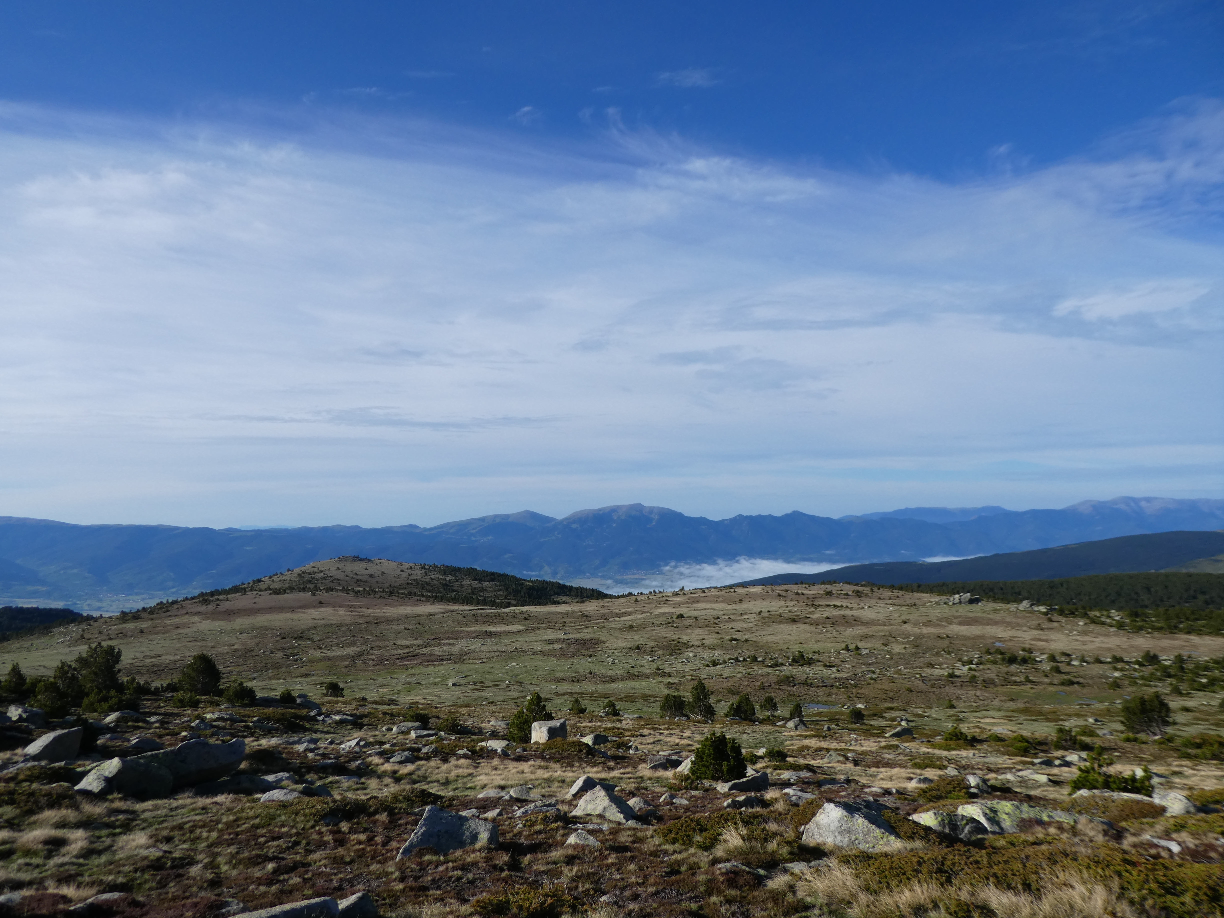 Arrivée au sommet de la Serra de la Portella de Bac d'Hortell (2574 m) : panorama semblable à celui d'el Punxó avec vue plus dégagée sur la Haute Vallée du Querol