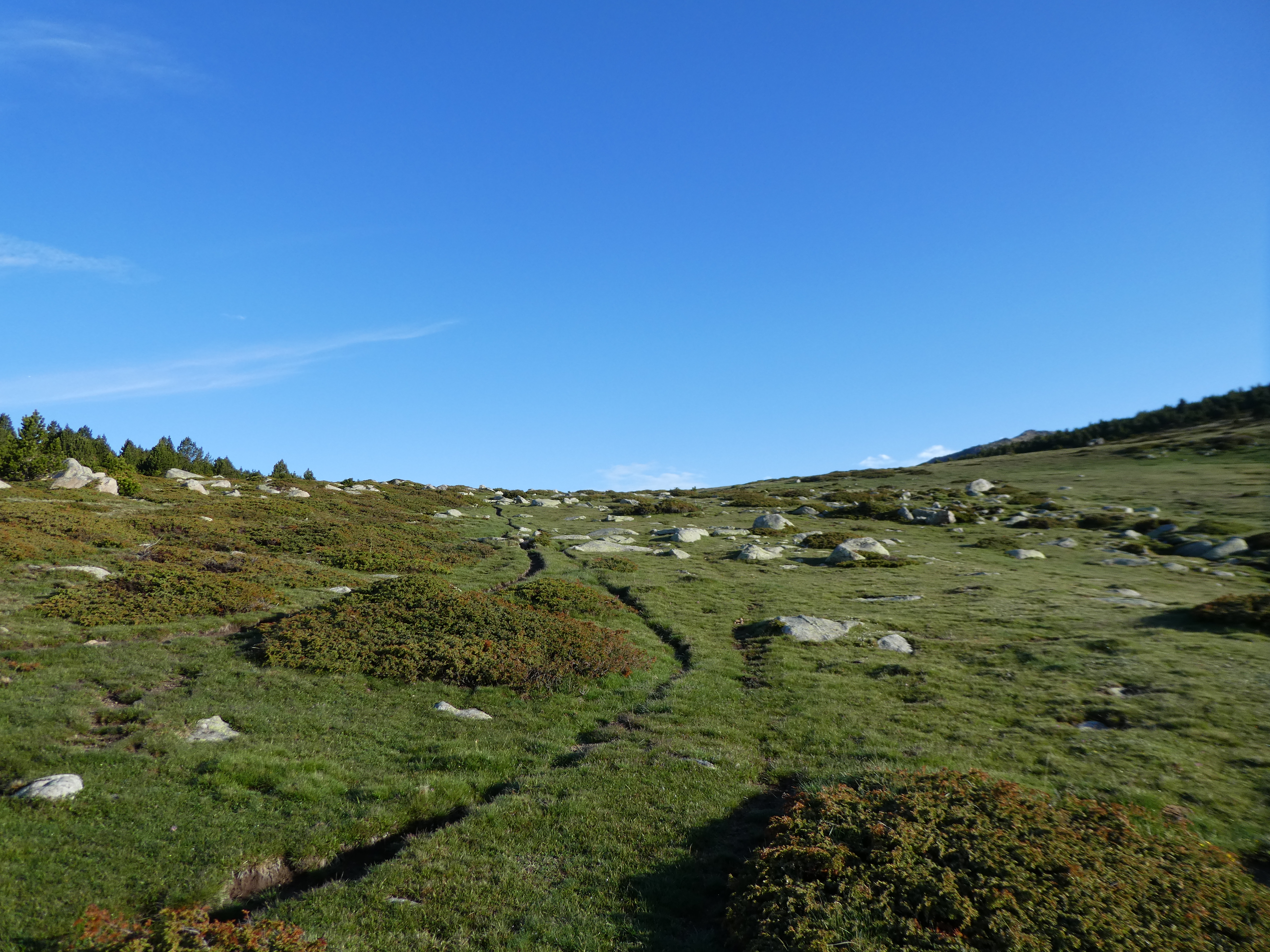 Dès que les laquets des Estanyets sont visibles (1300 mètres après la Portella de Bac d'Hortell), descendre vers ces derniers puis les contourner par l'Ouest direction els Estanyets