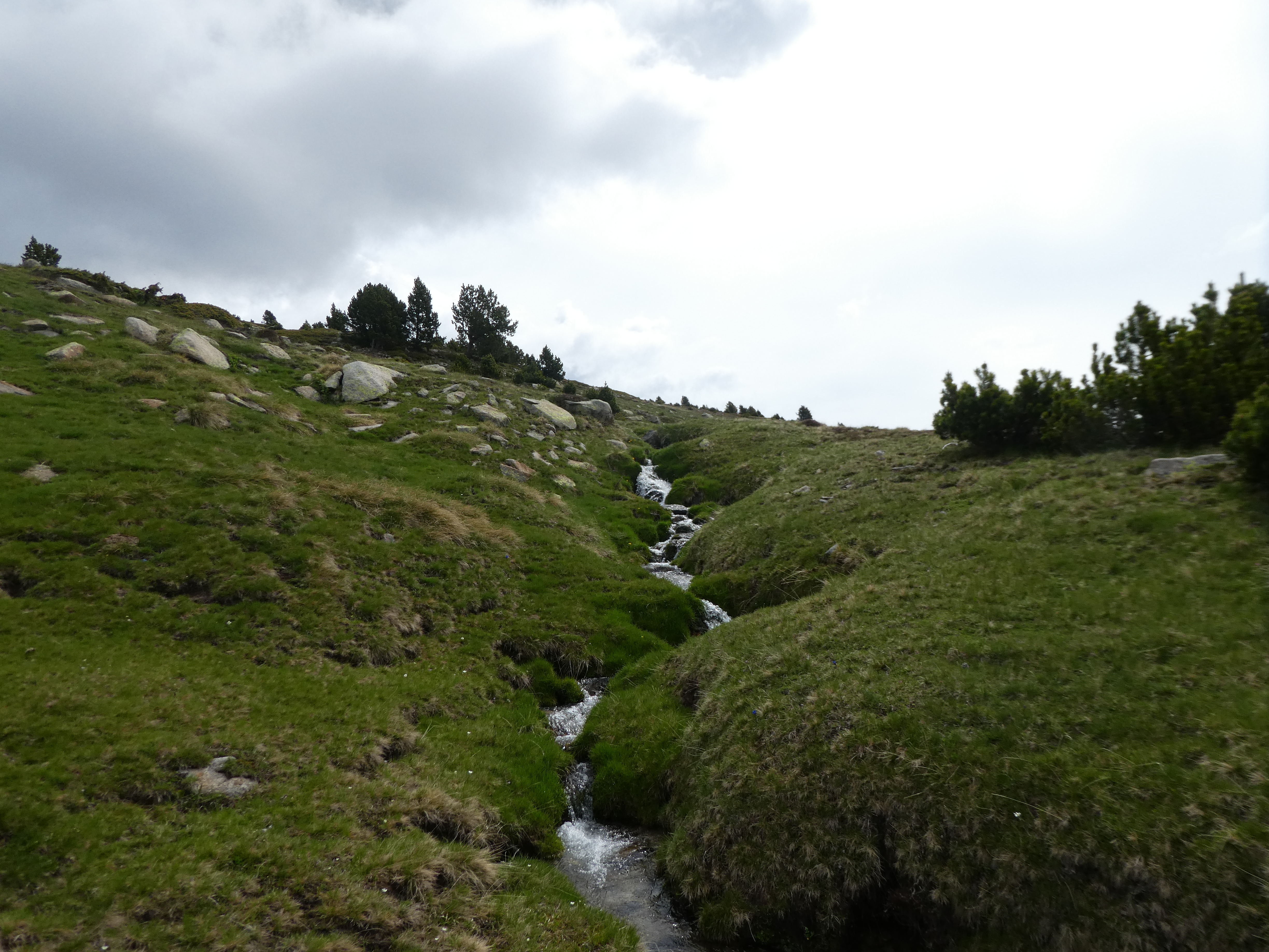 Els Estanyets (2395 m) : suivre le lit du cours d'eau partant le plus à droite de tous direction Bena, balisé sporadiquement en bleu dorénavant (l'itinéraire vers la Vall de Brangoli se fait hors sentier)