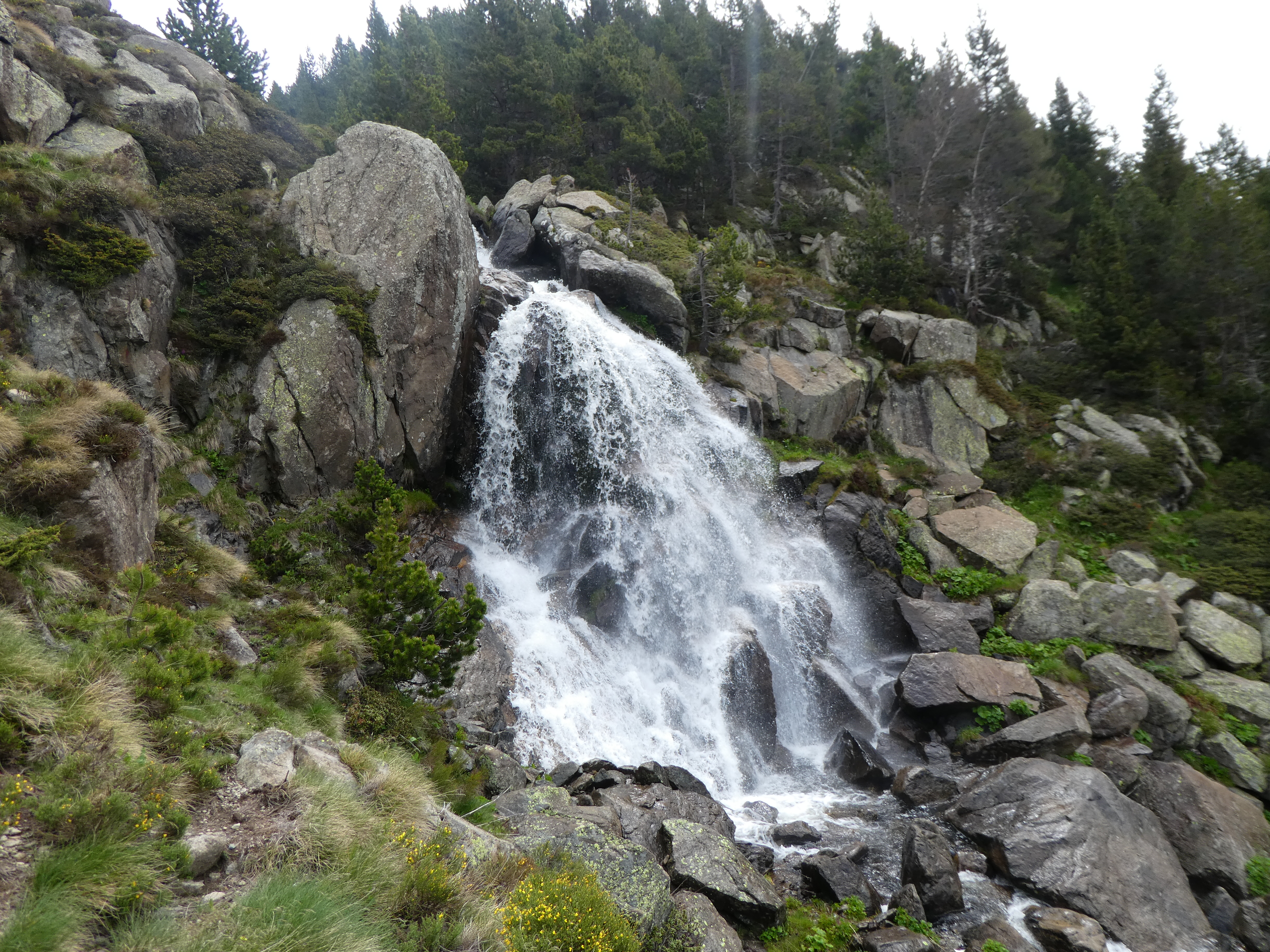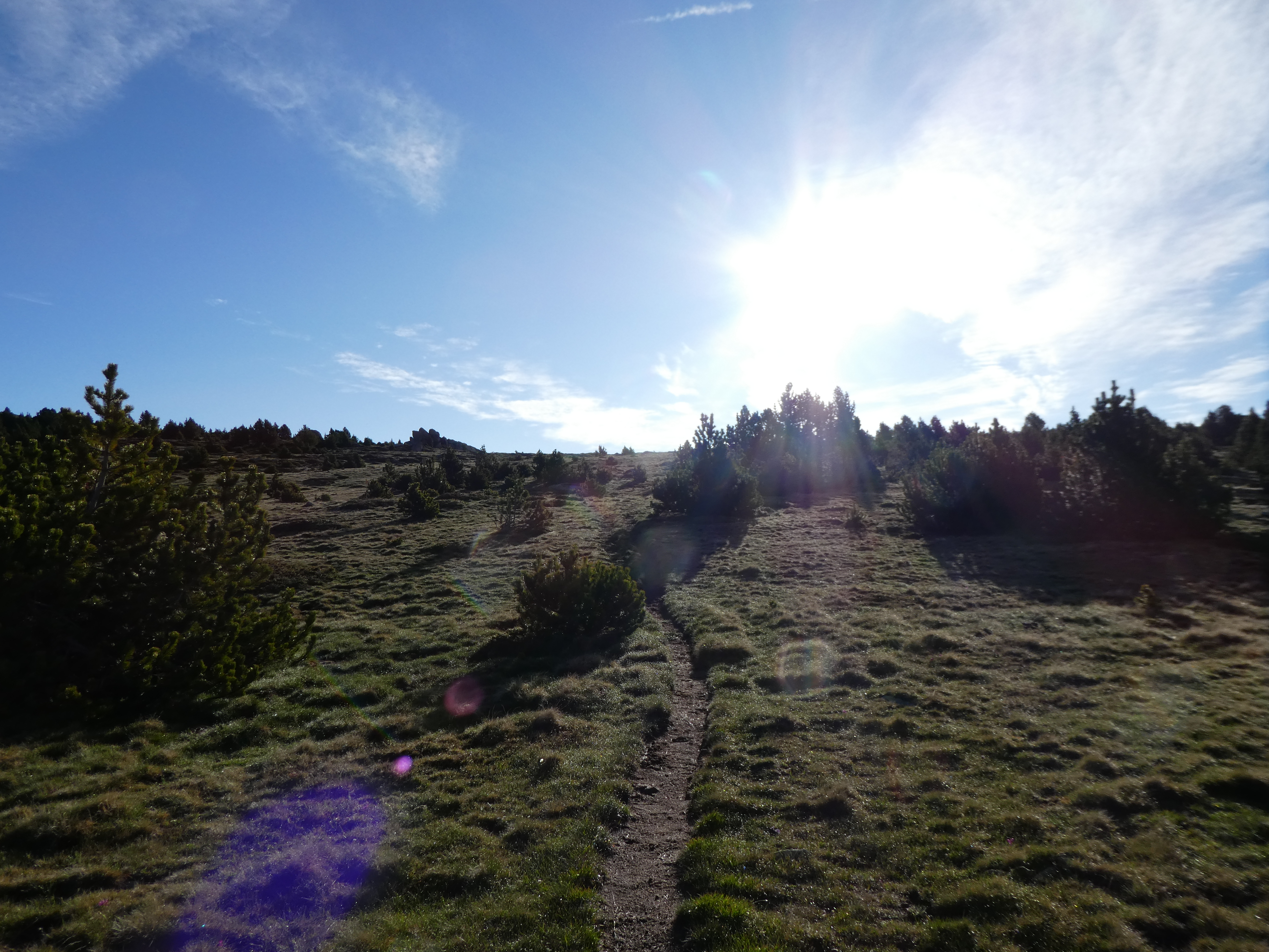- Sentier mal tracé (balisé en bleu désuet) du site des Estanyets jusqu'au début de la descente de la Vall de Brangoli