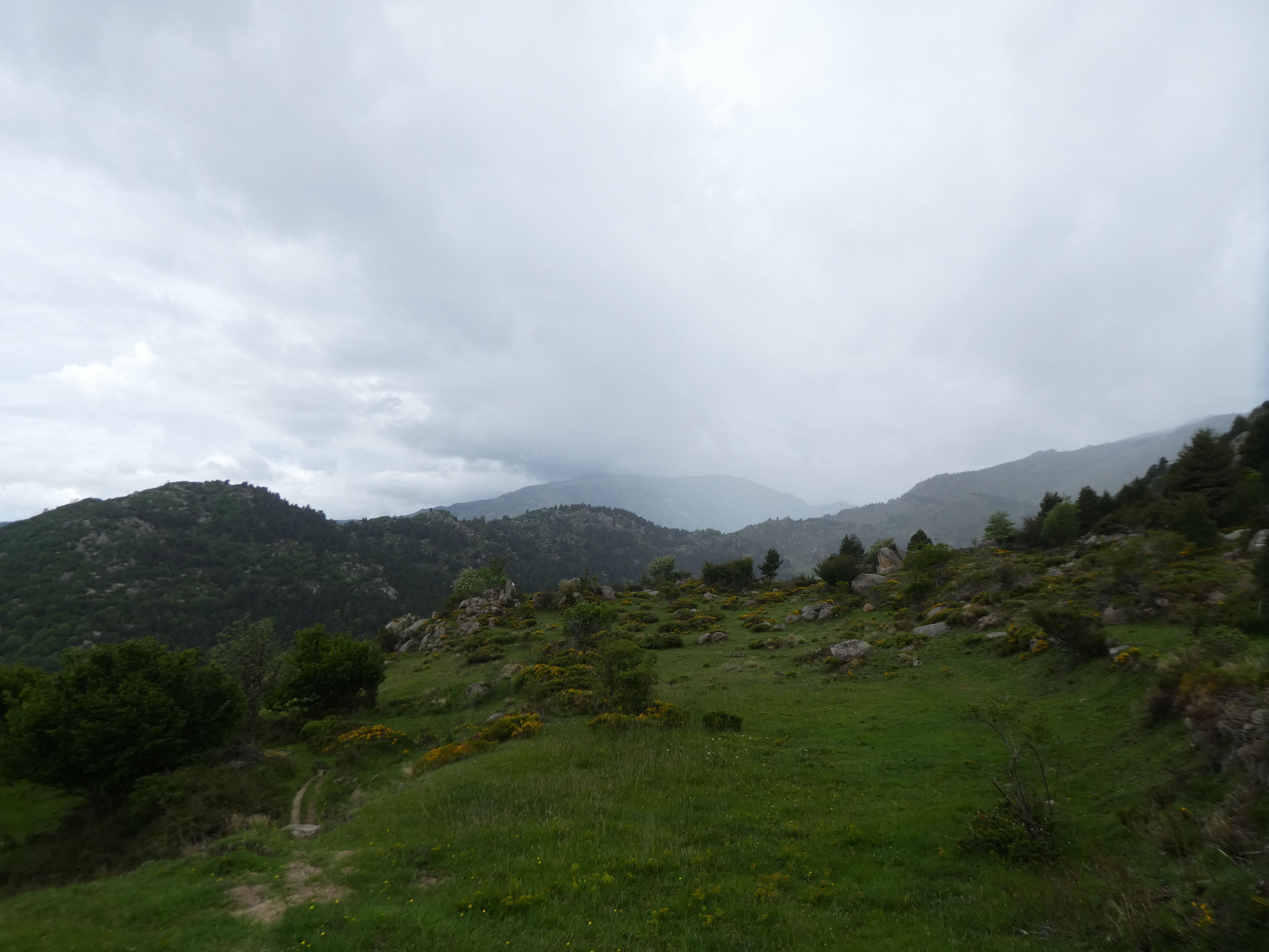 A ce croisement situé juste avant la Cabane du Brangoli (2500 mètres après avoir passé le portillon) (1723 m), suivre le chemin partant tout droit direction Bena, balisé uniquement et sporadiquement en bleu dorénavant