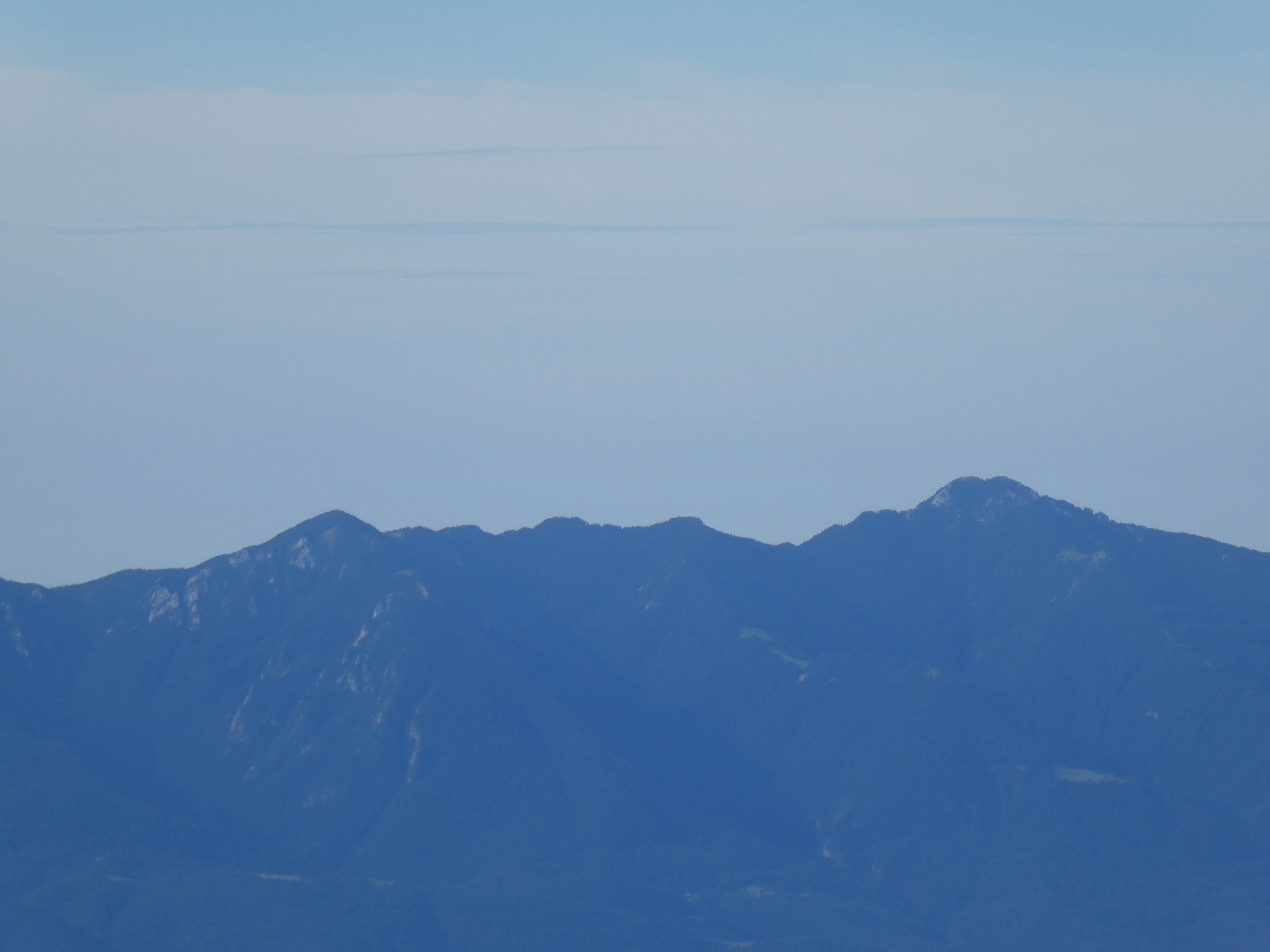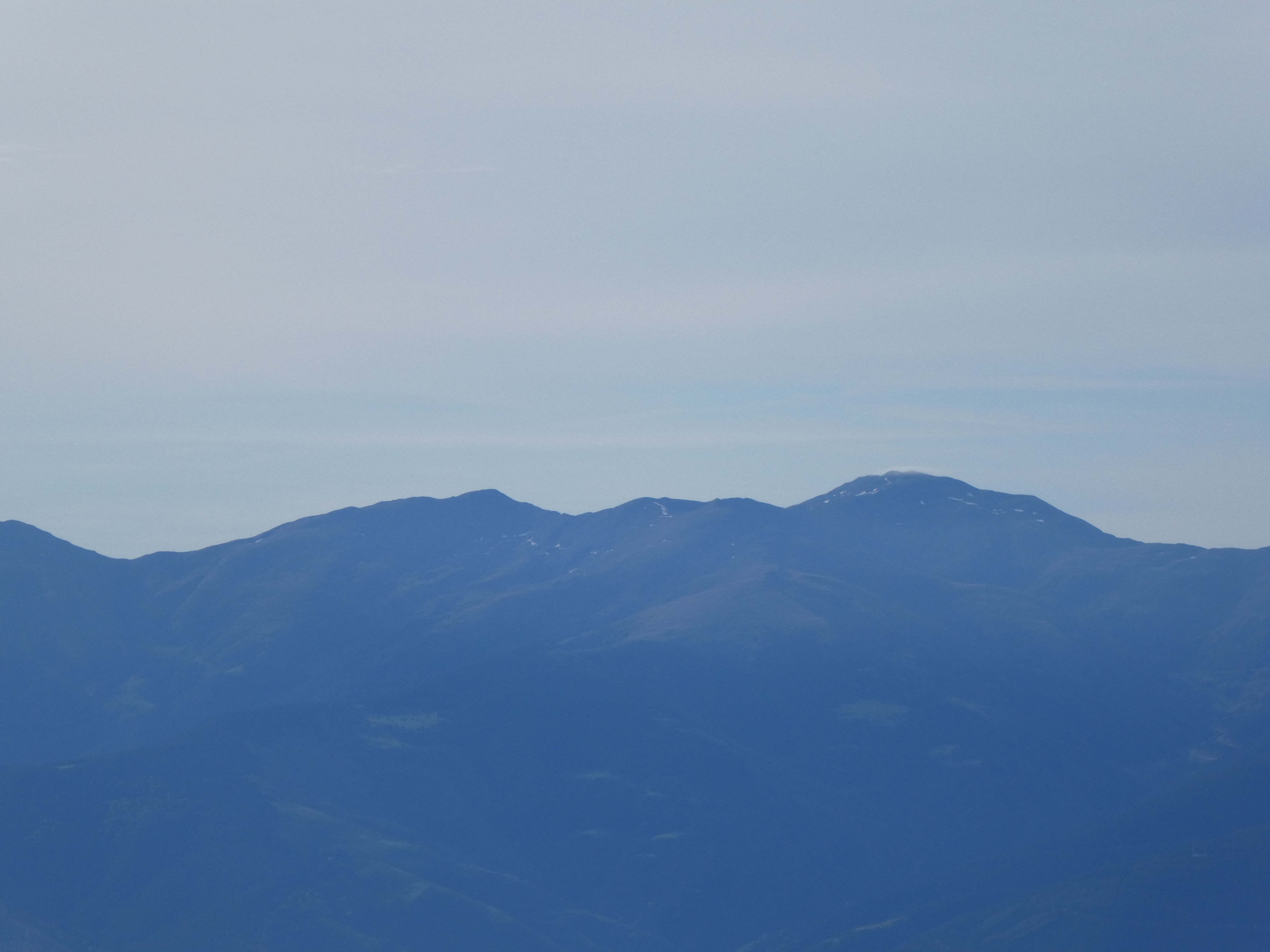 Zoom sur le Pic de Serra Gallinera (2663 m) à gauche et le Pic de la Dona (2702 m) à droite