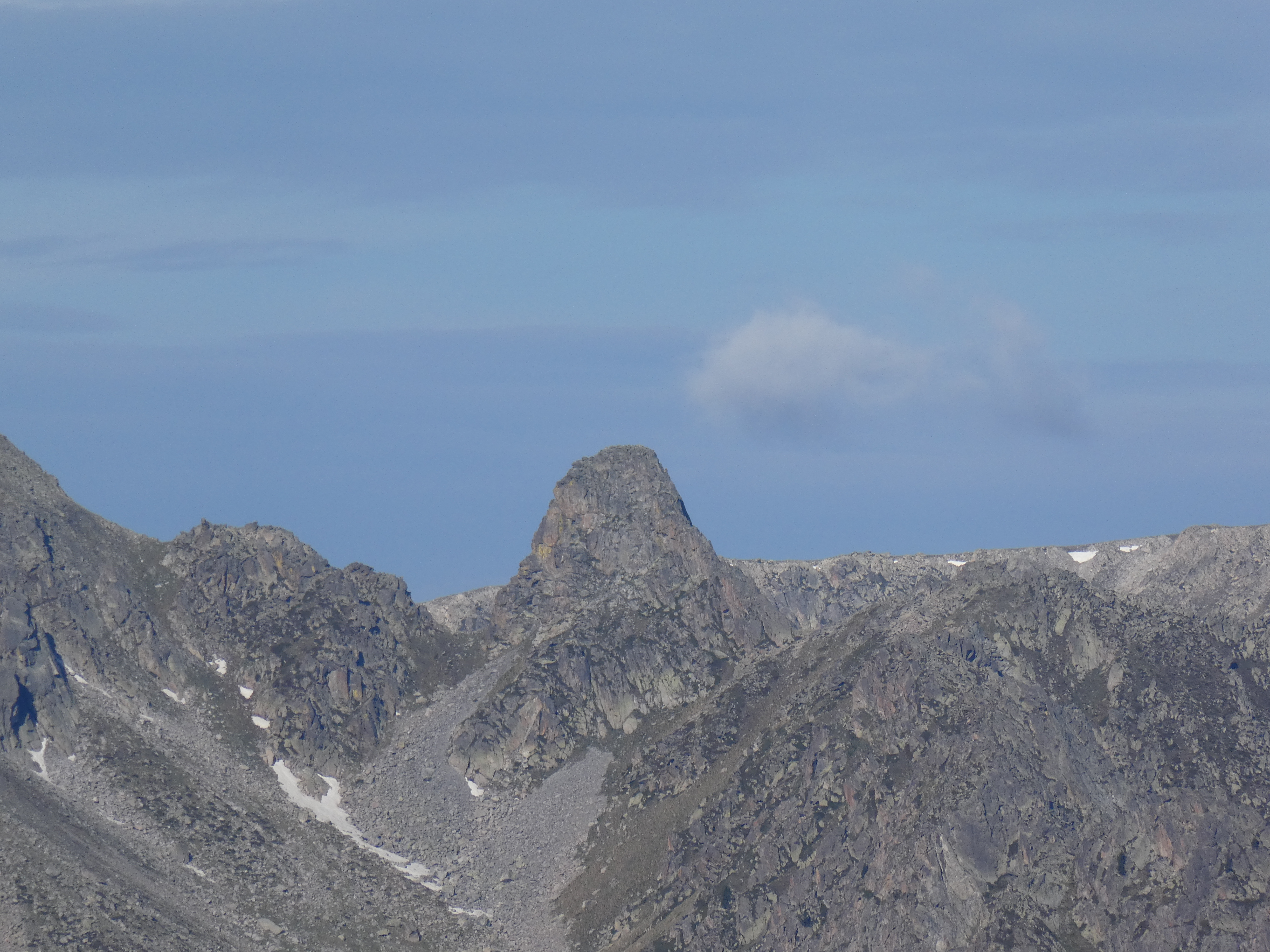 Zoom sur le Pic de la Cabaneta (2816 m) au centre et le Roc Mélé (2811 m) à droite