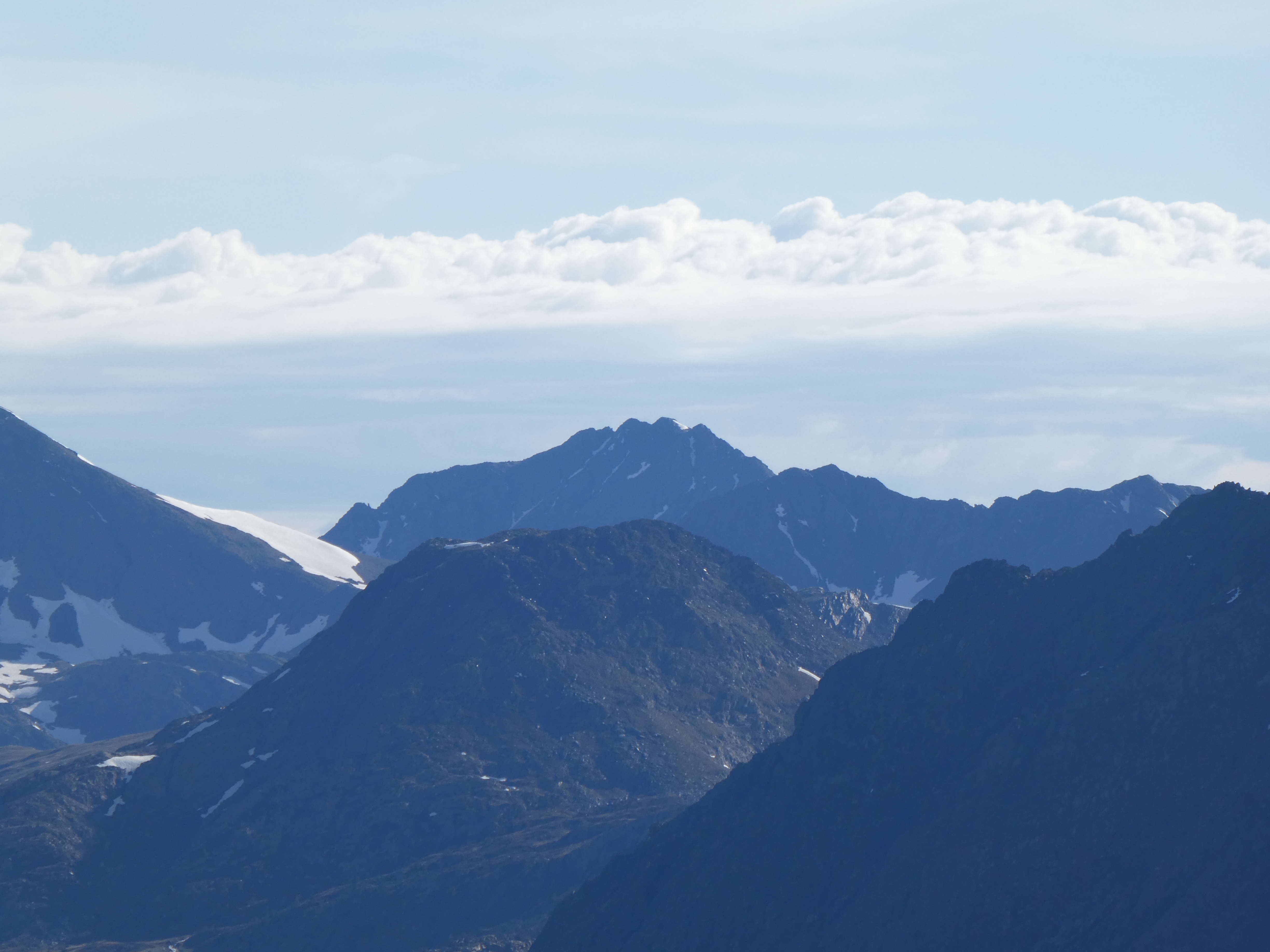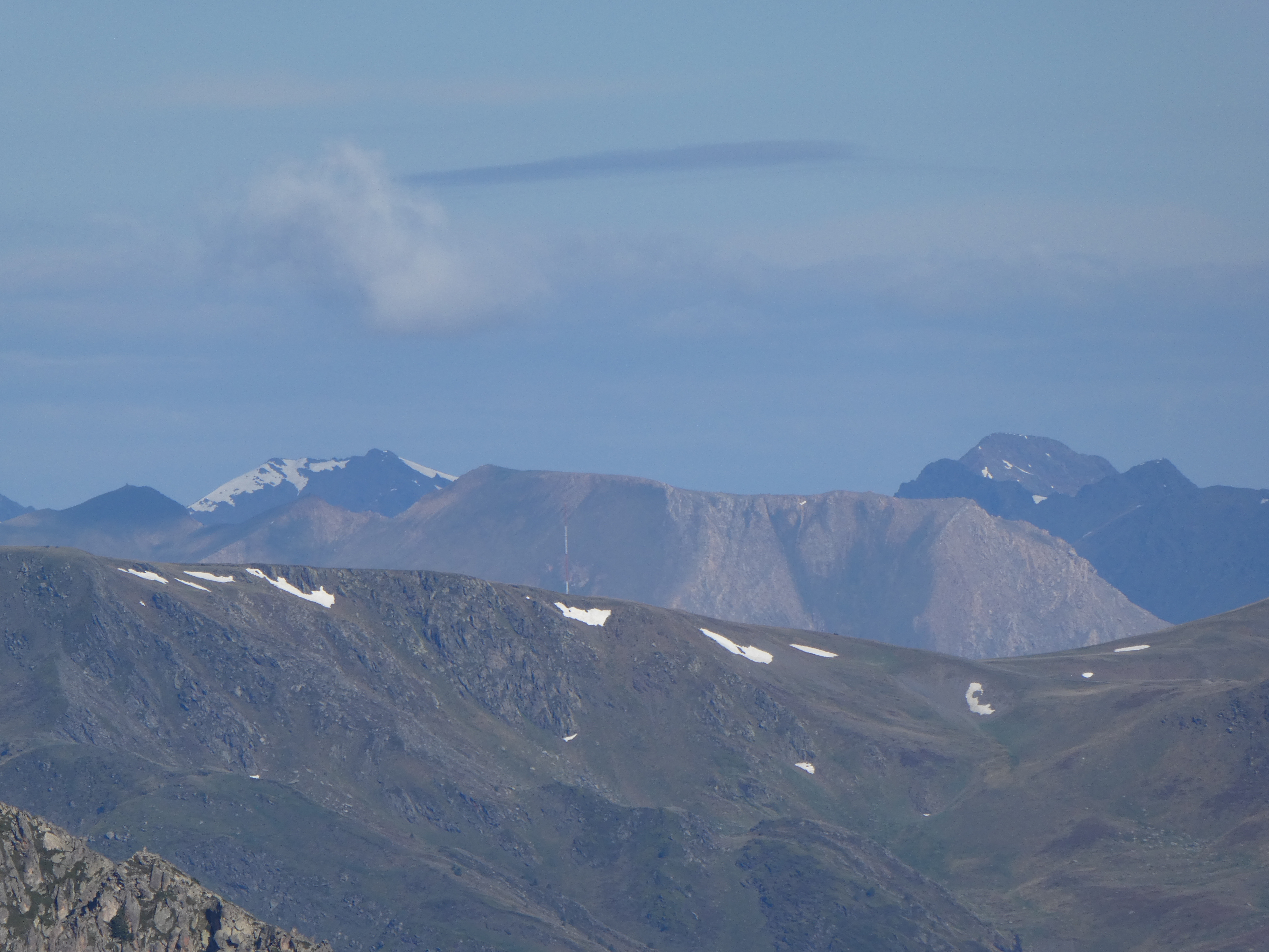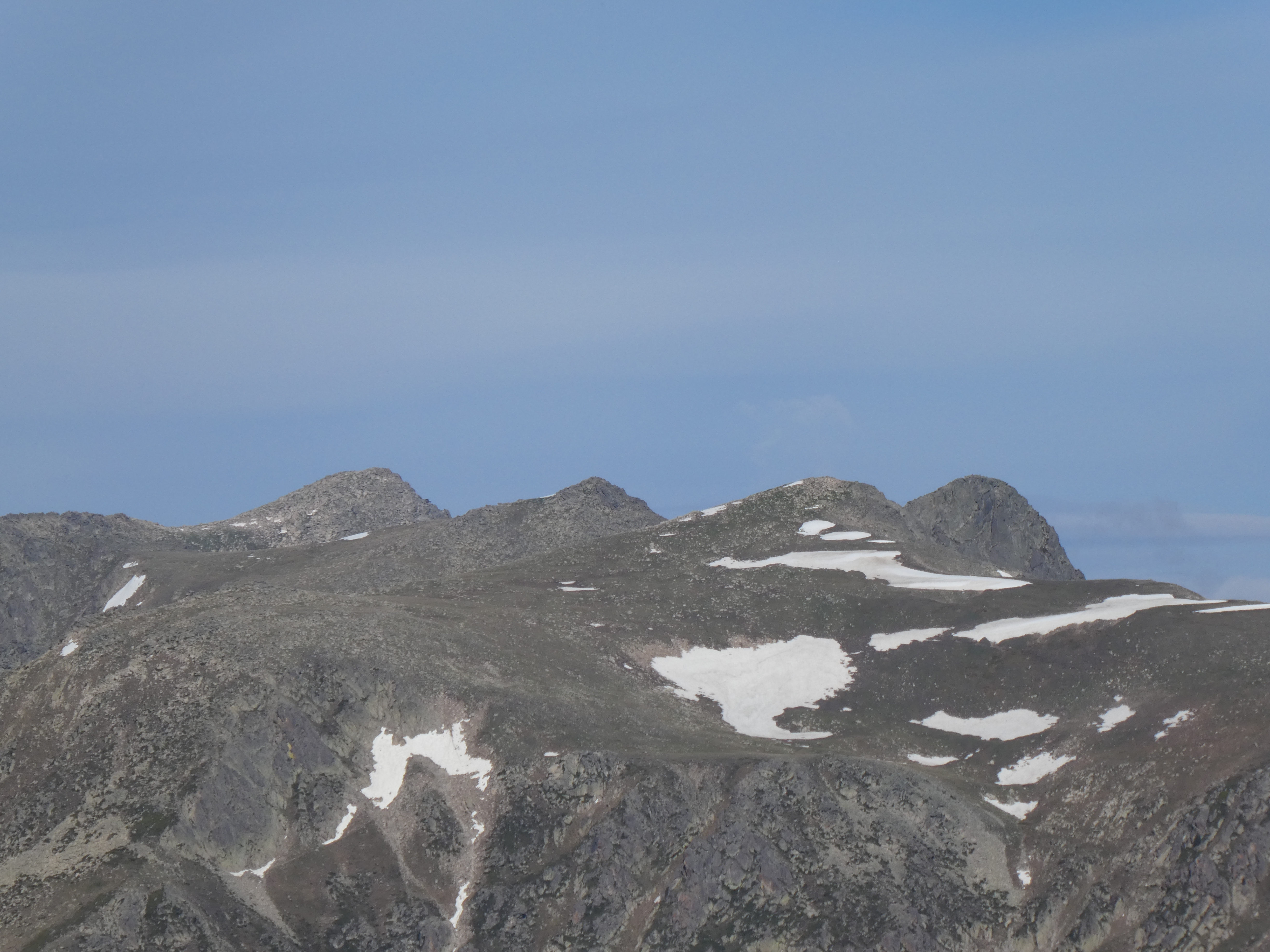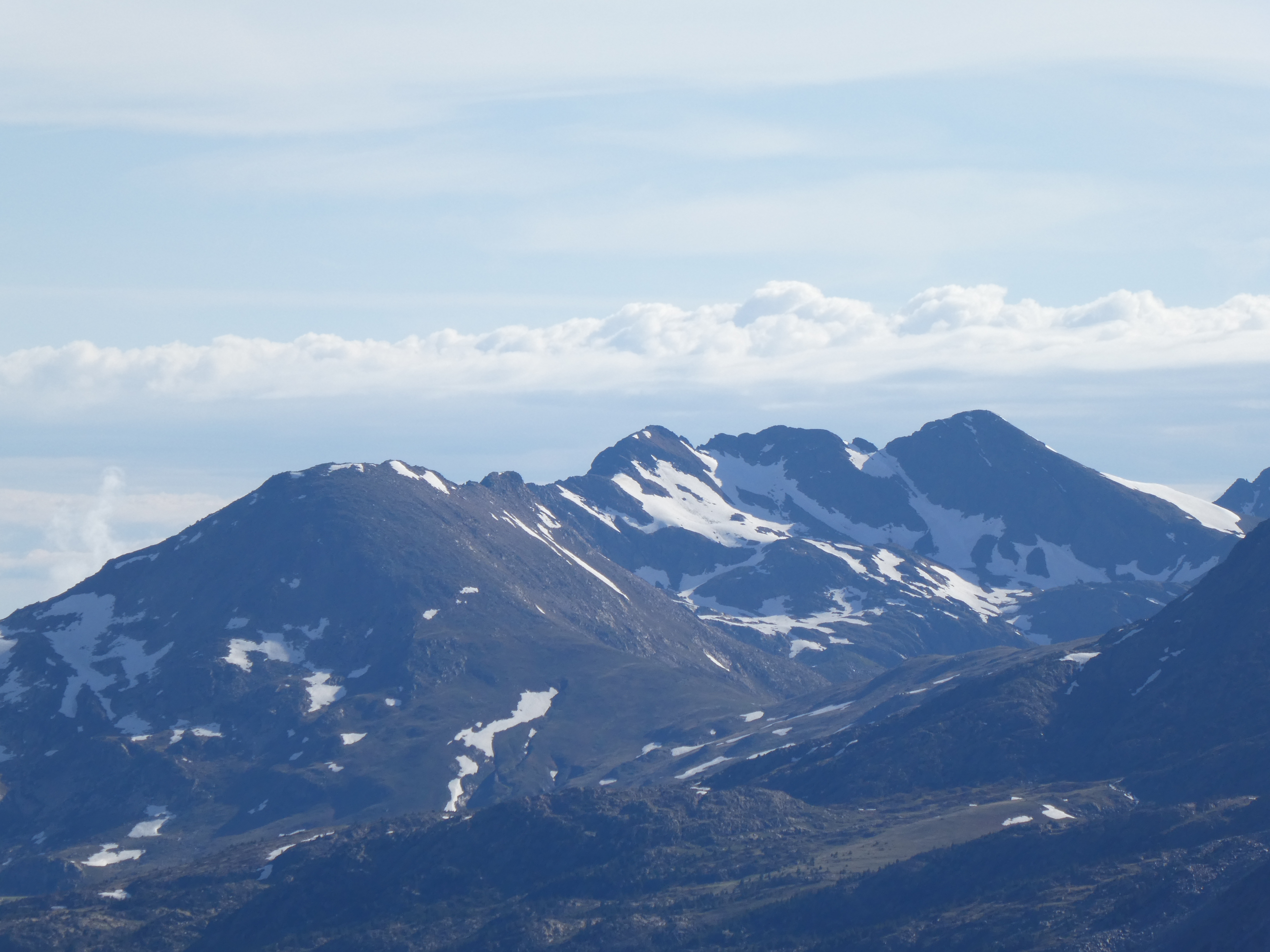 Zoom sur le Puigmal de Segre (2843 m) à gauche, le Puigmal Petit de Segre (2810 m) au centre et le Puigmal (2910 m) à droite