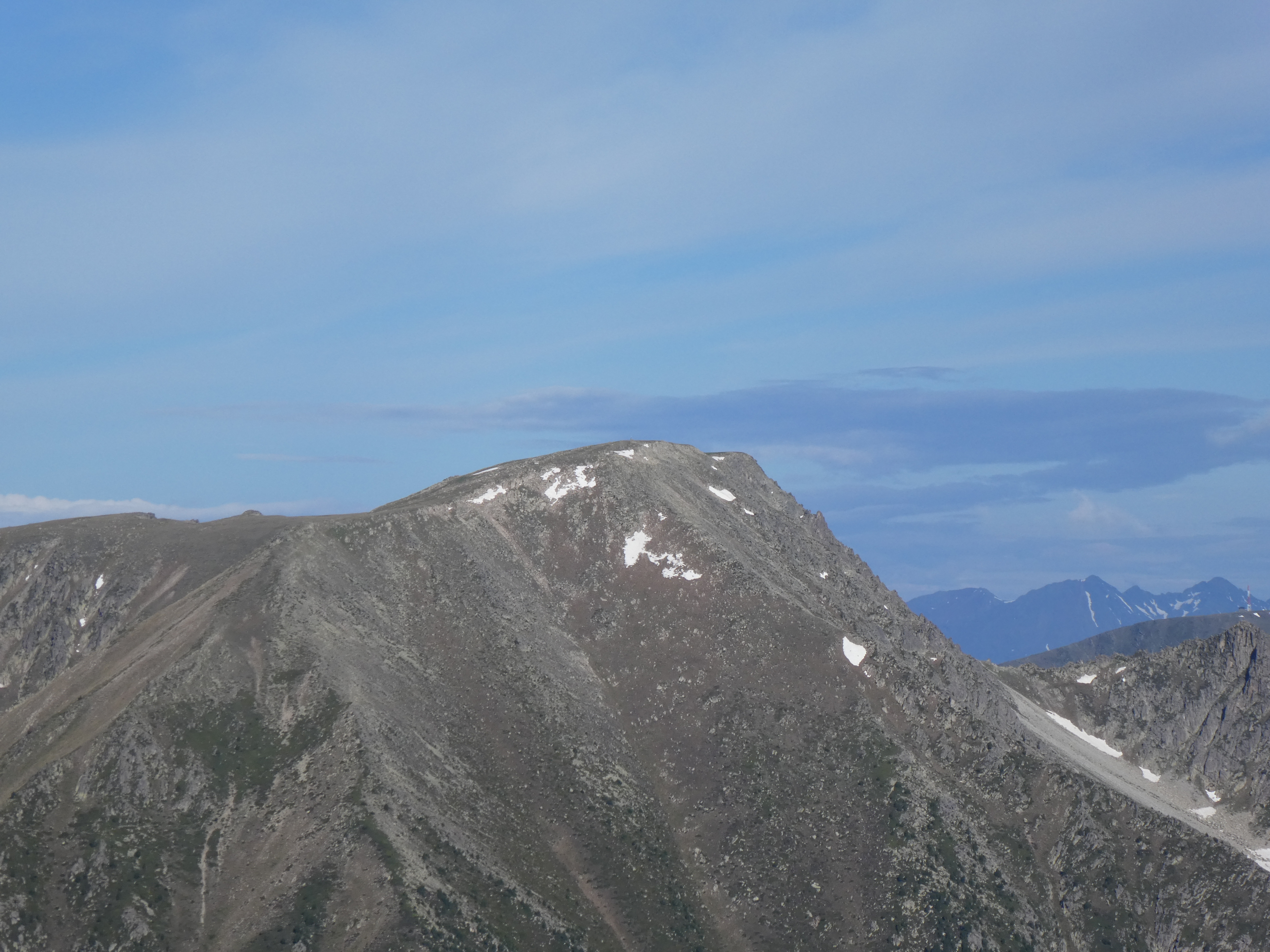 Zoom sur le Puig Pedrós (2842 m) à gauche et le Puig de Coma d'Or (2826 m) à droite