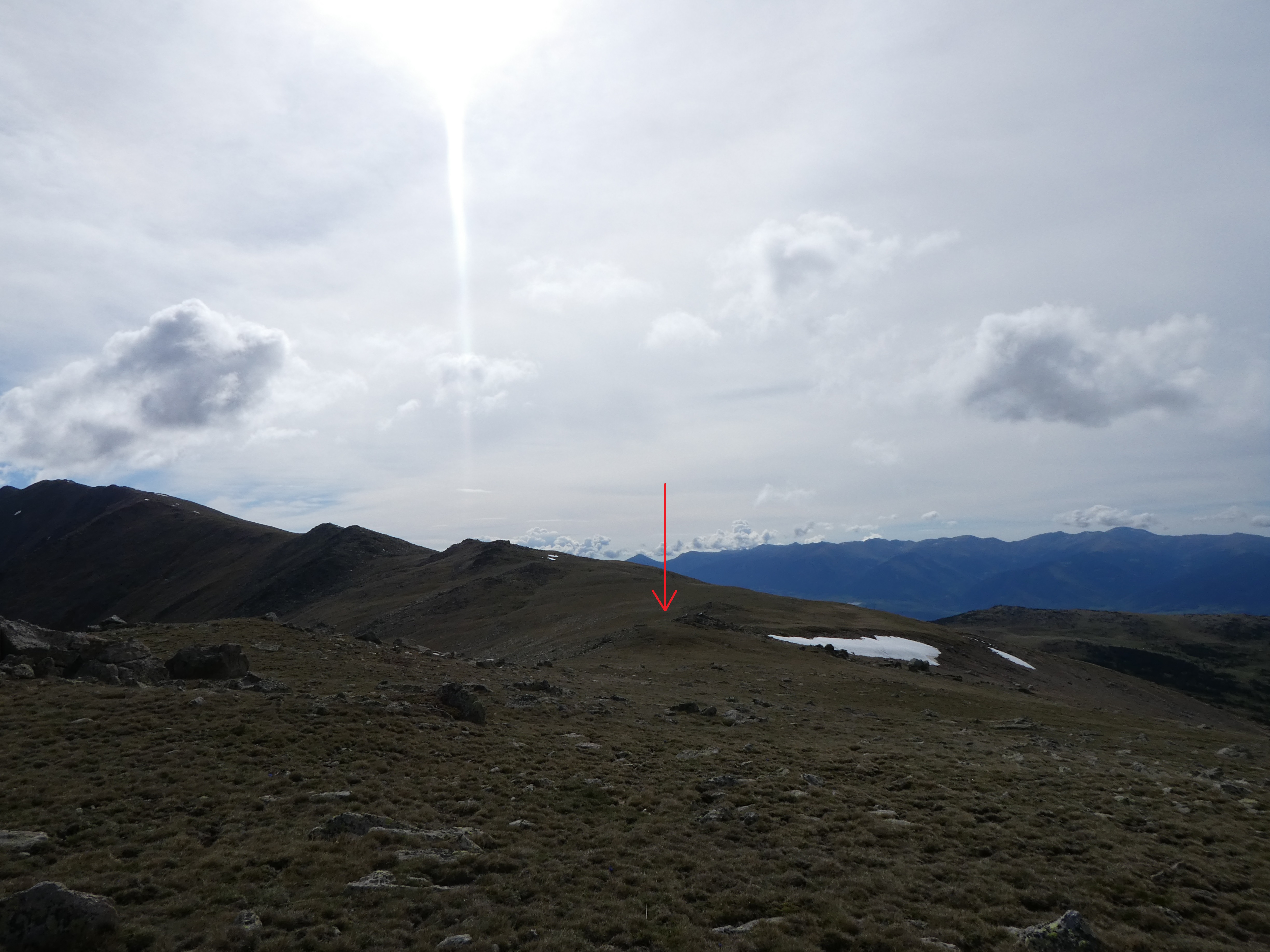 Portella de Bac d'Hortell (2558 m) : ne plus suivre la crête qui monte vers les Puig de Coll Roig mais partir de biais sur la droite en essayant de perdre le moins d'altitude pour rejoindre les laquets des Estanyets direction els Estanyets