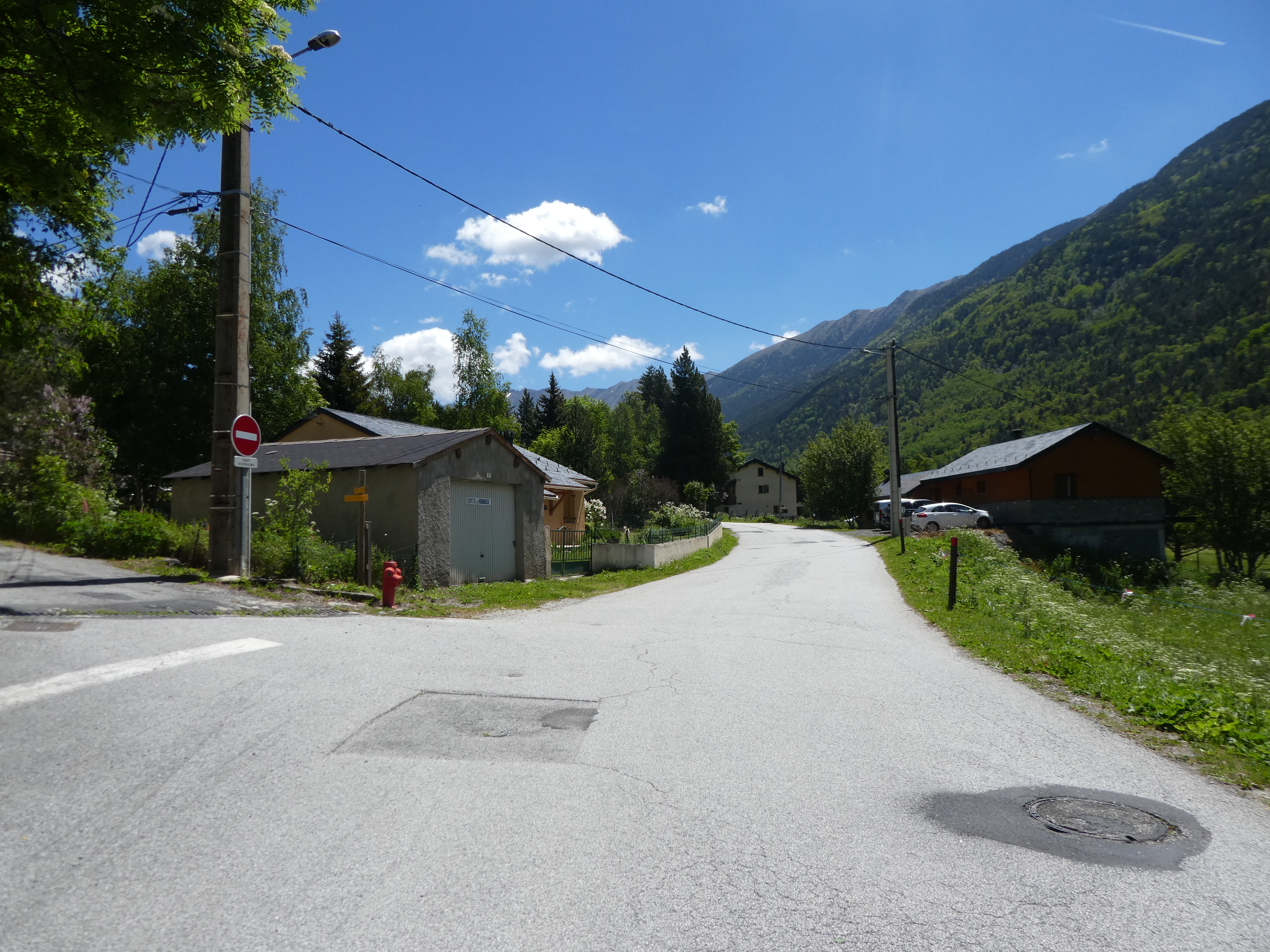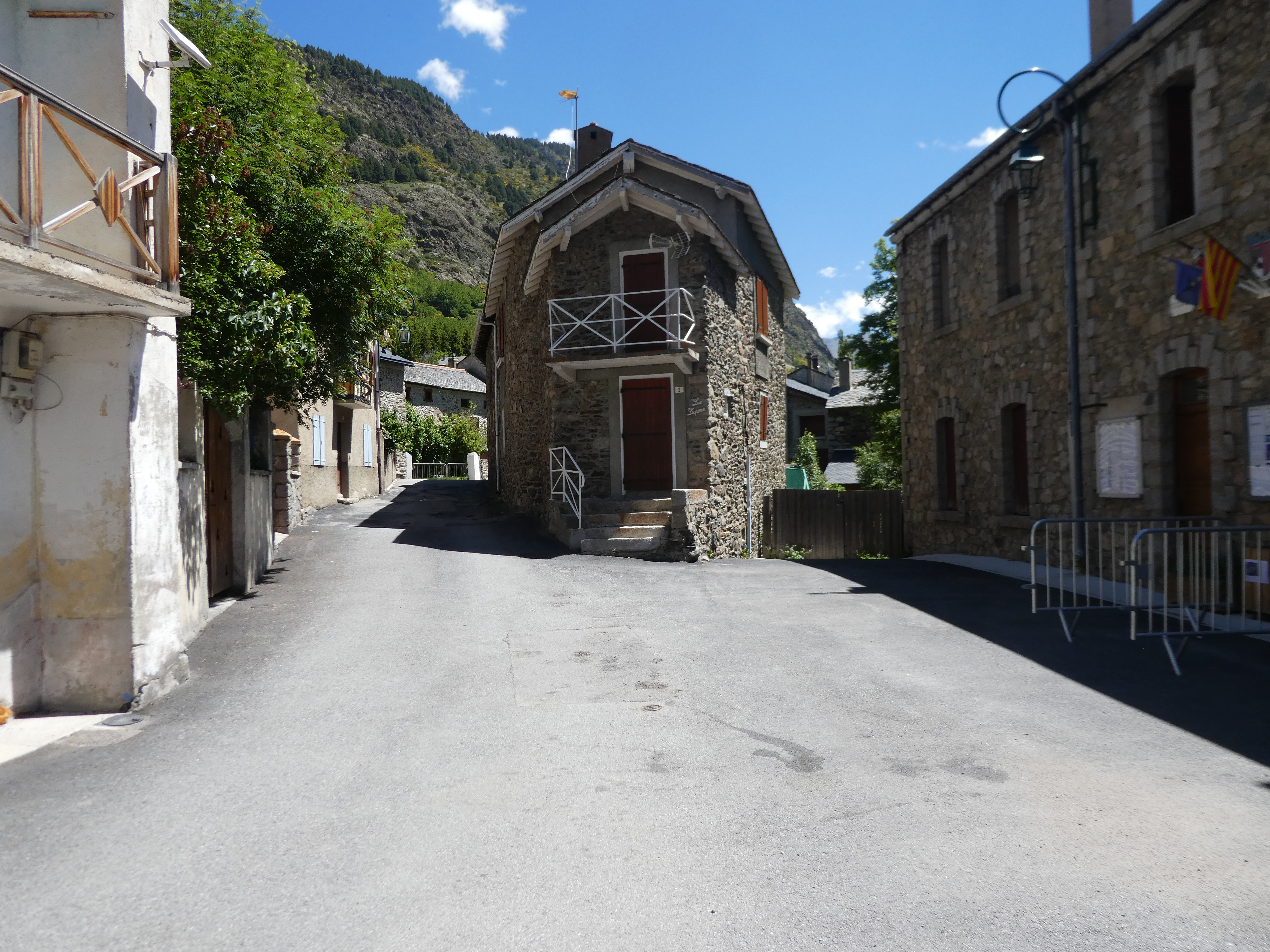 A cette intersection avec la rue menant à la mairie de Porté-Puymorens marquée par la présence d'un panneau directionnel (350 mètres après le lieu-dit "Gorges de la Fou"), suivre cette dernière montant sur la gauche direction Porté-Puymorens - Mairie, balisé en rouge et blanc
