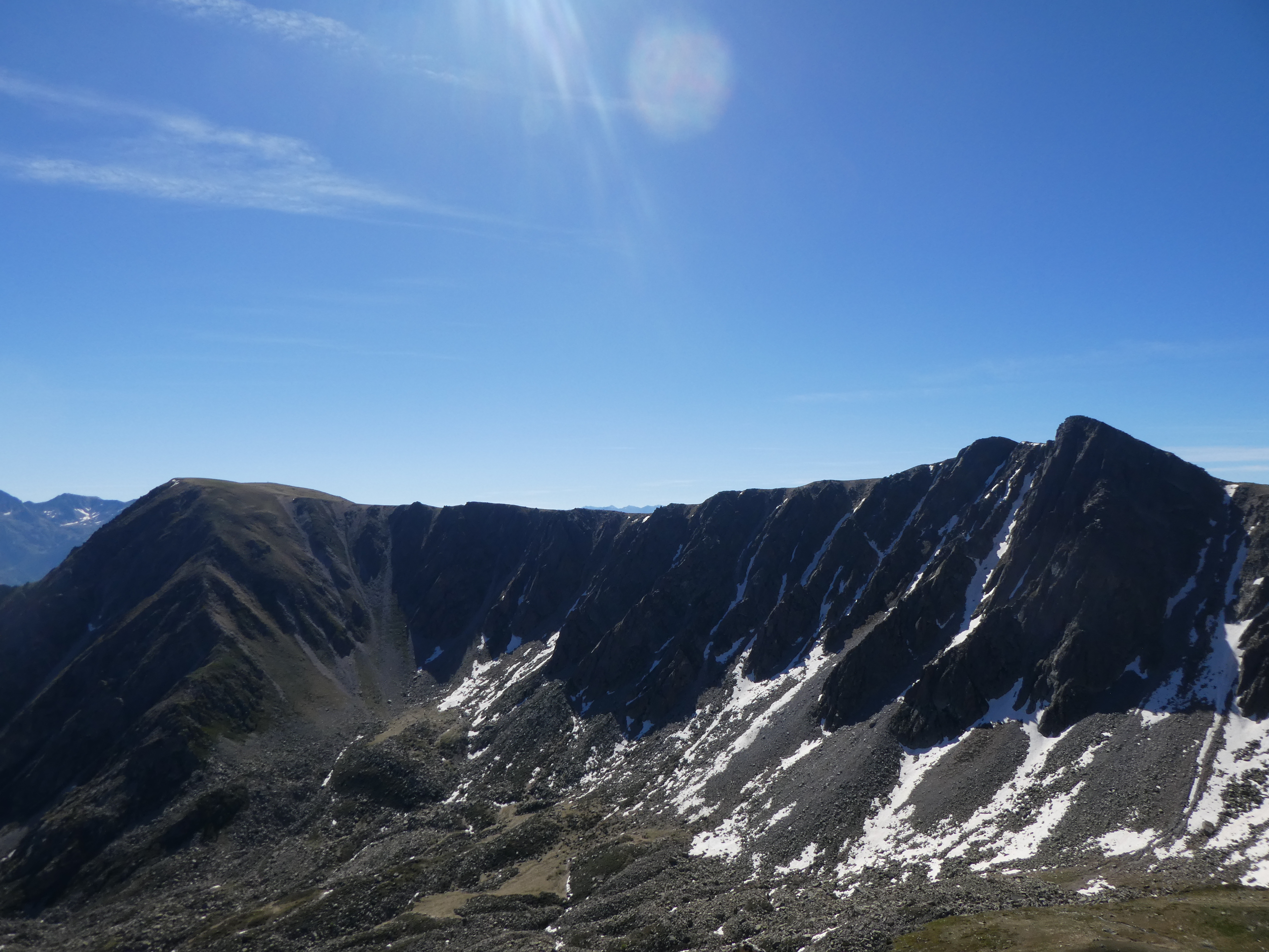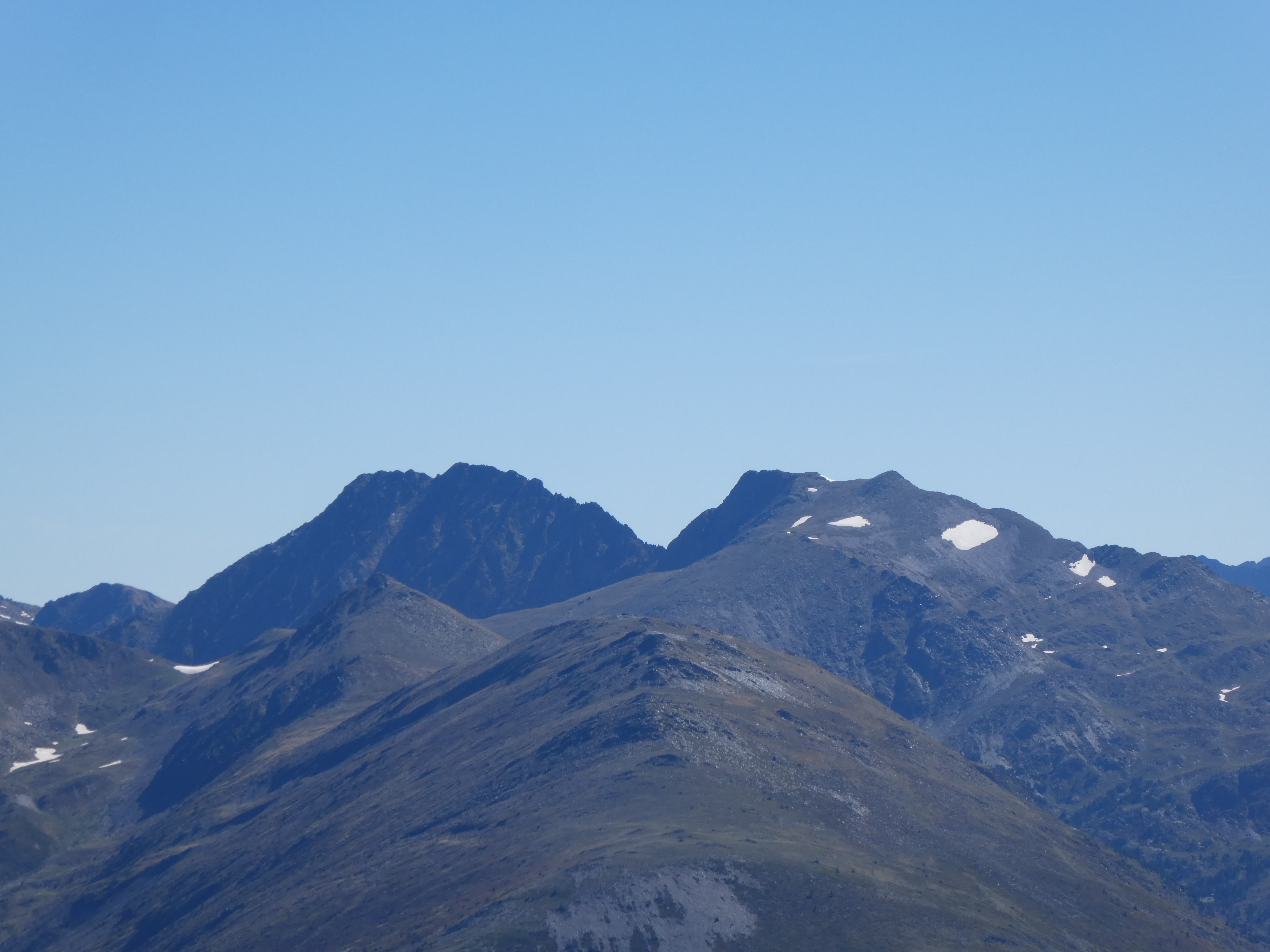 Zoom sur le Pic d'Ensagents (2852 m) à gauche et l'Alt de Griu (2879 m) à droite