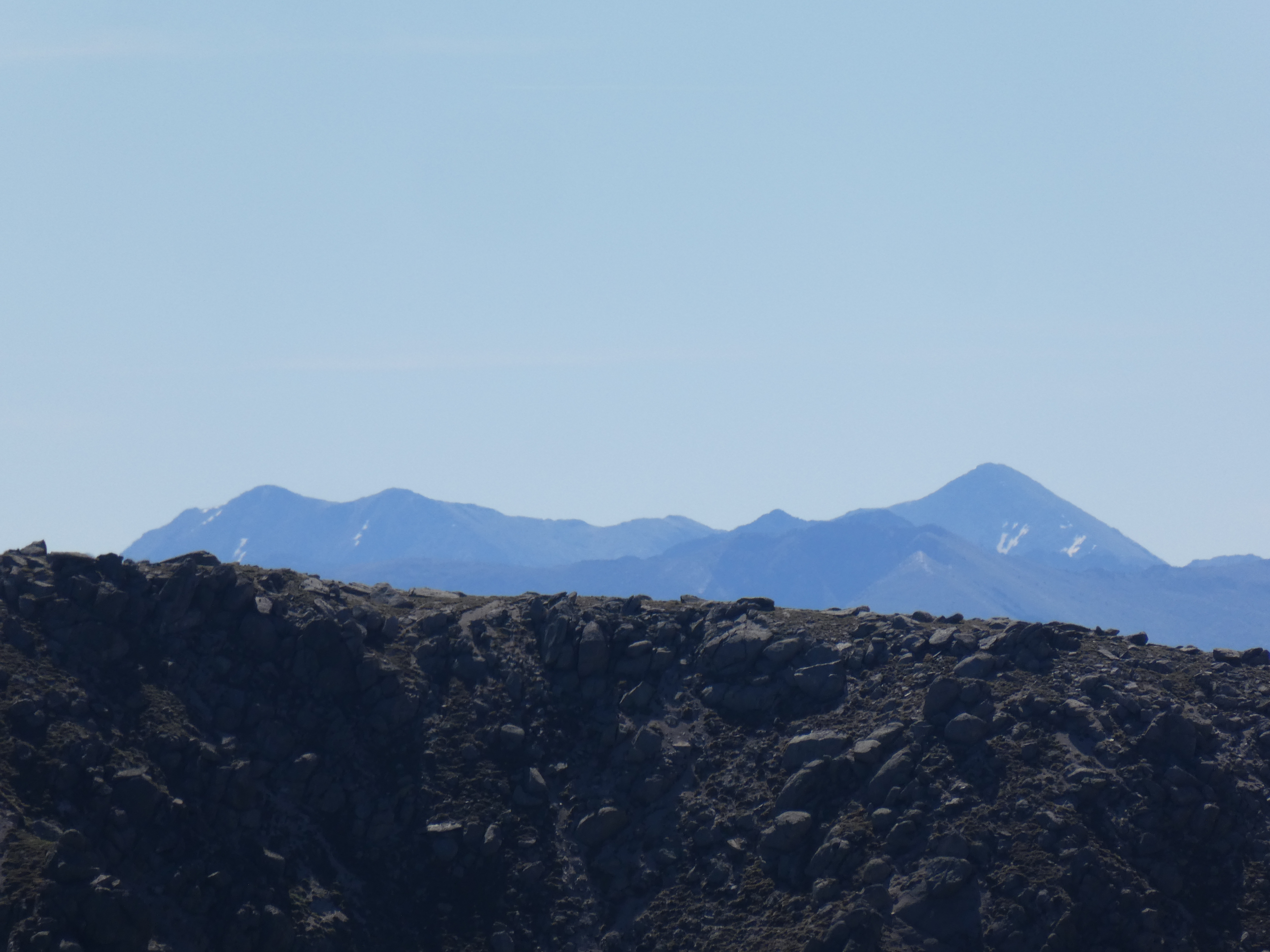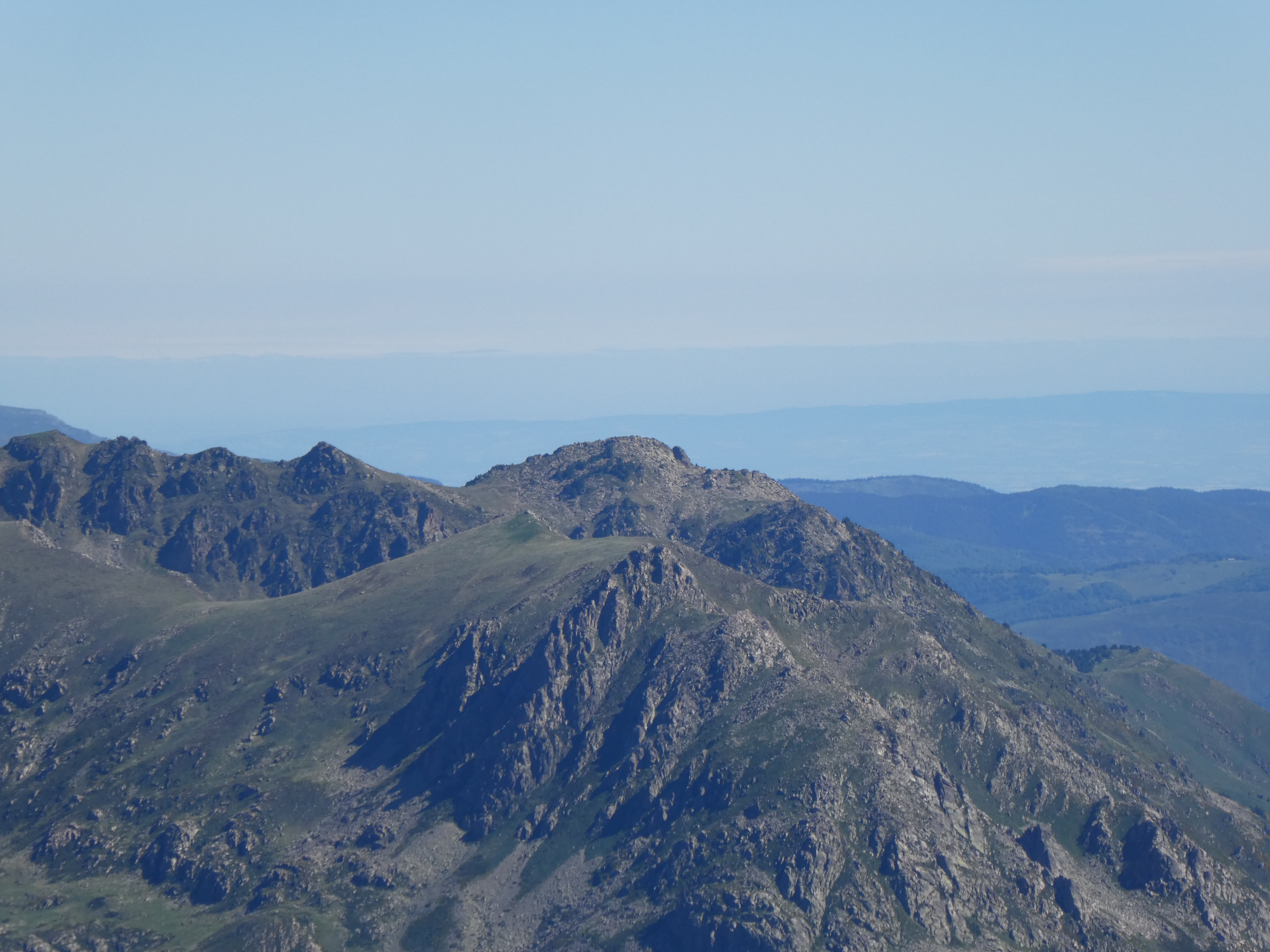 Zoom sur le sommet de Lescanié (1435 m) à gauche et le Roc de Quercourt (1820 m) à droite
