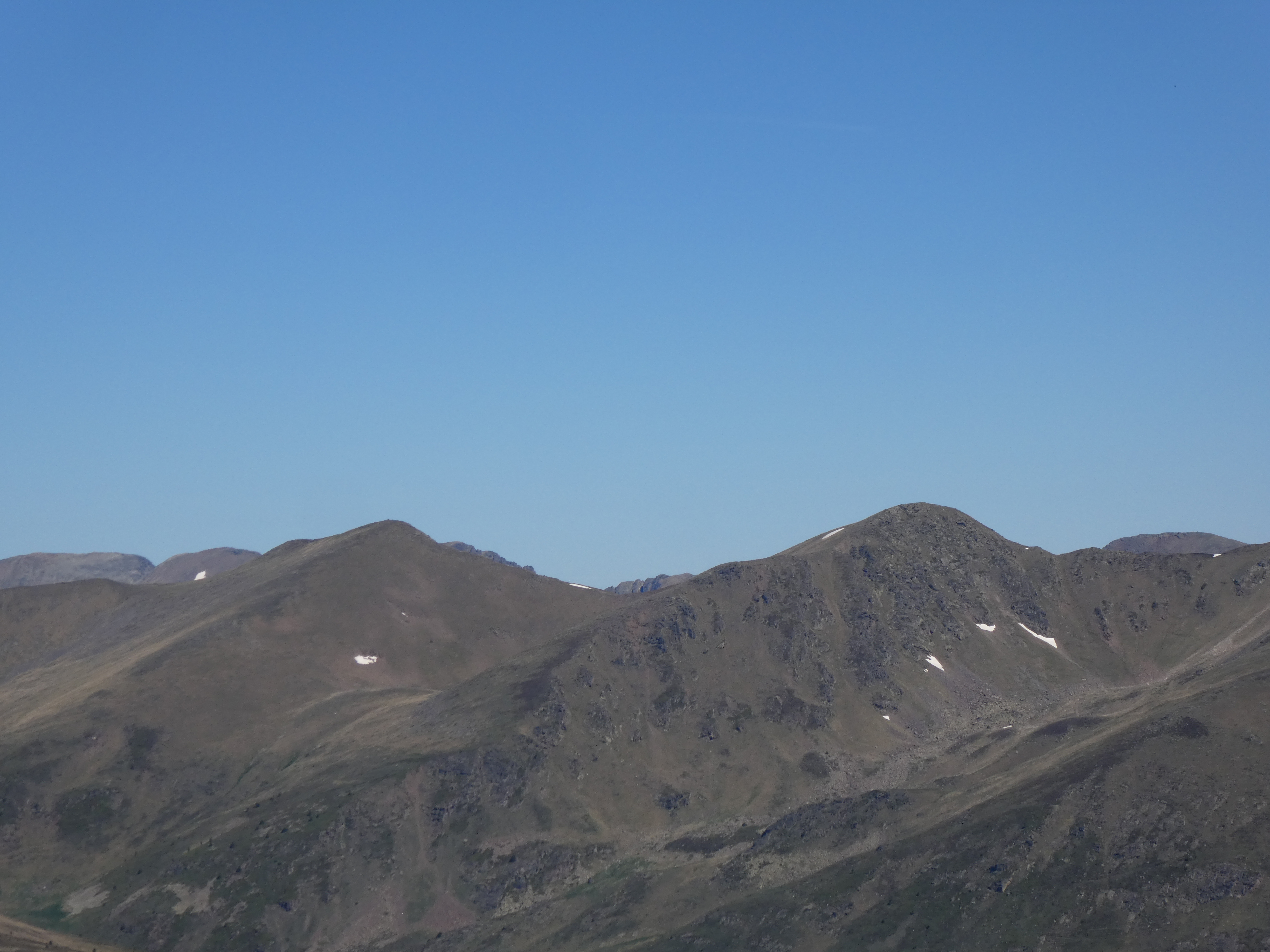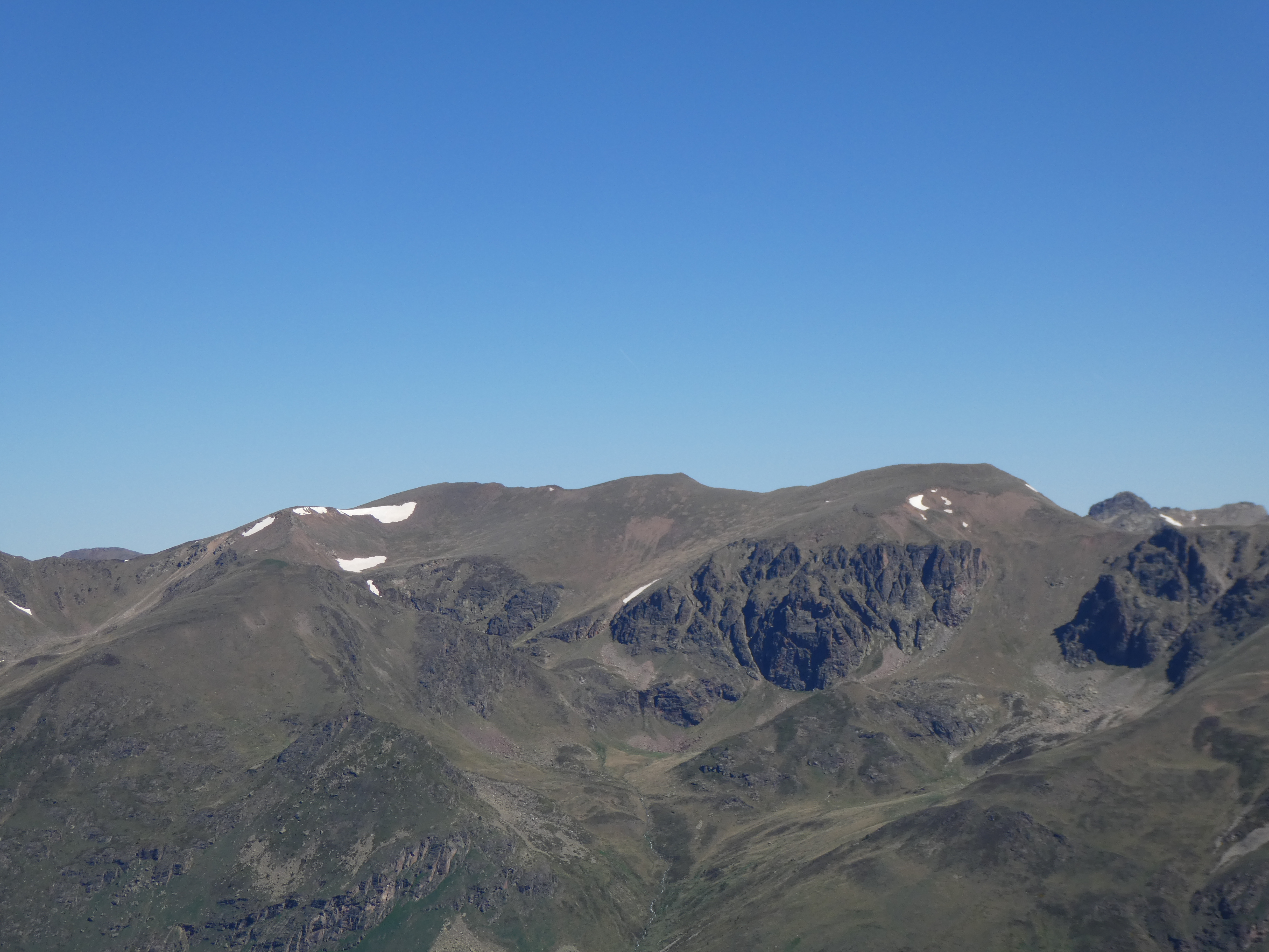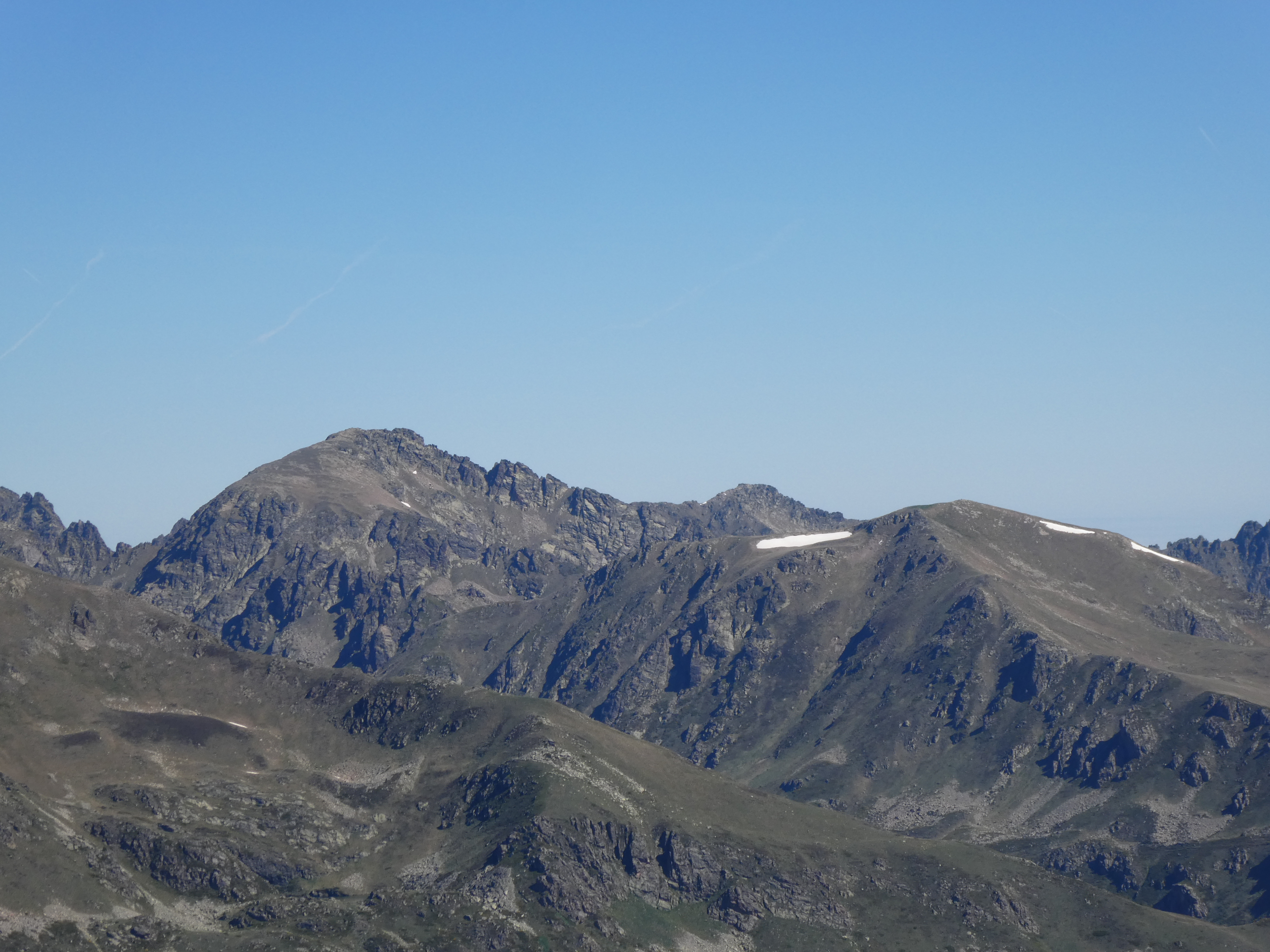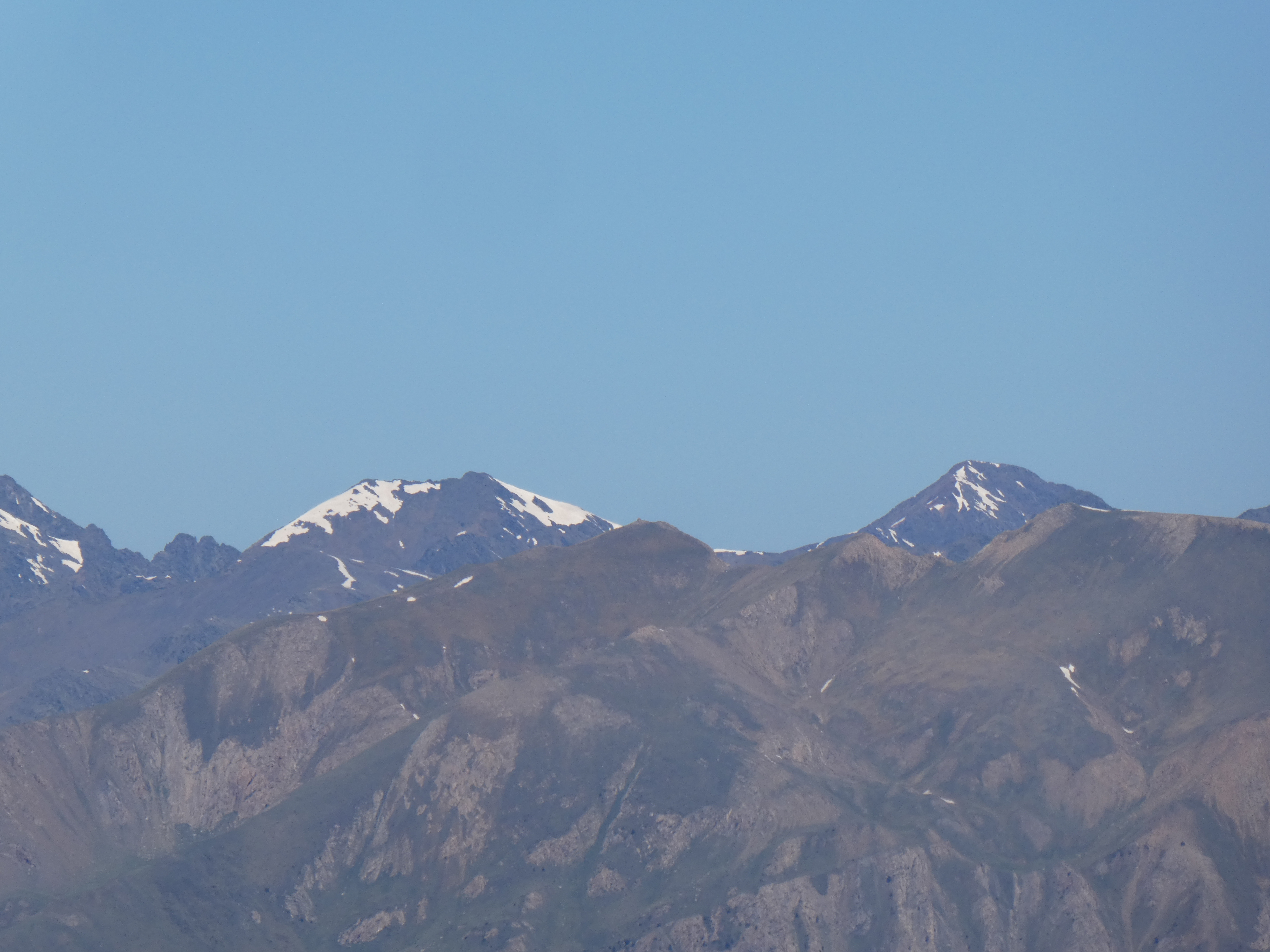 Zoom sur le Puig Pedrós (2842 m) à gauche et le Puig de la Coma d'Or (2826 m) à droite