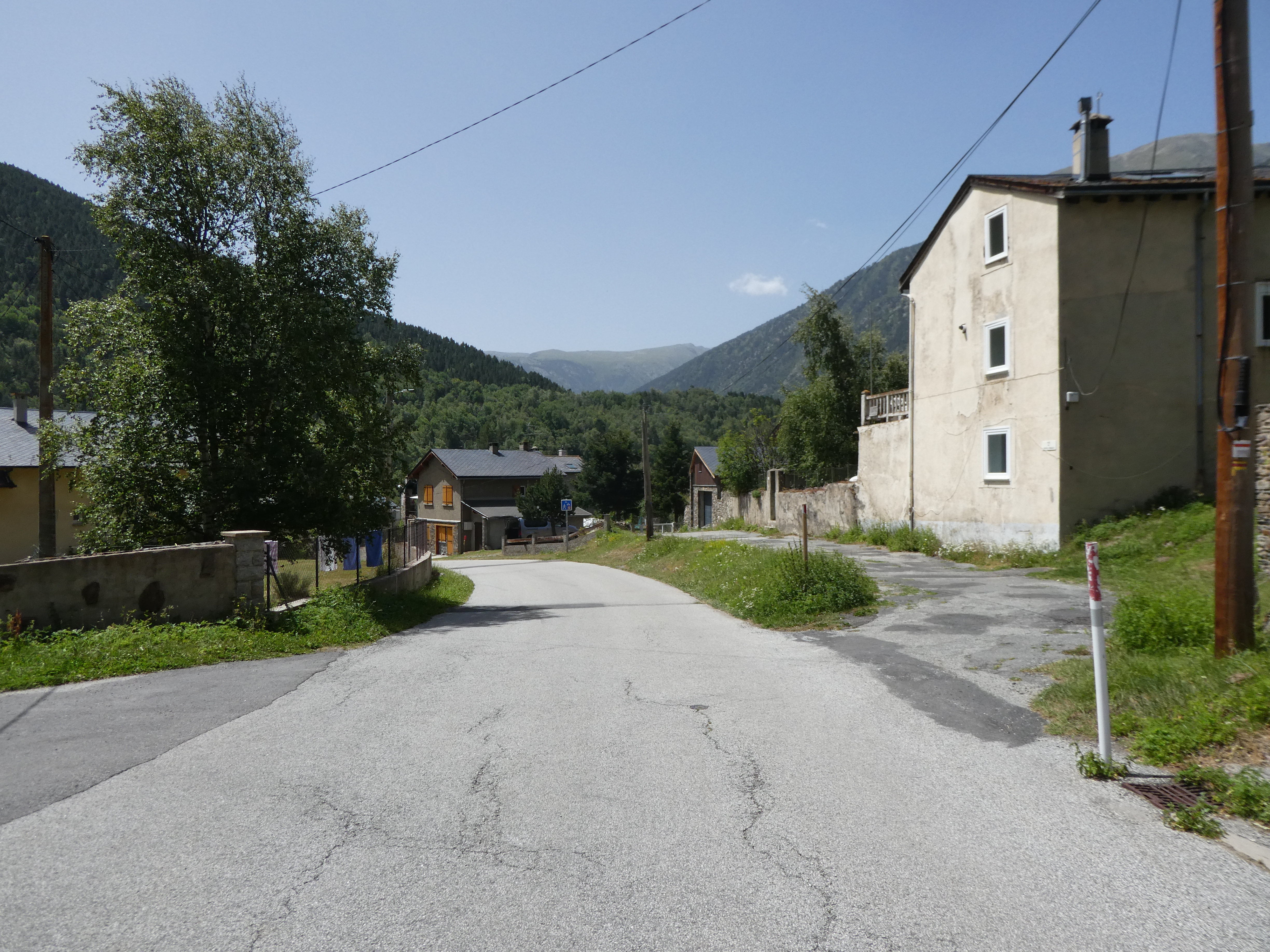 A cette intersection où le GR7 se sépare du GRP Tour du Carlit (750 mètres après le précédent croisement mentionné), suivre la rue partant légèrement sur la droite direction Porté-Puymorens, balisé en rouge et blanc