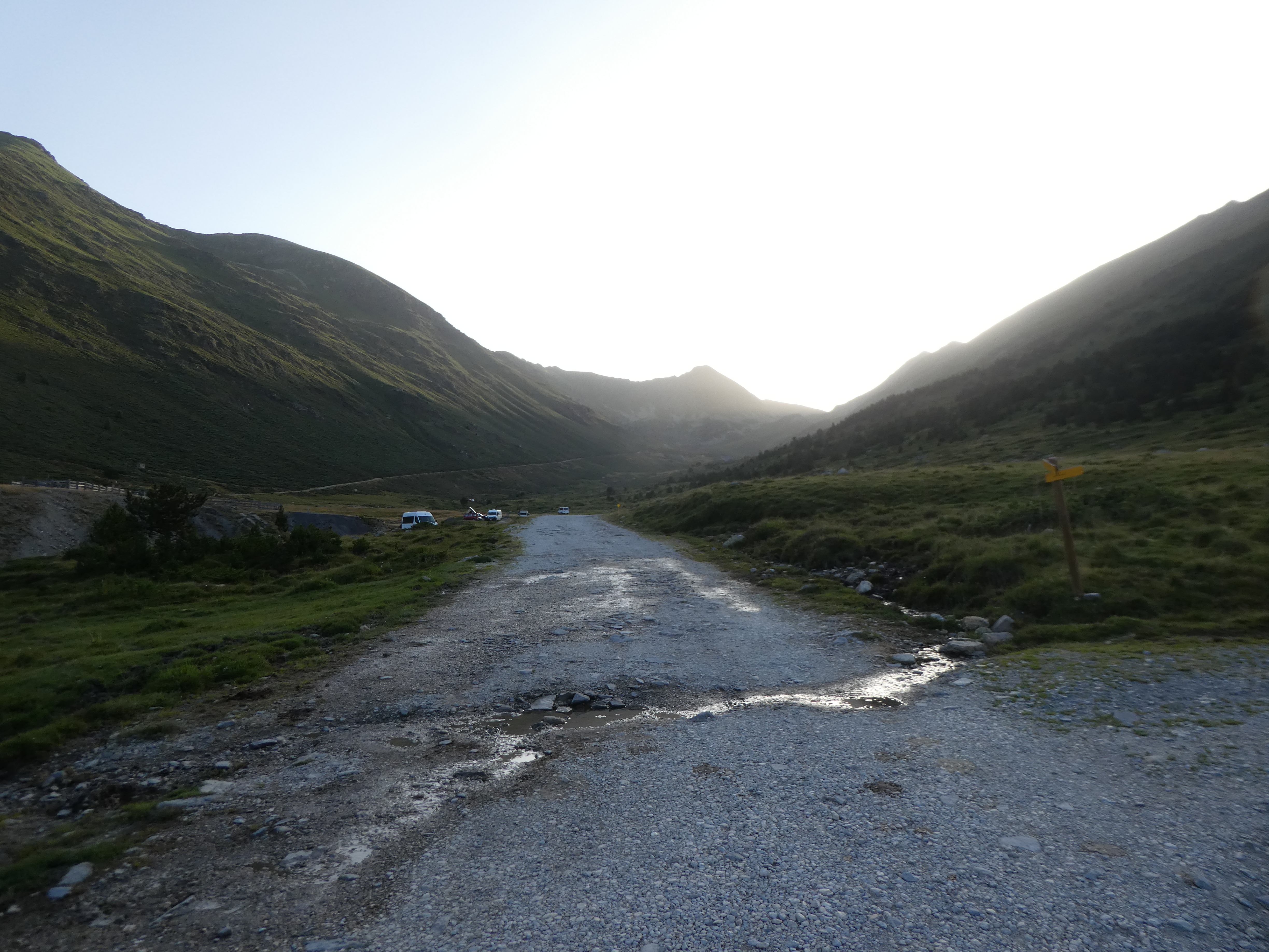 A ce croisement avec la N320 (50 mètres après le Col de Puymorens), suivre la piste partant tout droit direction Portella de Lanós, balisé en rouge et blanc, et en jaune