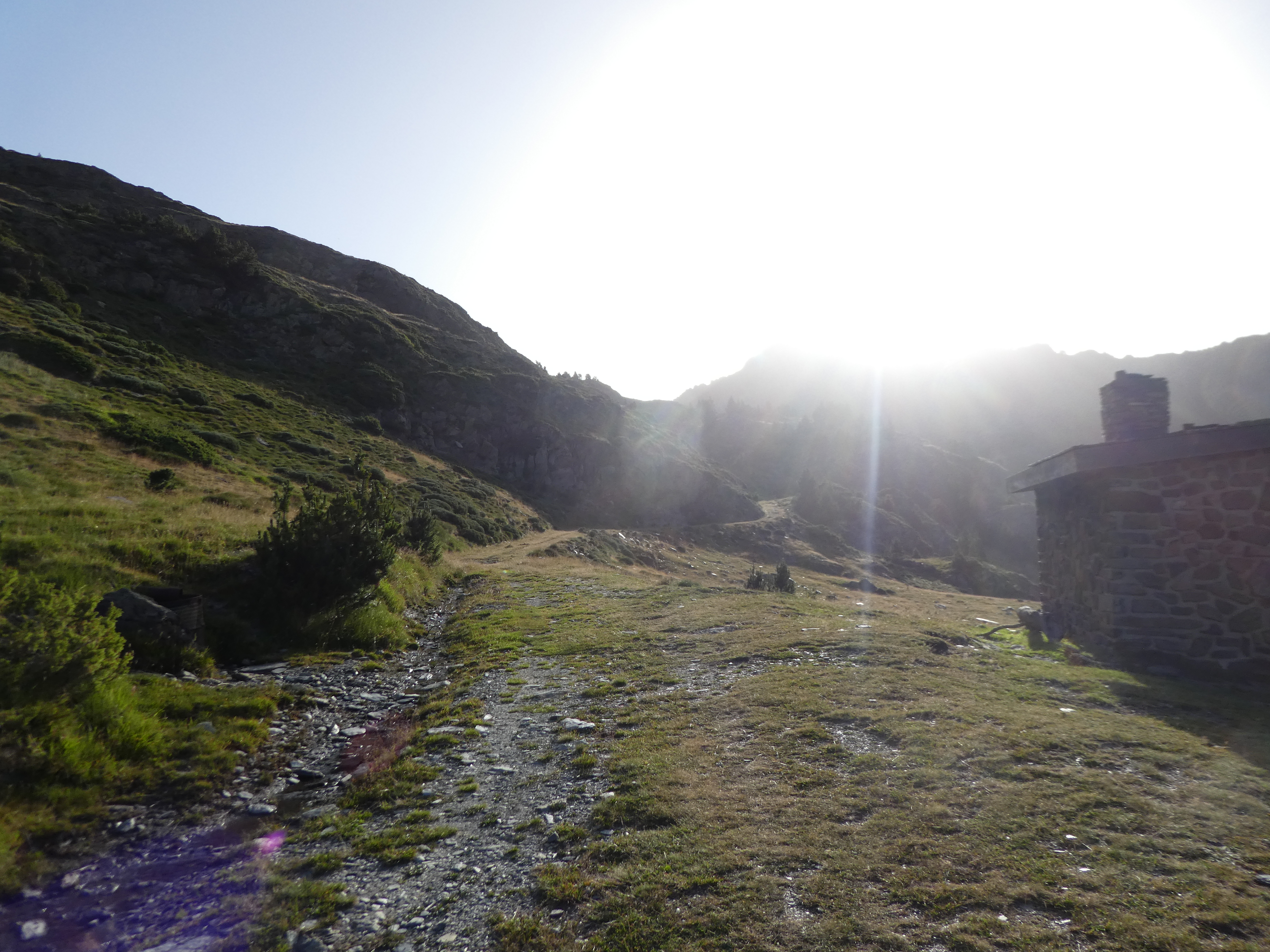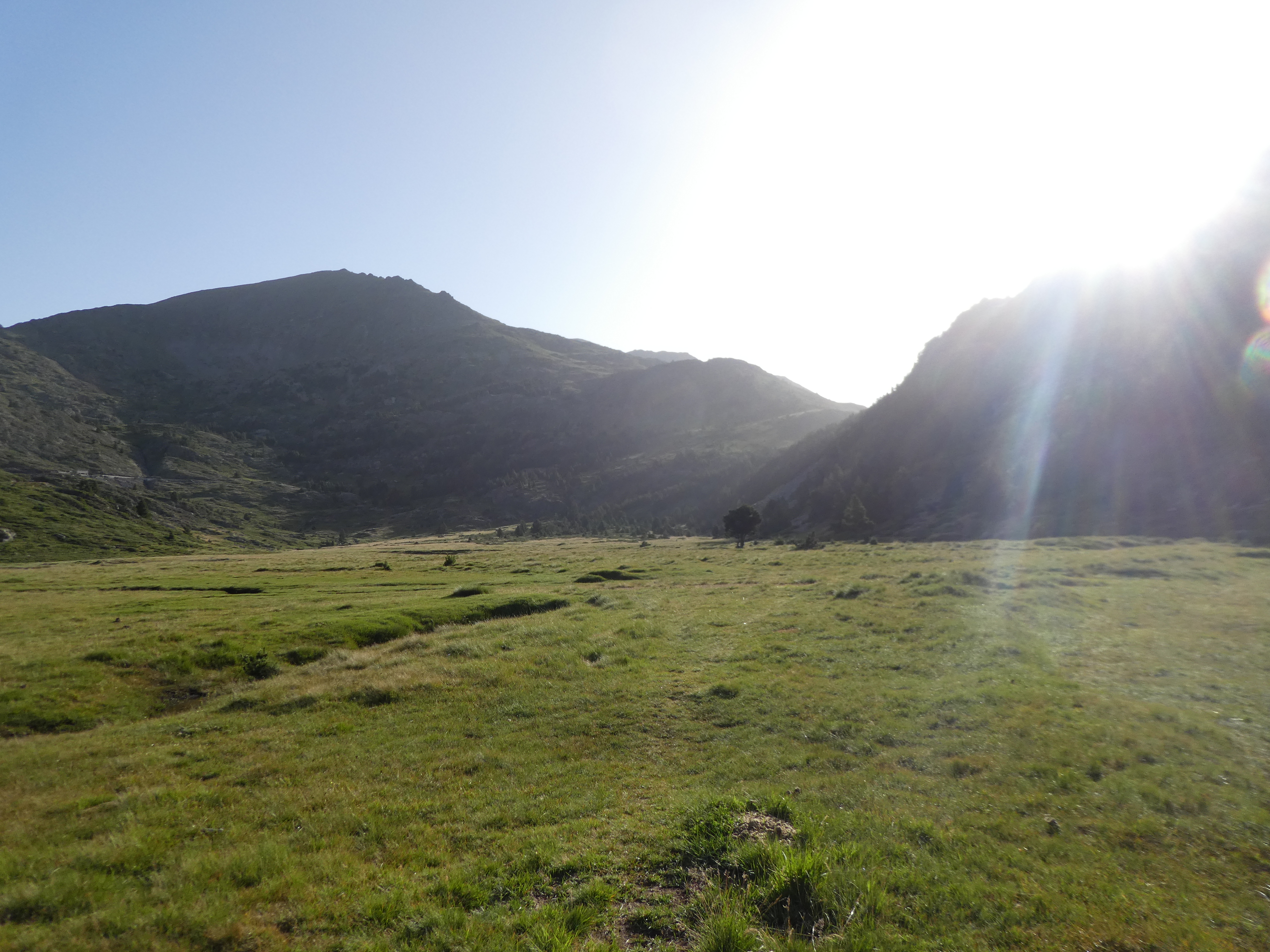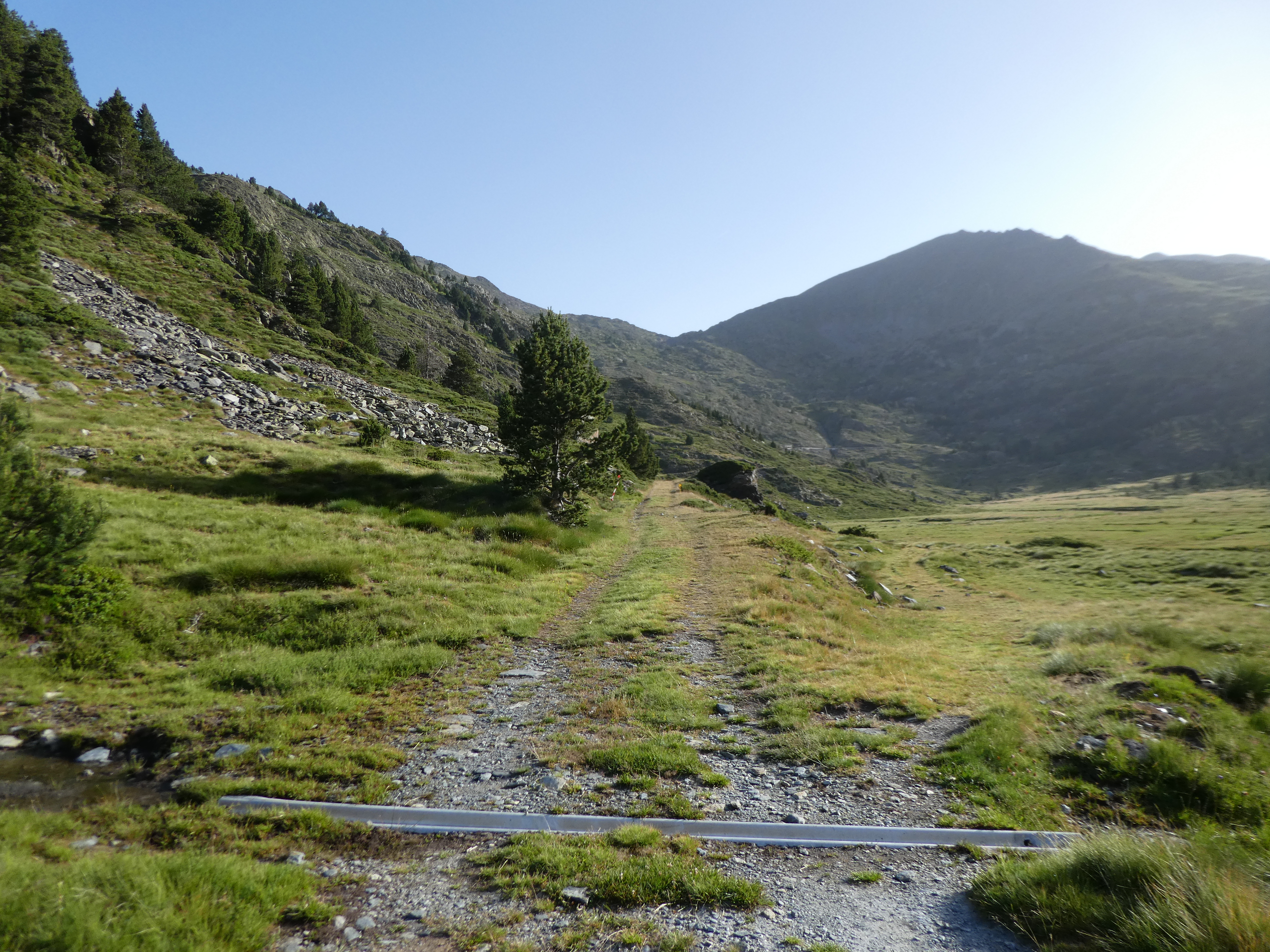 Cabane du Cortal Rossó (2097 m) : suivre le chemin partant tout droit direction Portella de Lanós, balisé sporadiquement en jaune et en bleu