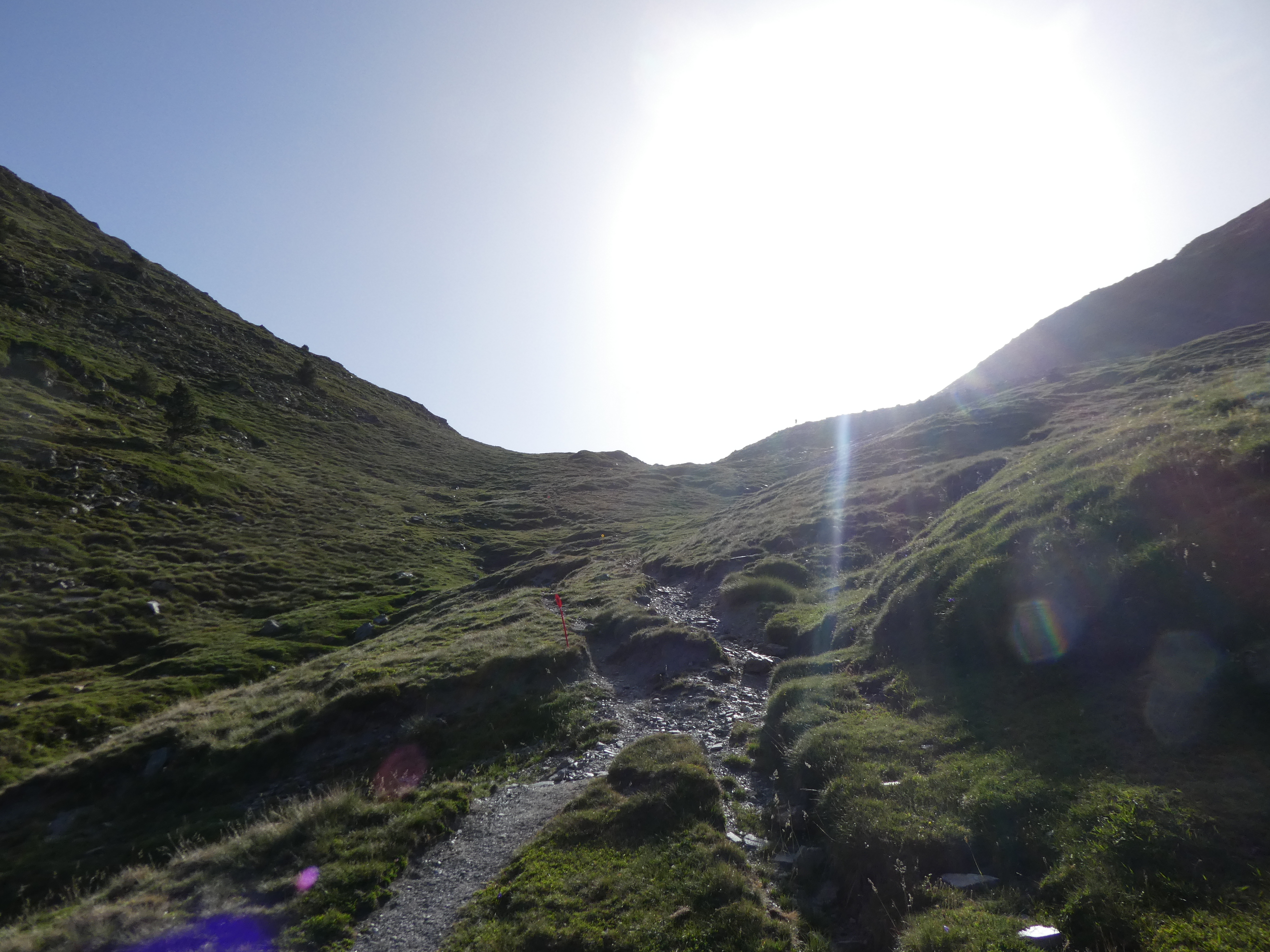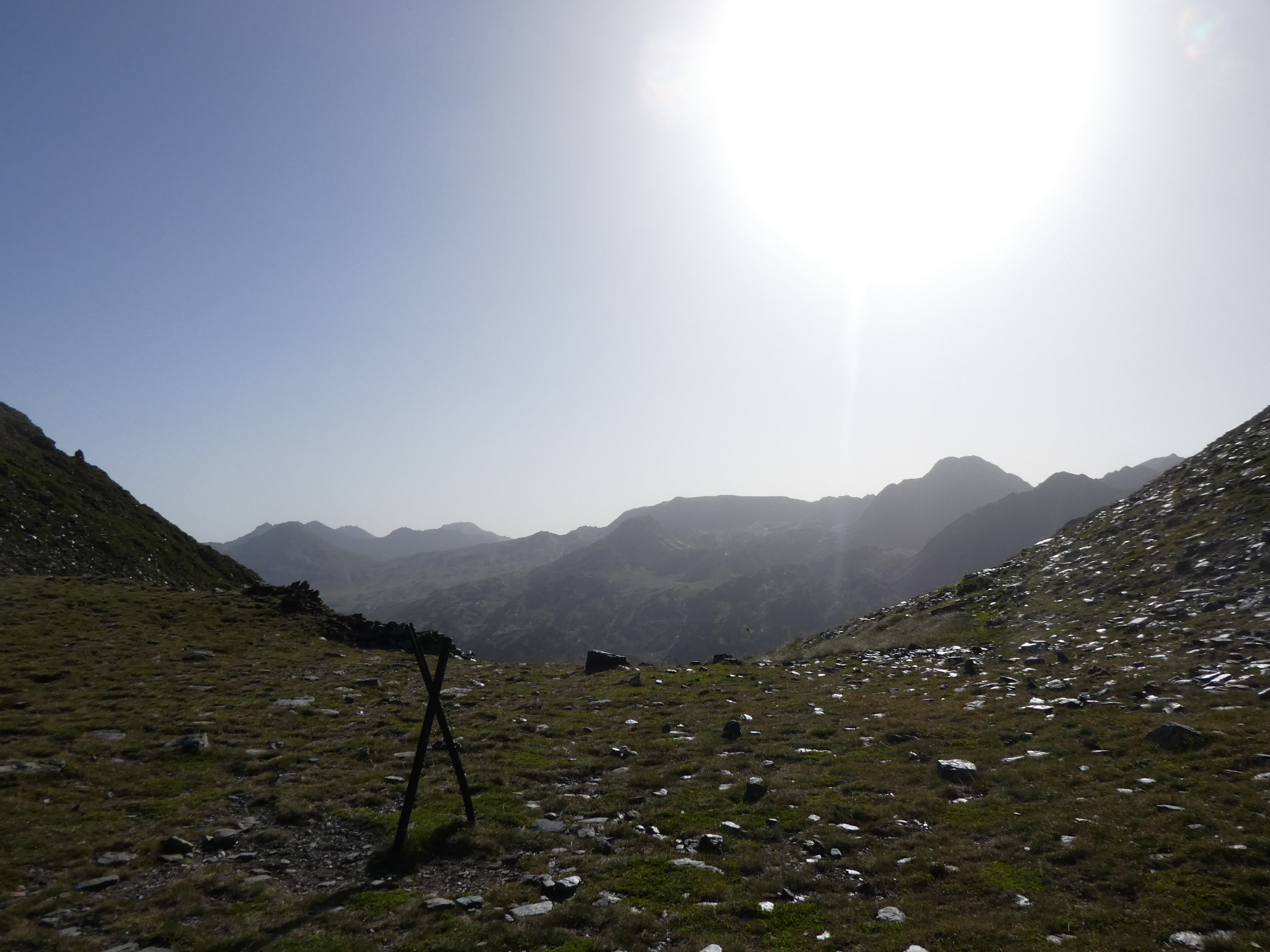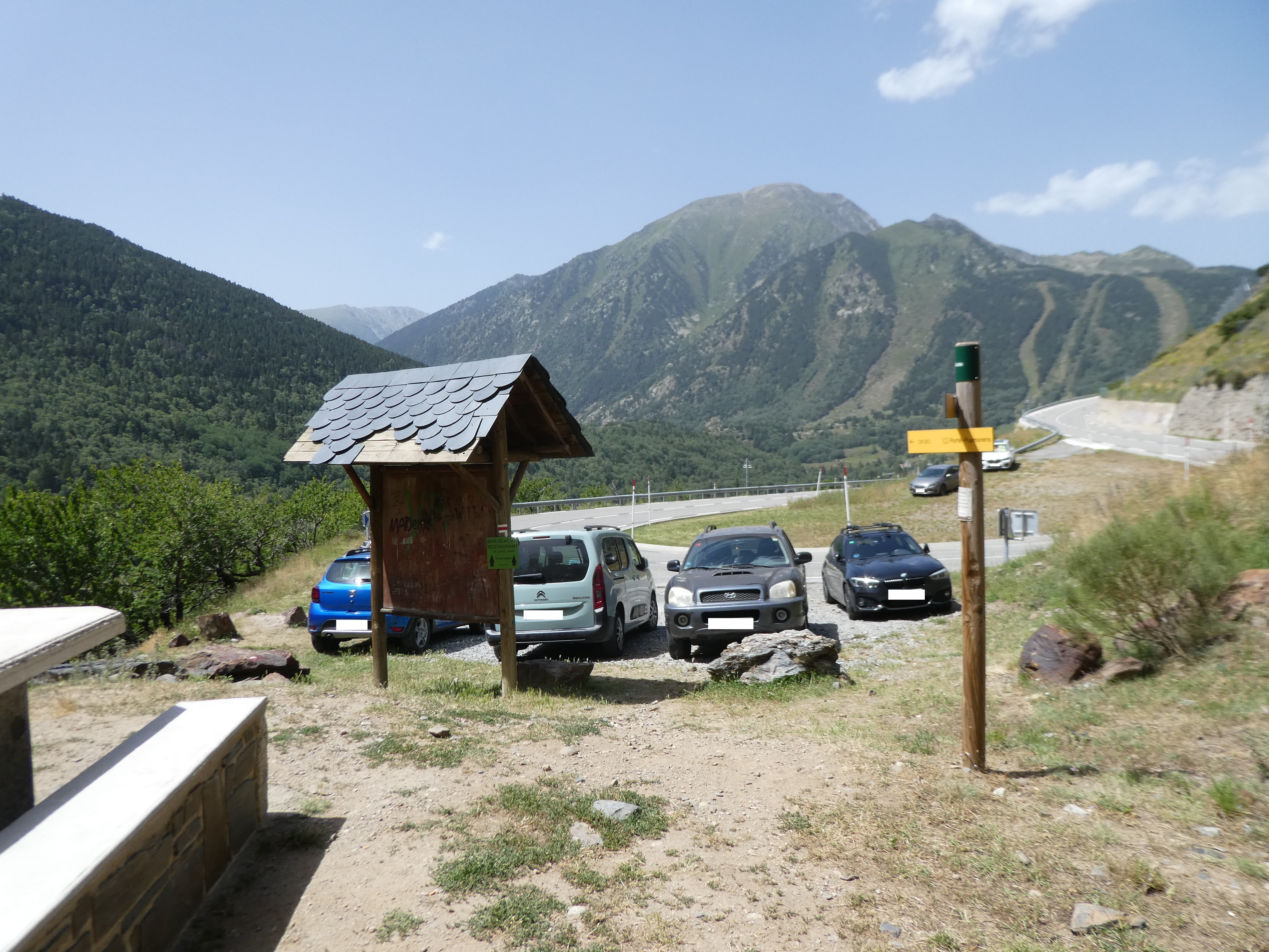 Col de Puymorens (1914 m) : traverser le parking tout droit direction Portella de Lanós, balisé en rouge et blanc, et en jaune dorénavant