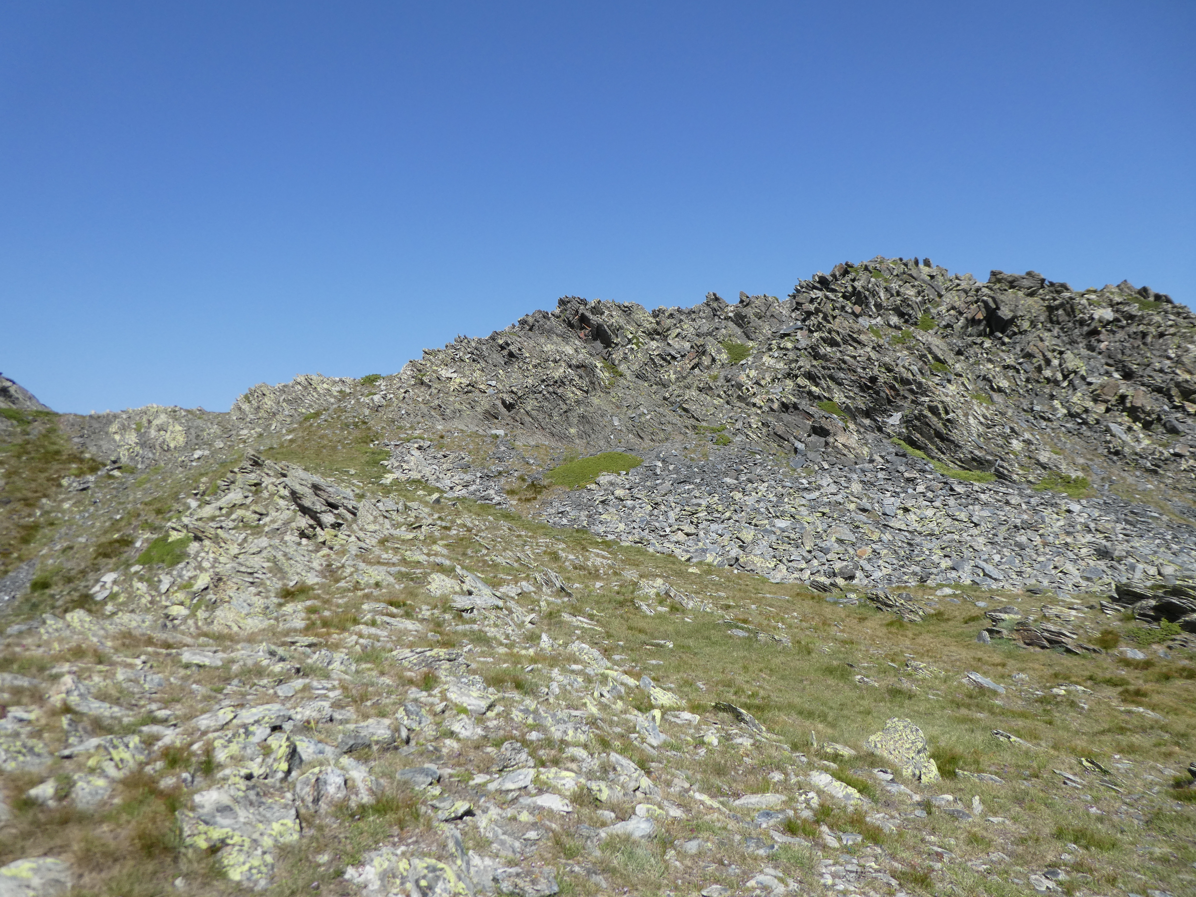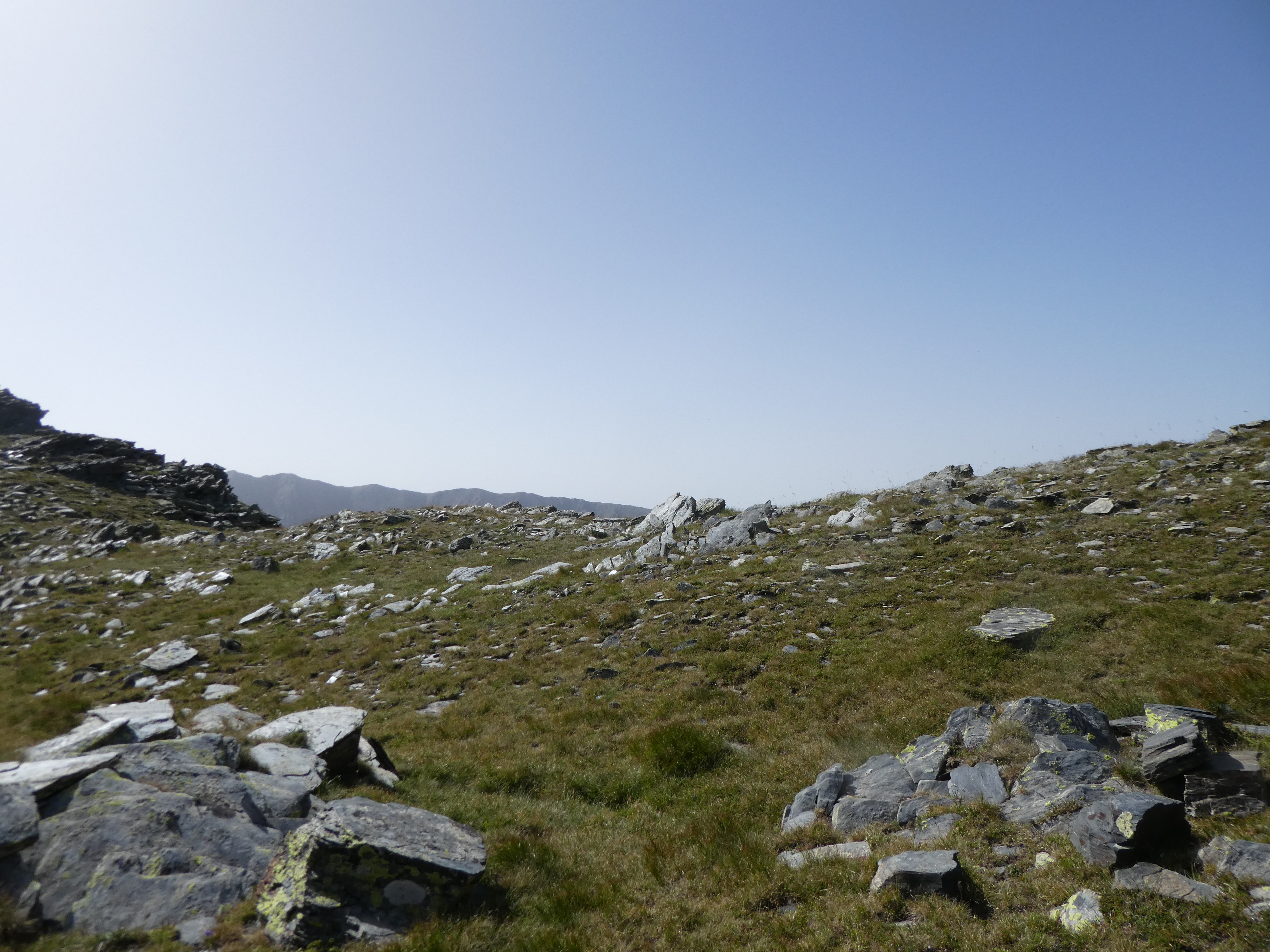 Portella de Lanós (2468 m) : montéer à vue sur la droite direction Puig de Font Viva, aucun balisage dorénavant (présence de quelques cairns sur la montée)