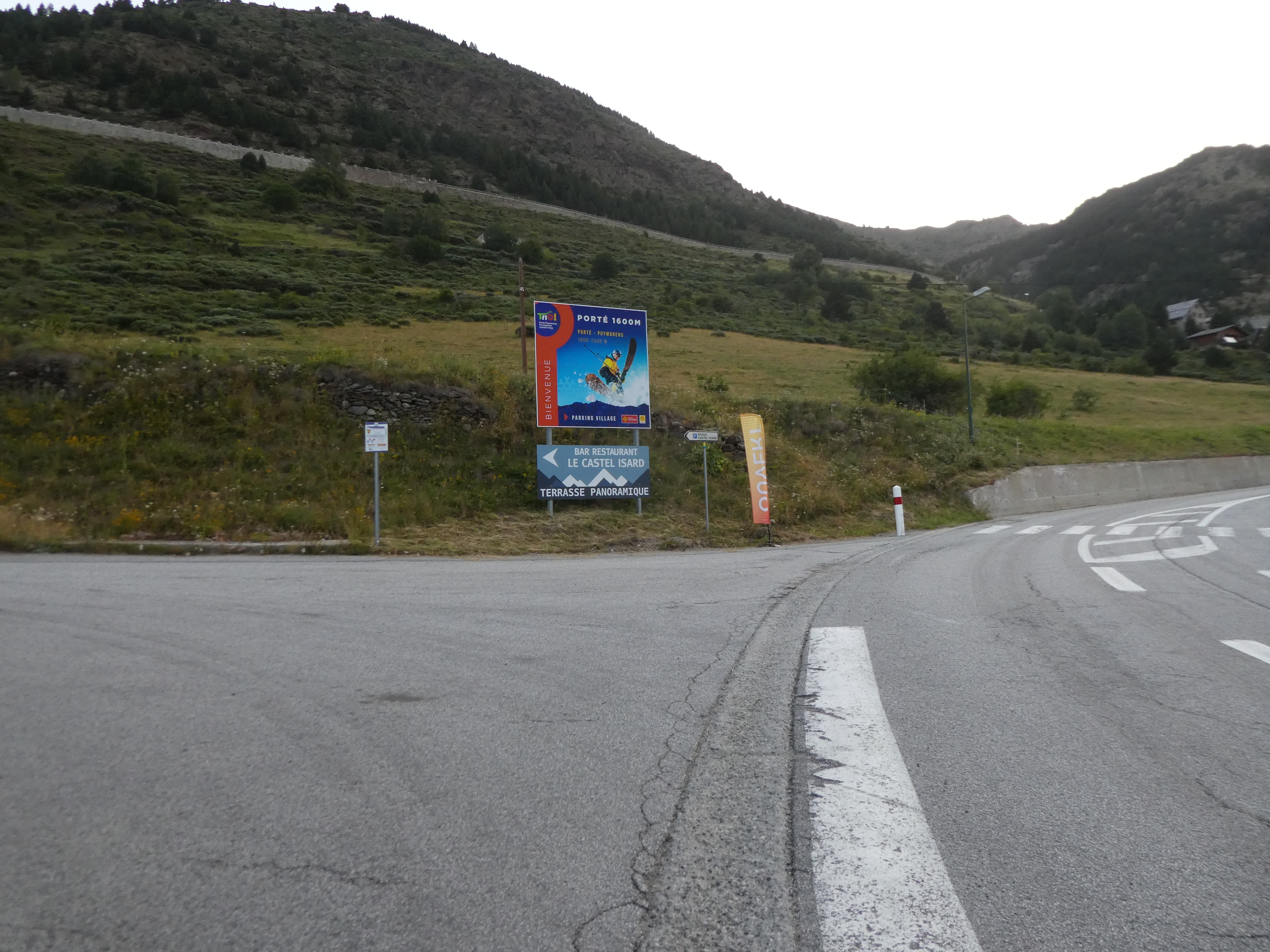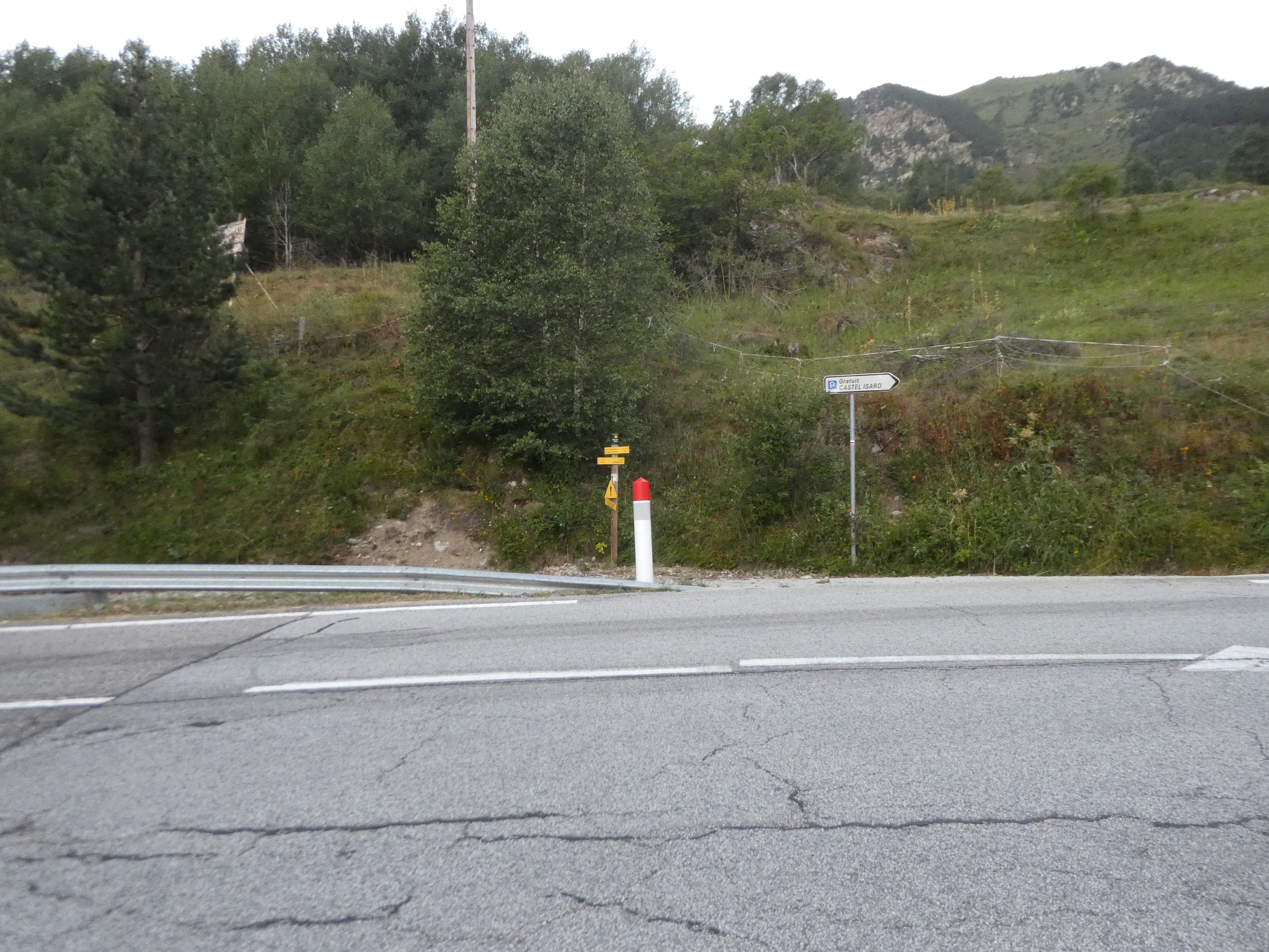 A ce croisement situé à l'entrée du parking du Castel Isard marqué par la présence d'un panneau directionnel (400 mètres après le lieu-dit "Gorges de la Fou"), suivre la route partant sur la gauche puis le chemin montant de biais sur la droite 25 mètres plus loin direction Col du Puymorens (par la Tour Cerdane), balisé en jaune dorénavant