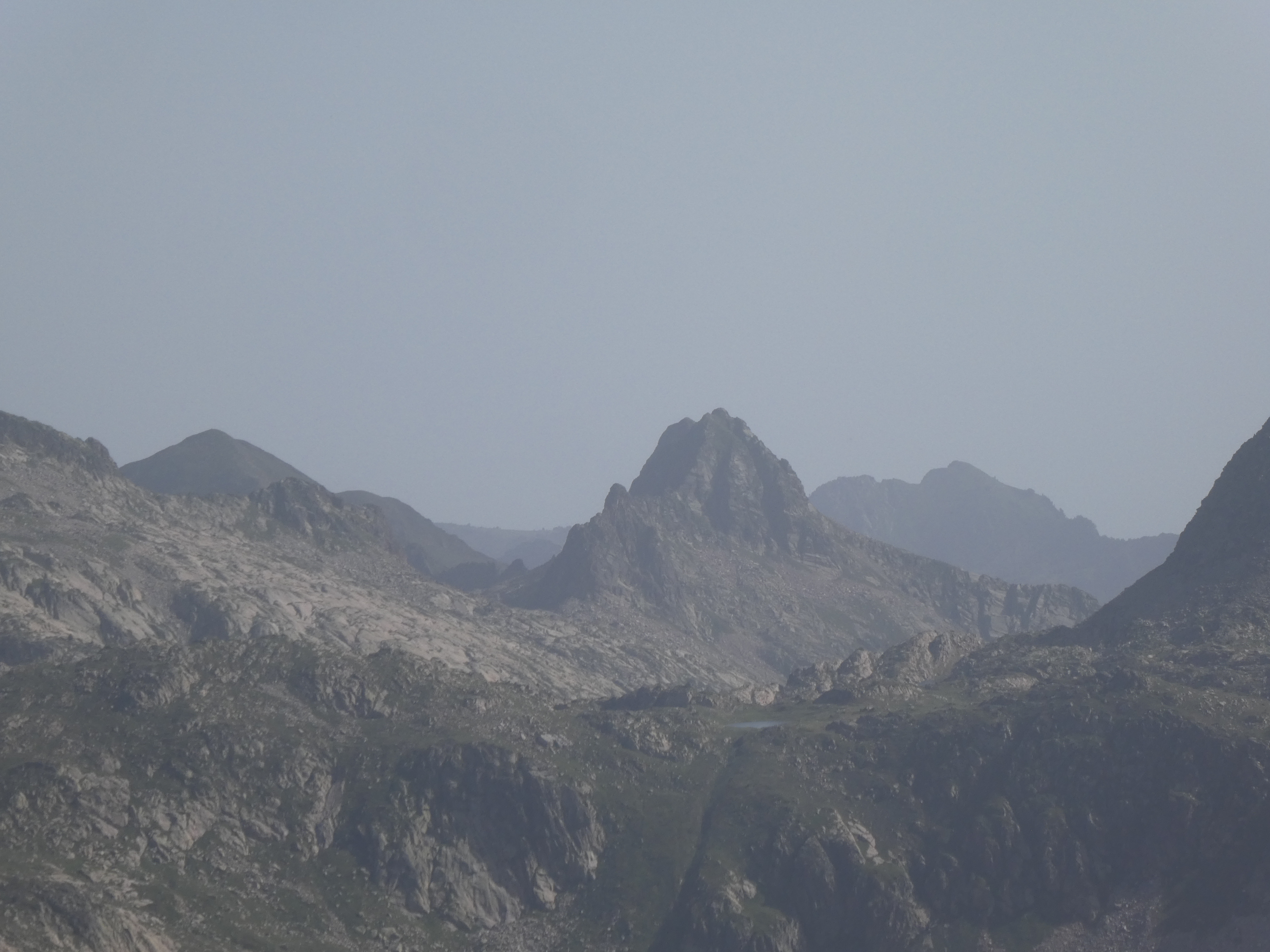 Zoom sur le Pic de Madides (2663) à gauche, le Pic d'Esquine d'Ase (2706 m) au centre et le Puig de Lanós (2660 m) à droite