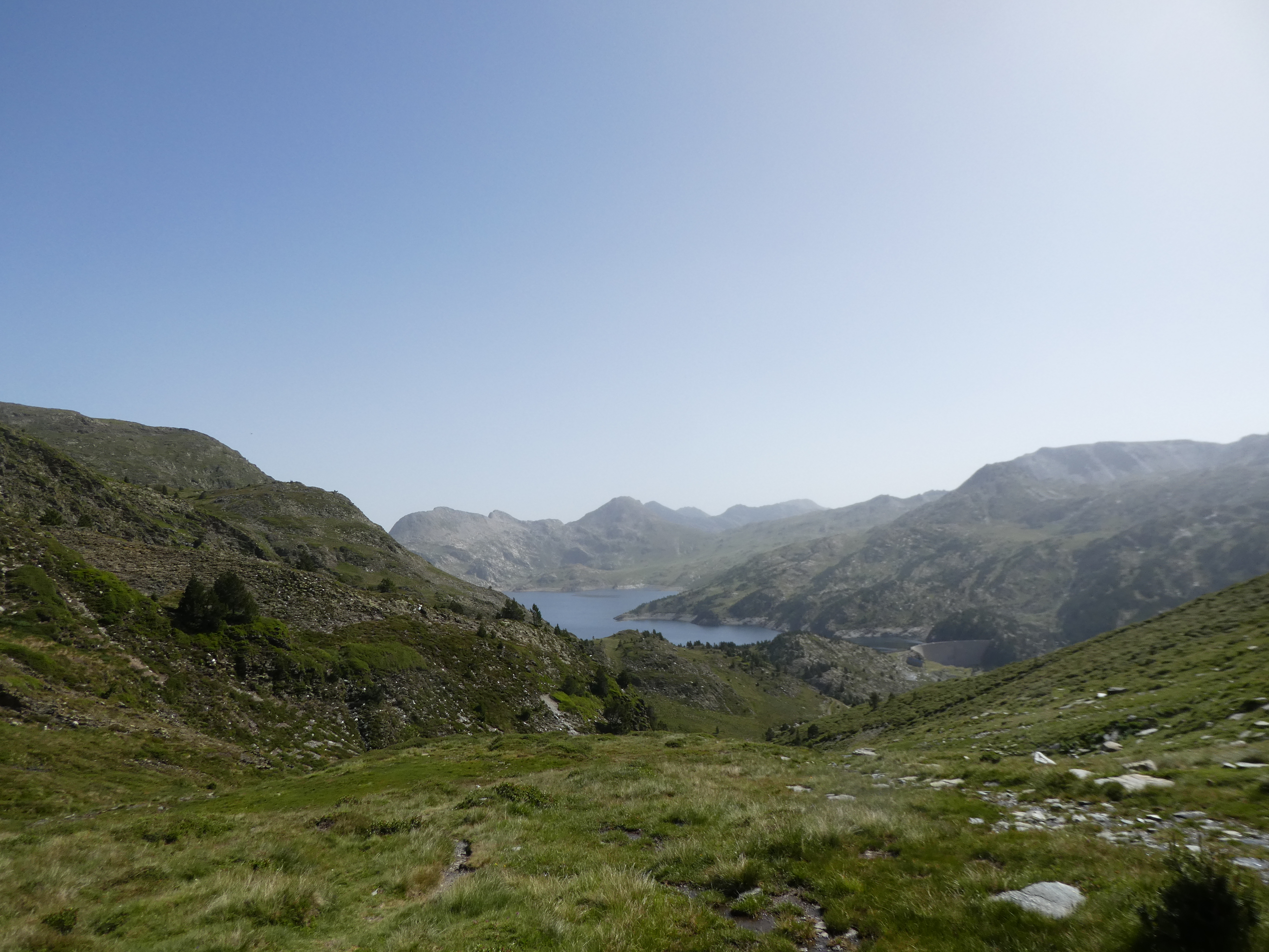 Barrage du Lanós (2151 m) : suivre le chemin partant sur la droite direction Porté-Puymorens, balisé en rouge et blanc, et sporadiquement en jaune