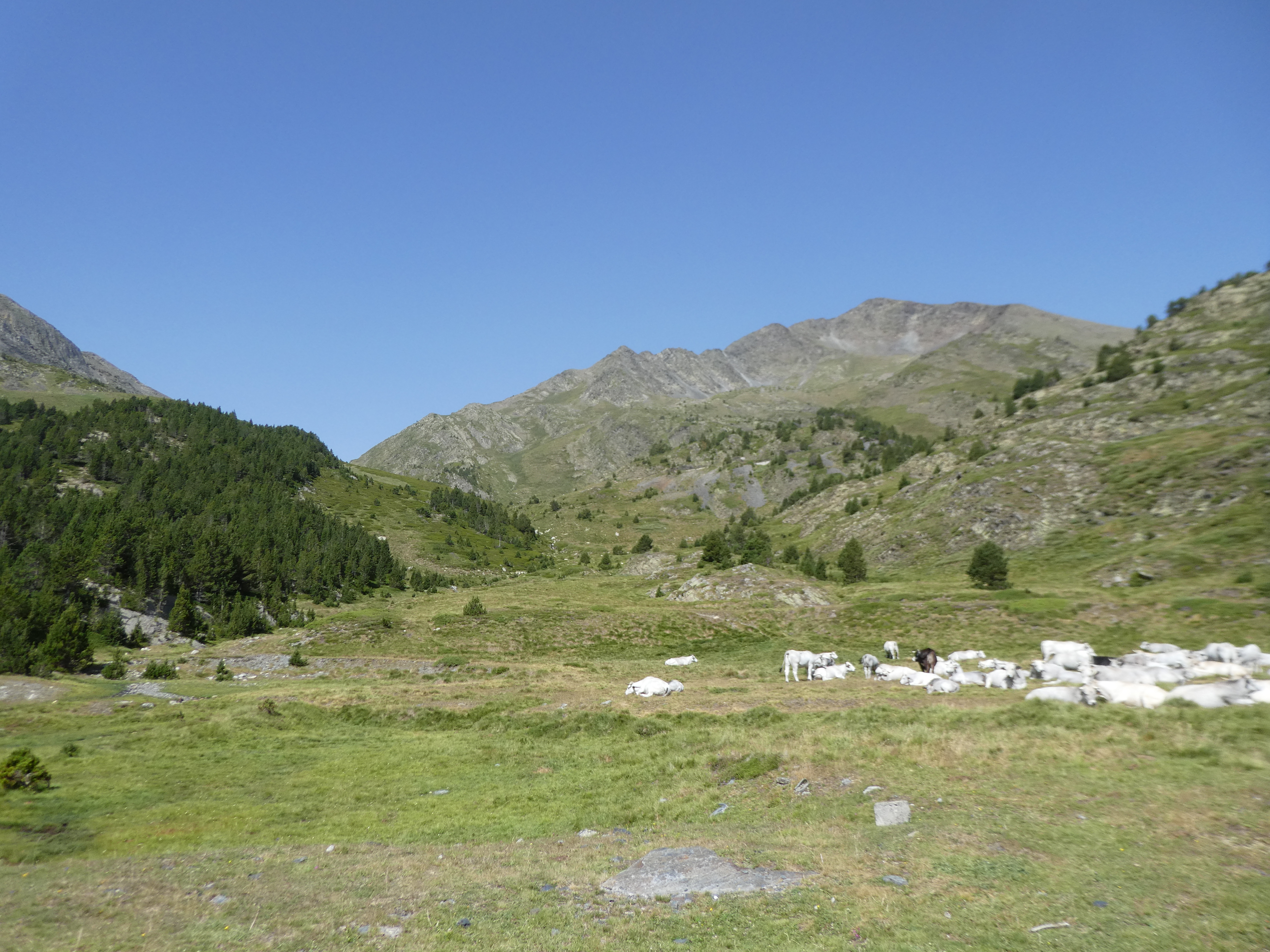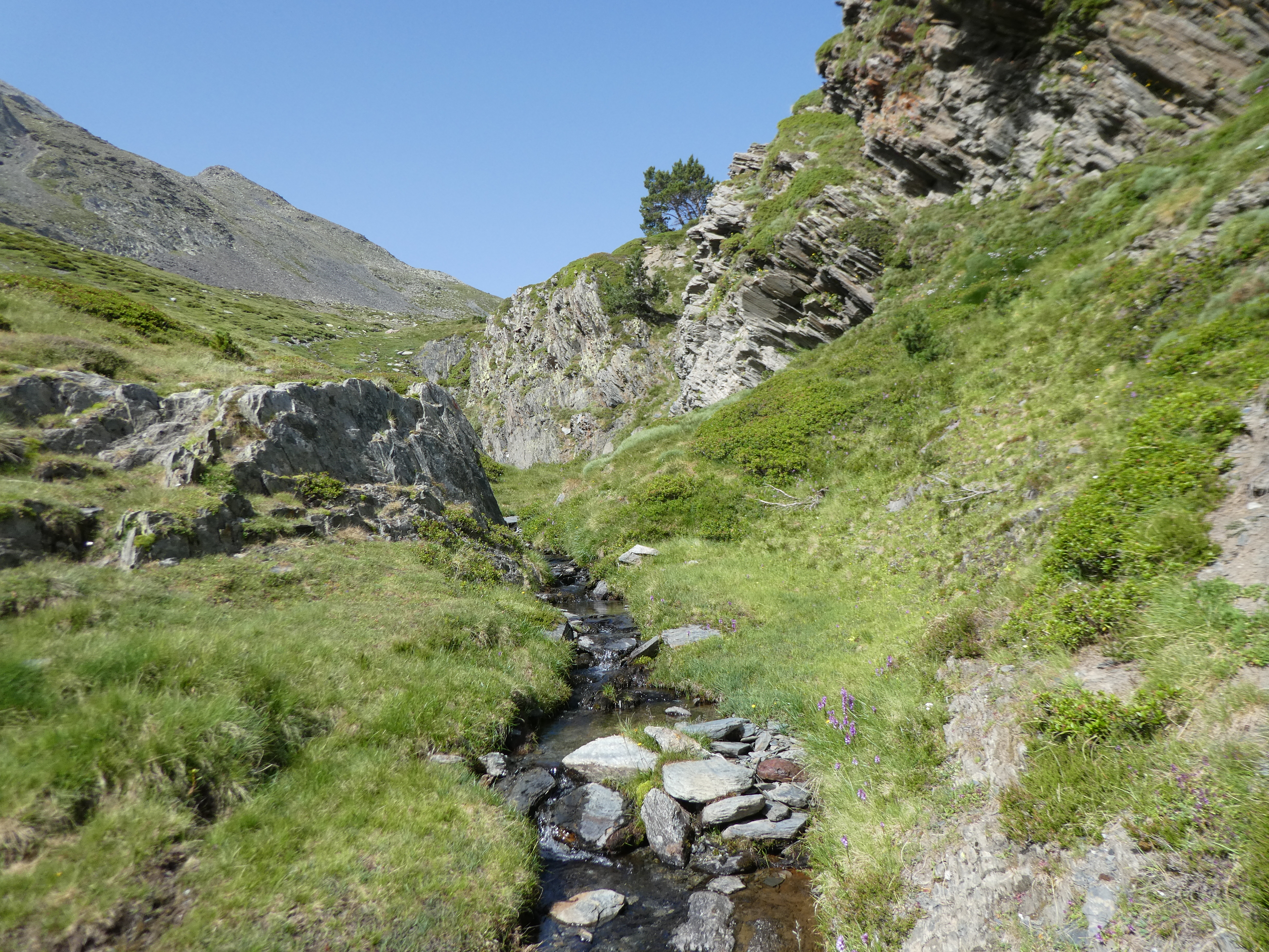 Camps de la Costa (1681 m) : suivre le GR7 partant sur la gauche direction Porté-Puymorens, balisé en rouge et blanc