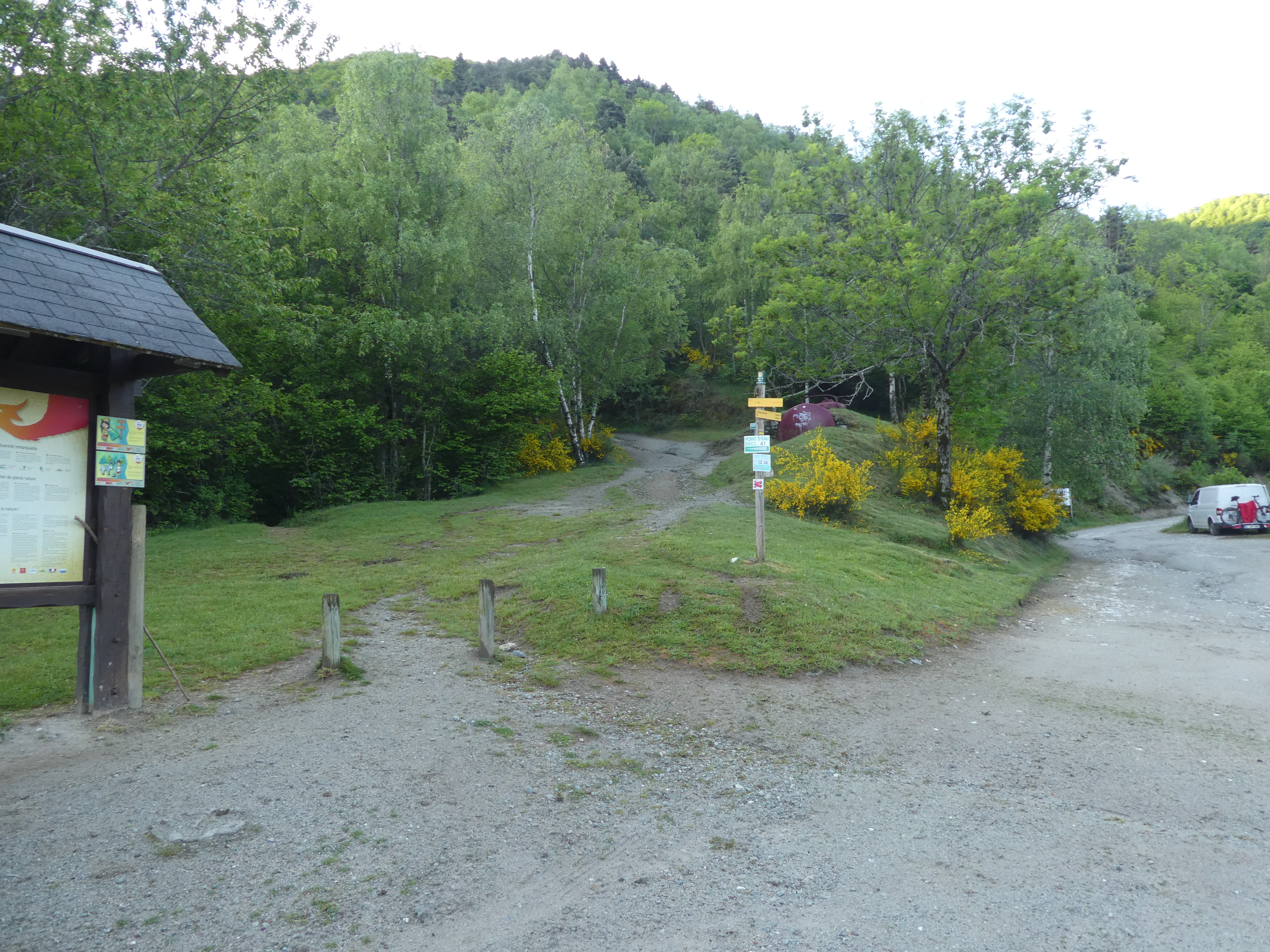 A ce croisement marqué par la présence d'un panneau directionnel et situé juste avant le Parking du Rande (1600 mètres après le précédent) (1509 m), continuer à suivre la large piste partant légèrement sur la gauche direction Coll de Jou