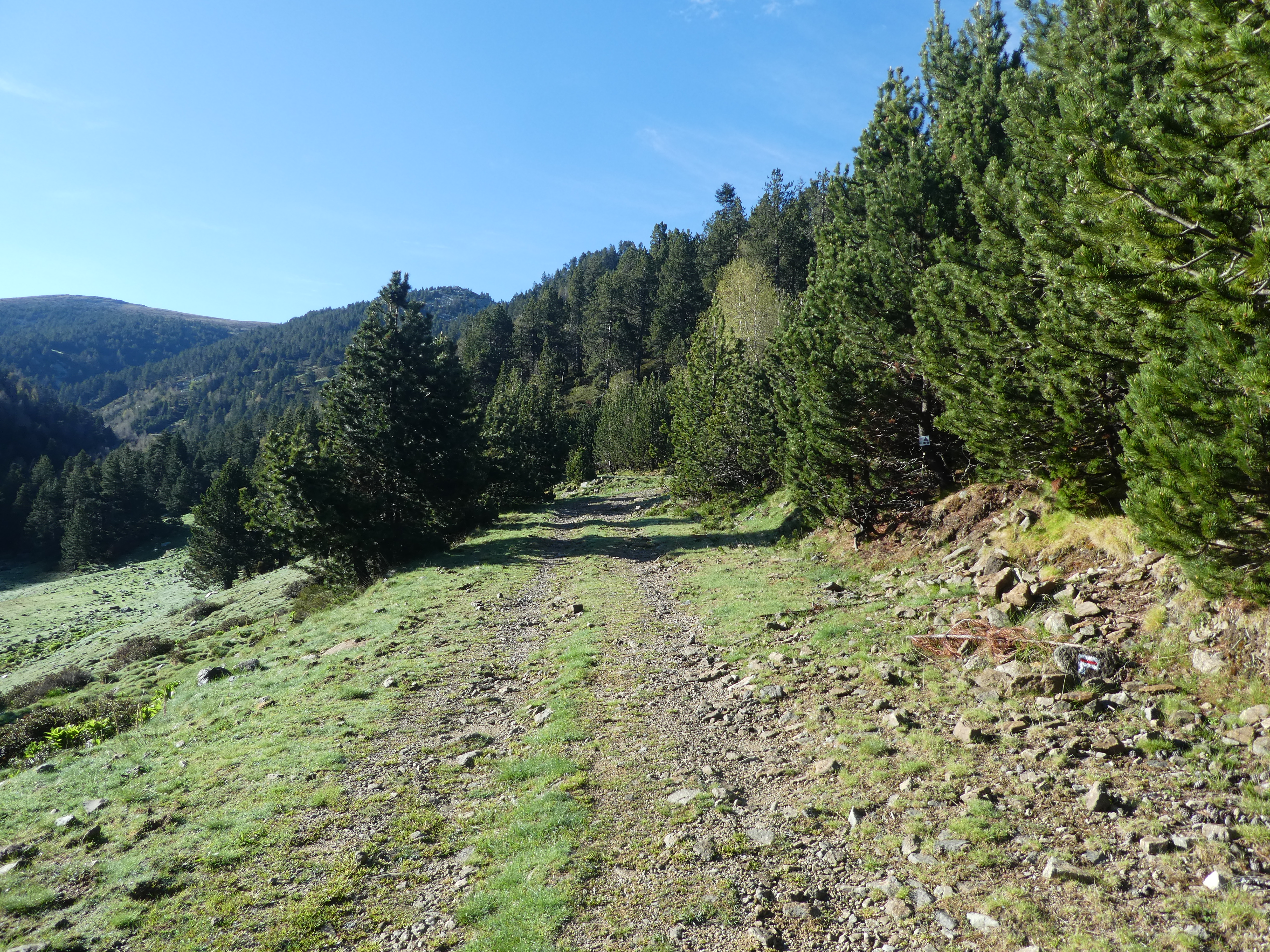 Mariailles (1719 m) : suivre la large piste descendant sur la gauche direction Coll de Jou, aucun balisage dorénavant (pour rappel, l'accès au GR10 est interdit jusqu'au Coll del Cavall Mort en raison de travaux sur la piste forestière)