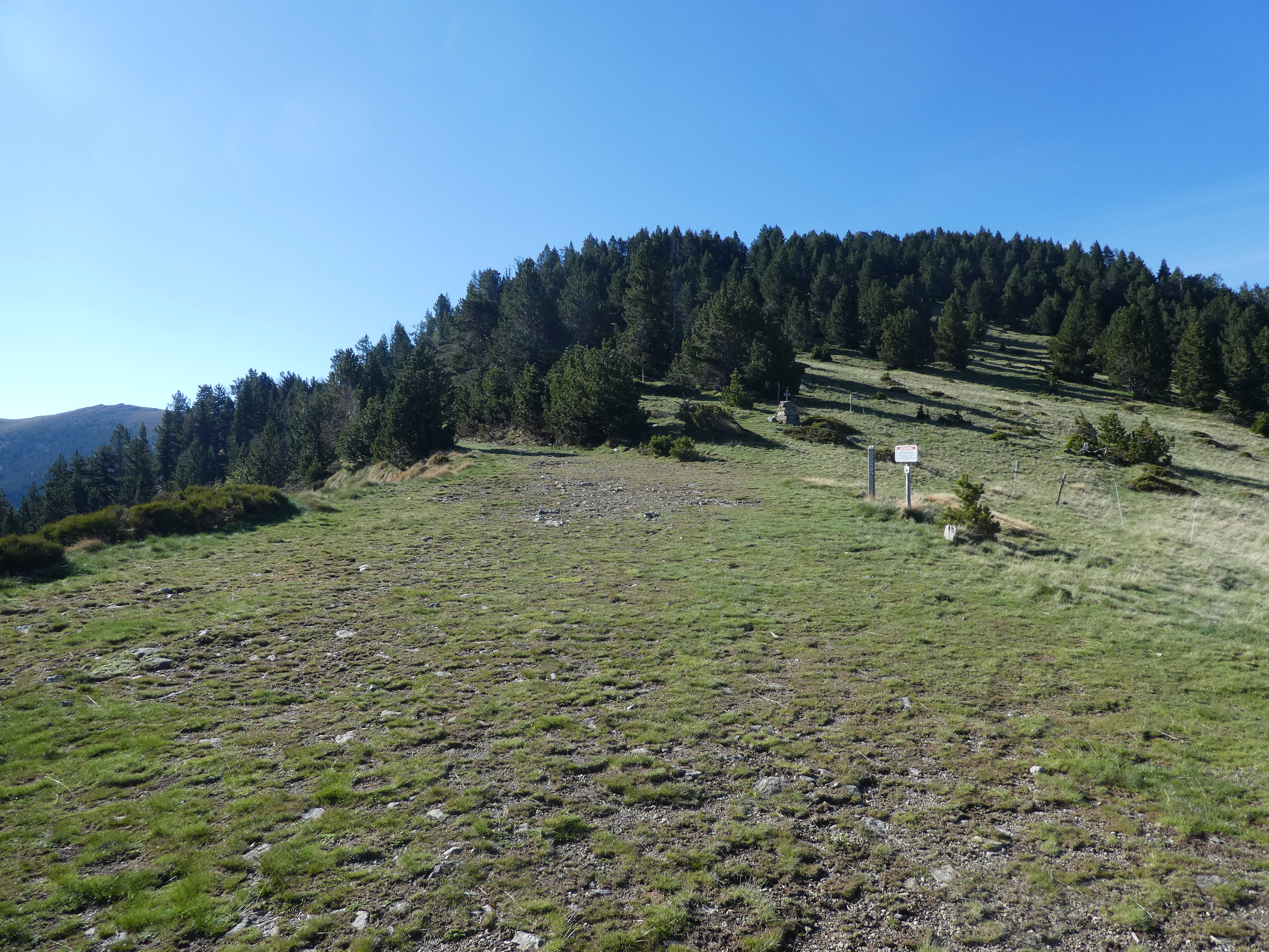 Au niveau de ce cairn (300 mètres après le lieu-dit "Pla Guillem"), quitter le GRP pour monter à vue légèrement sur la gauche vers le sommet non individualisé de la Cim dels Cums direction Cim del Cums, aucun balisage dorénavant