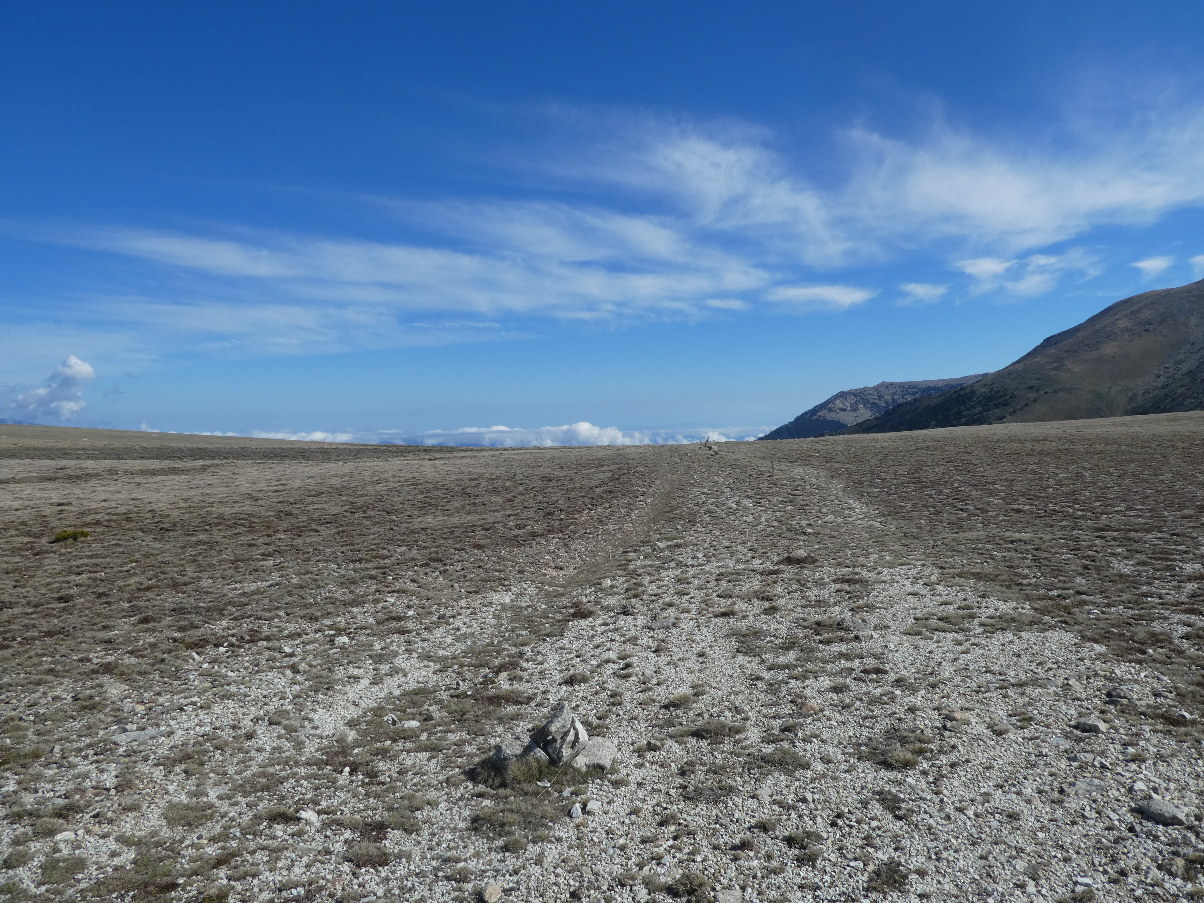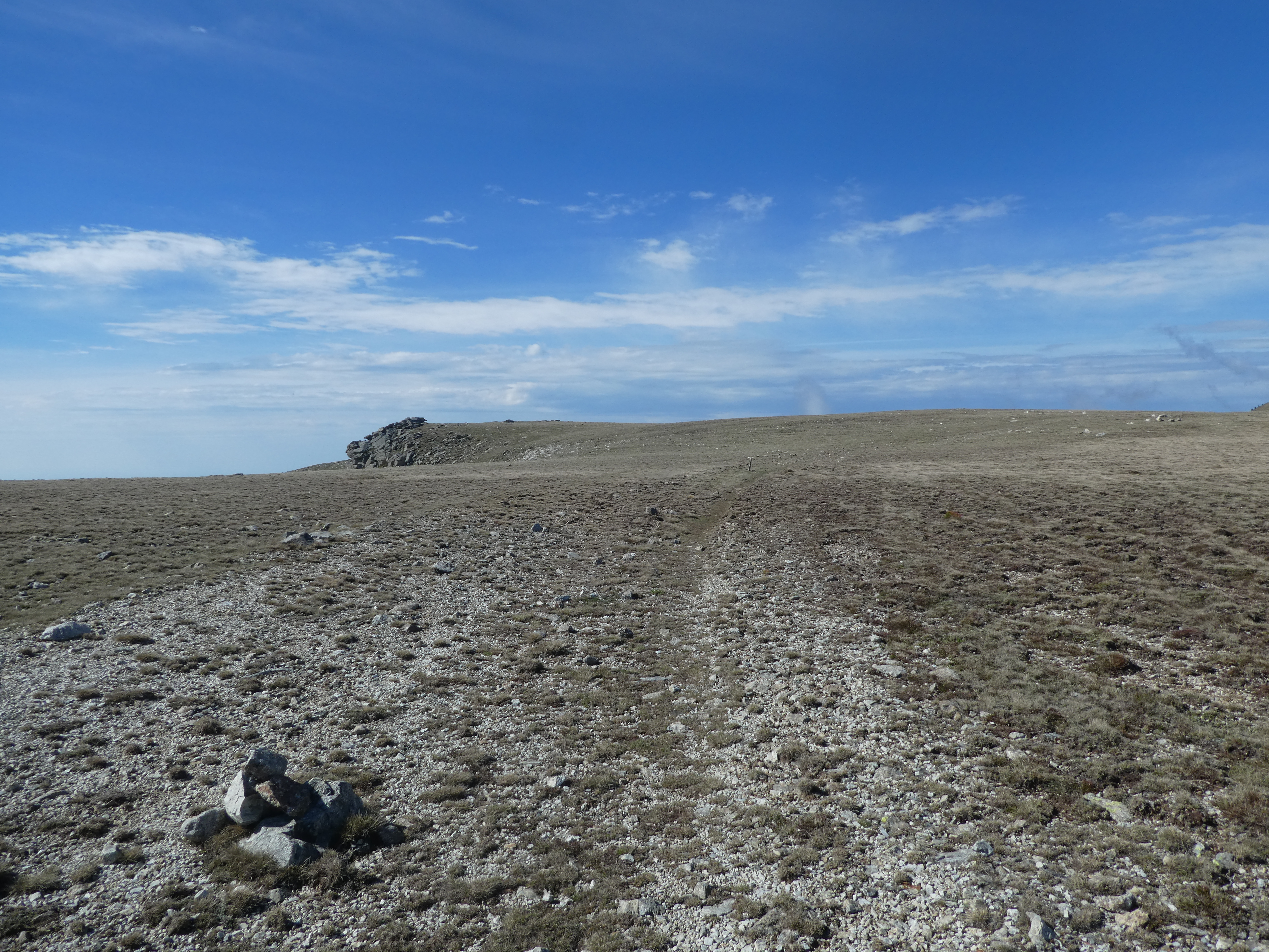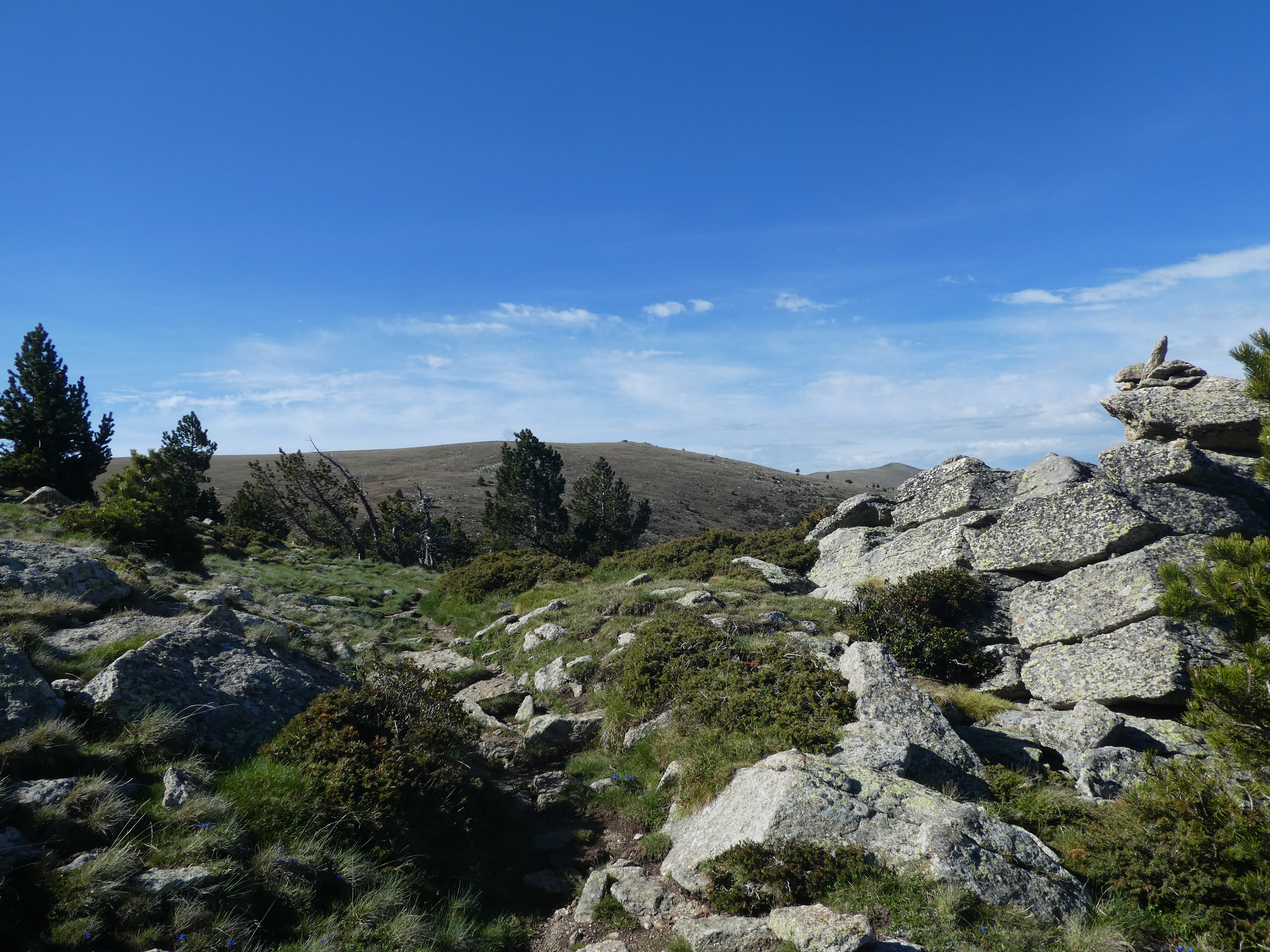 Au niveau de ce cairn inratable situé juste avant l'entrée sur le plateau du Pla Guillem (800 mètres après la Collada de la Roqueta), quitter le GR pour monter à vue sur la gauche direction Pic de la Roqueta, aucun balisage dorénavant