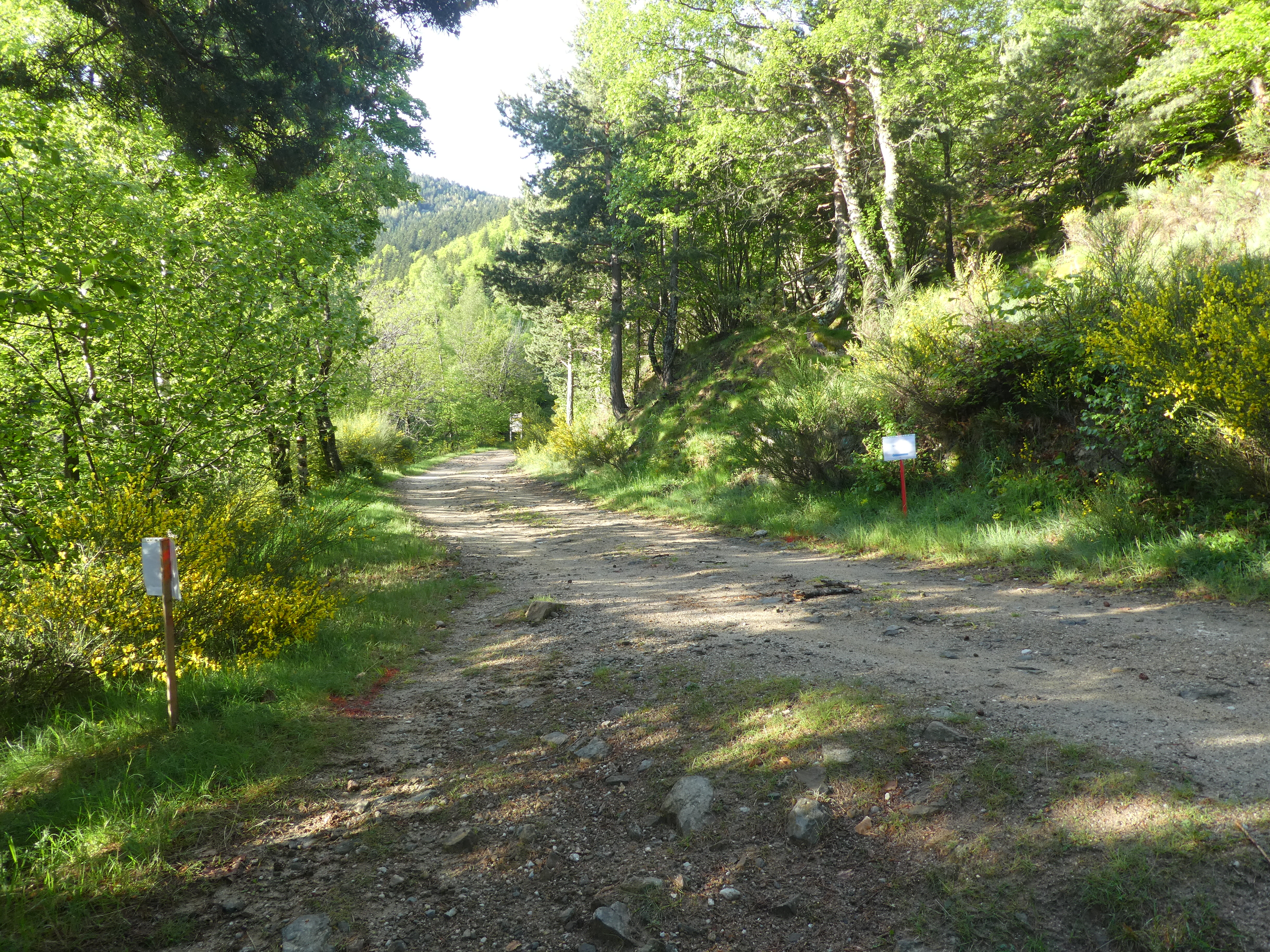 Coll del Cavall Mort (1458 m) : suivre le chemin partant sur la droite direction Refuge de Mariailles (par la piste de Mariailles), aucun balisage dorénavant (des travaux forestiers sont en cours sur la piste qui interdisent l'accès au GR10 jusqu'au Refuge de Mariailles en mai 2021)
