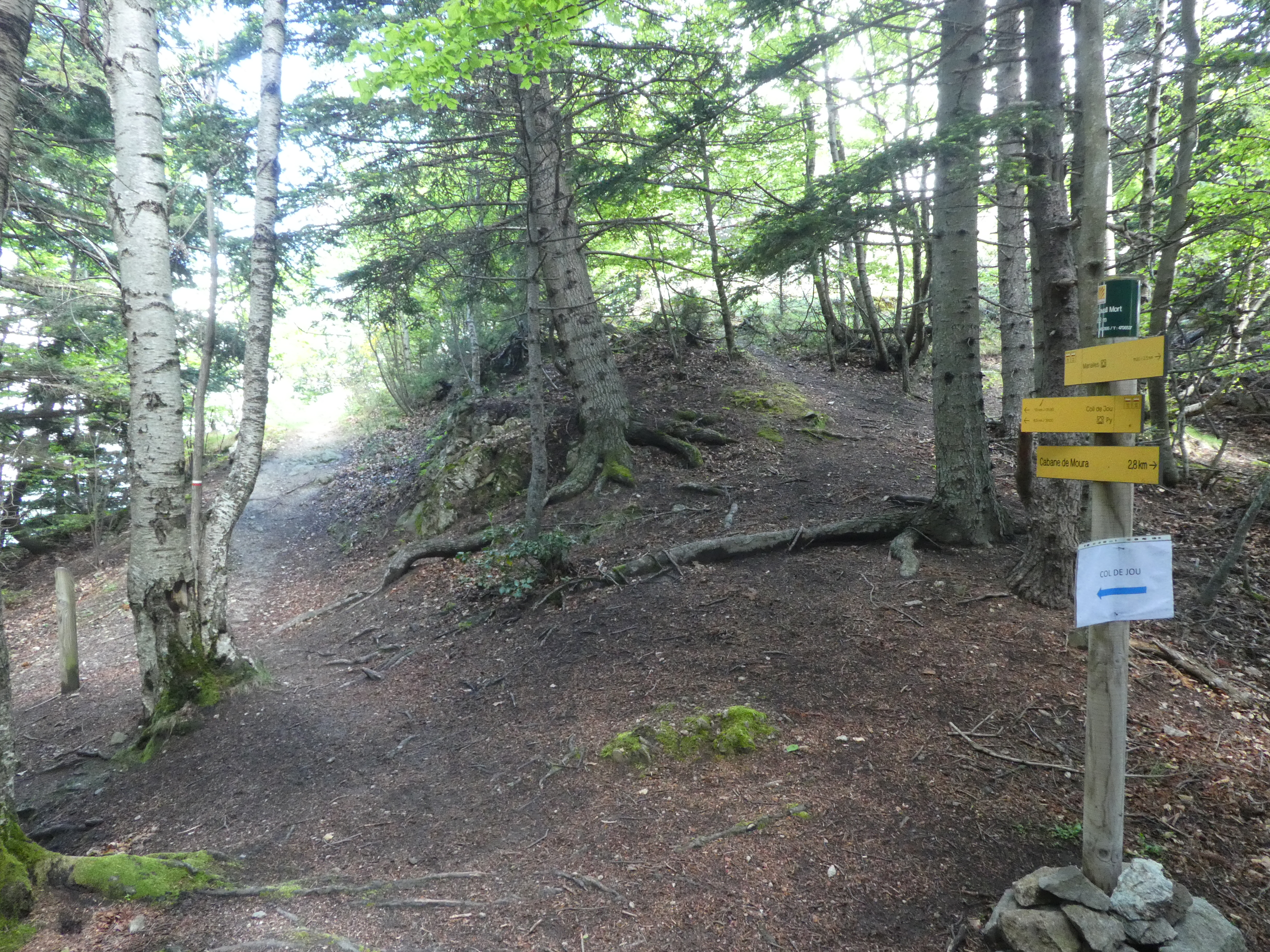 Départ Coll de Jou (1128 m) : suivre le GR10 montant sur la gauche direction Refuge de Mariailles, balisé en rouge et blanc