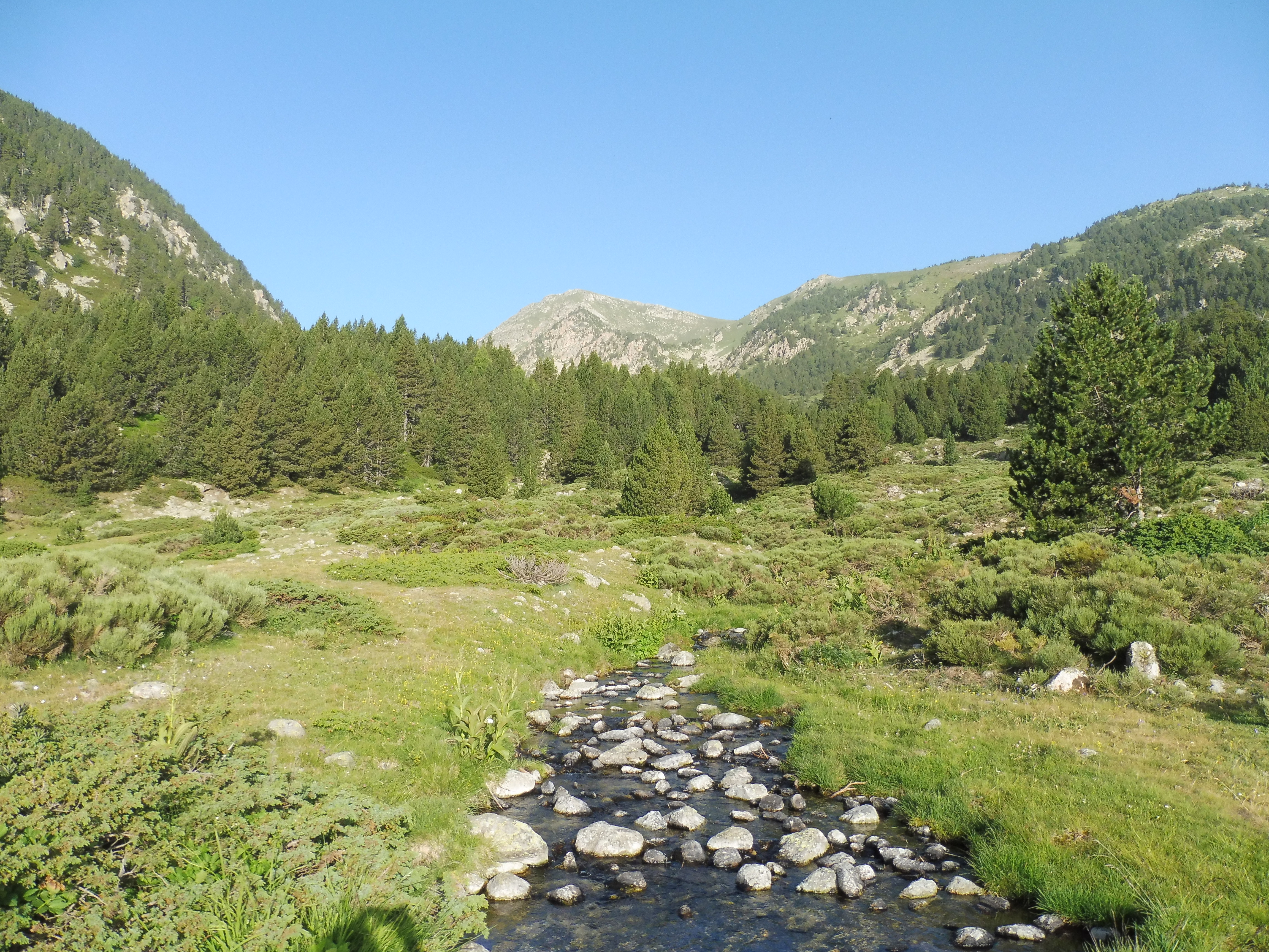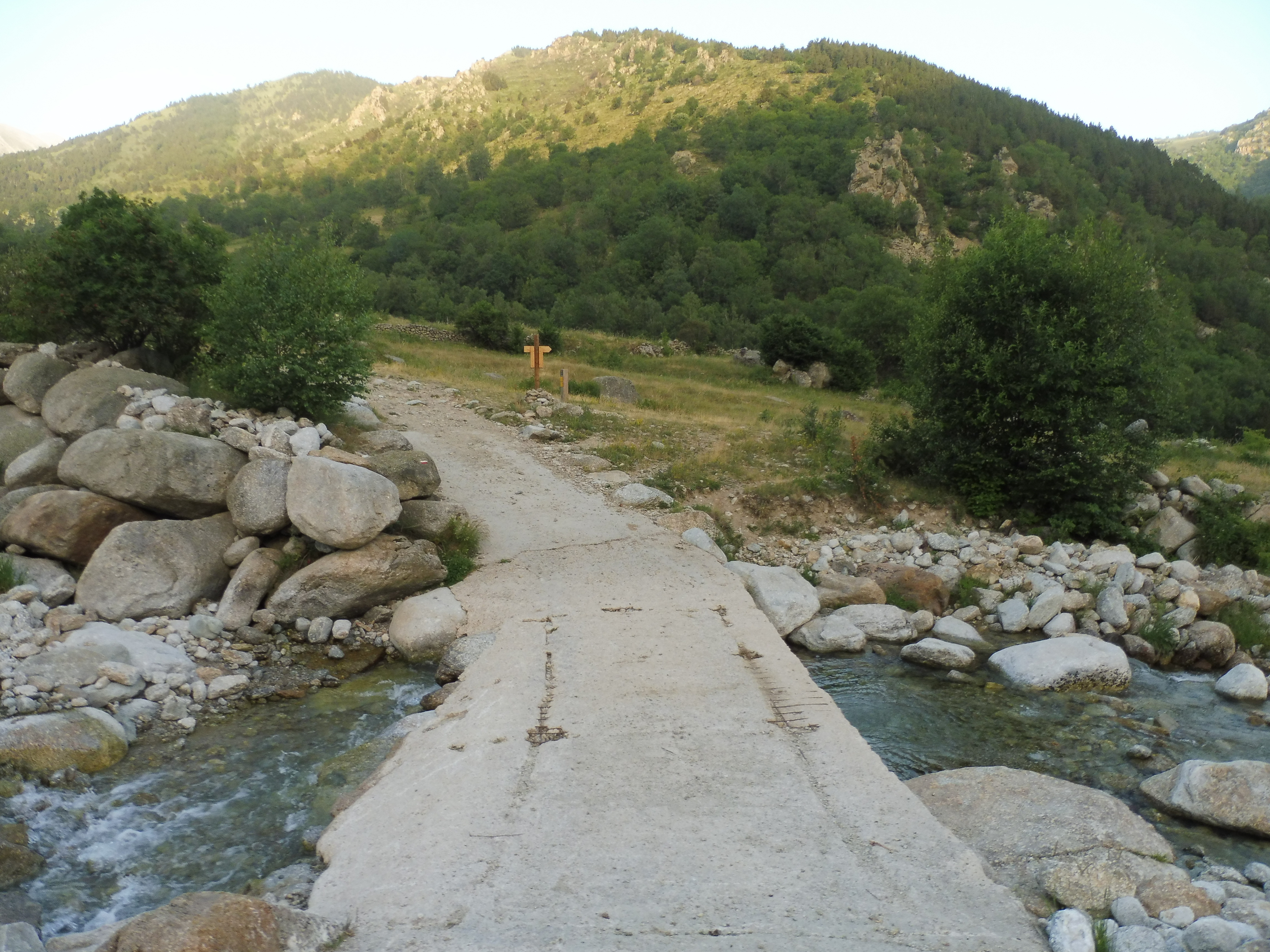 El Ressec (1474 m) : suivre le chemin partant tout droit vers le passage à gué direction Mantet, balisé en rouge et blanc