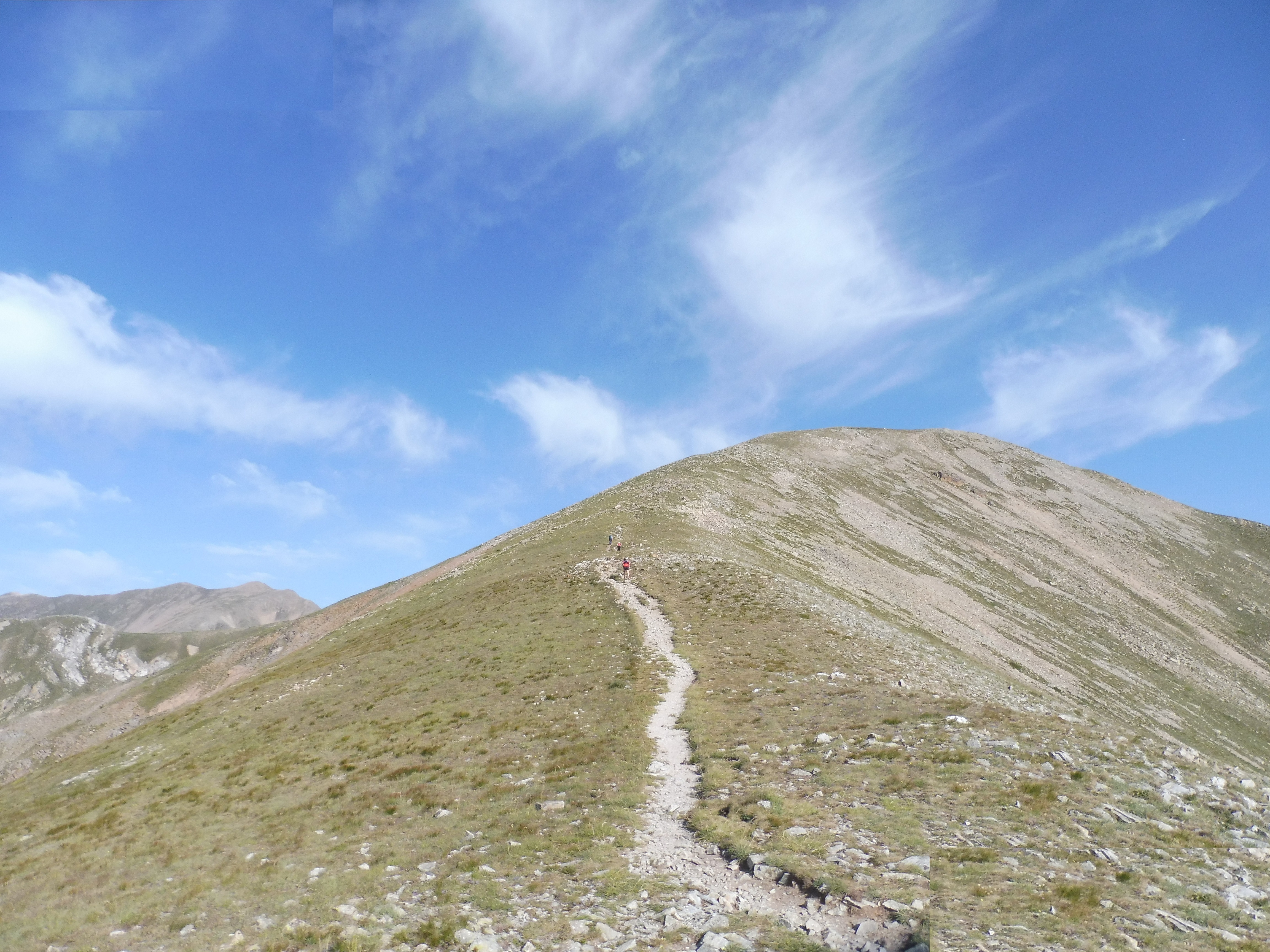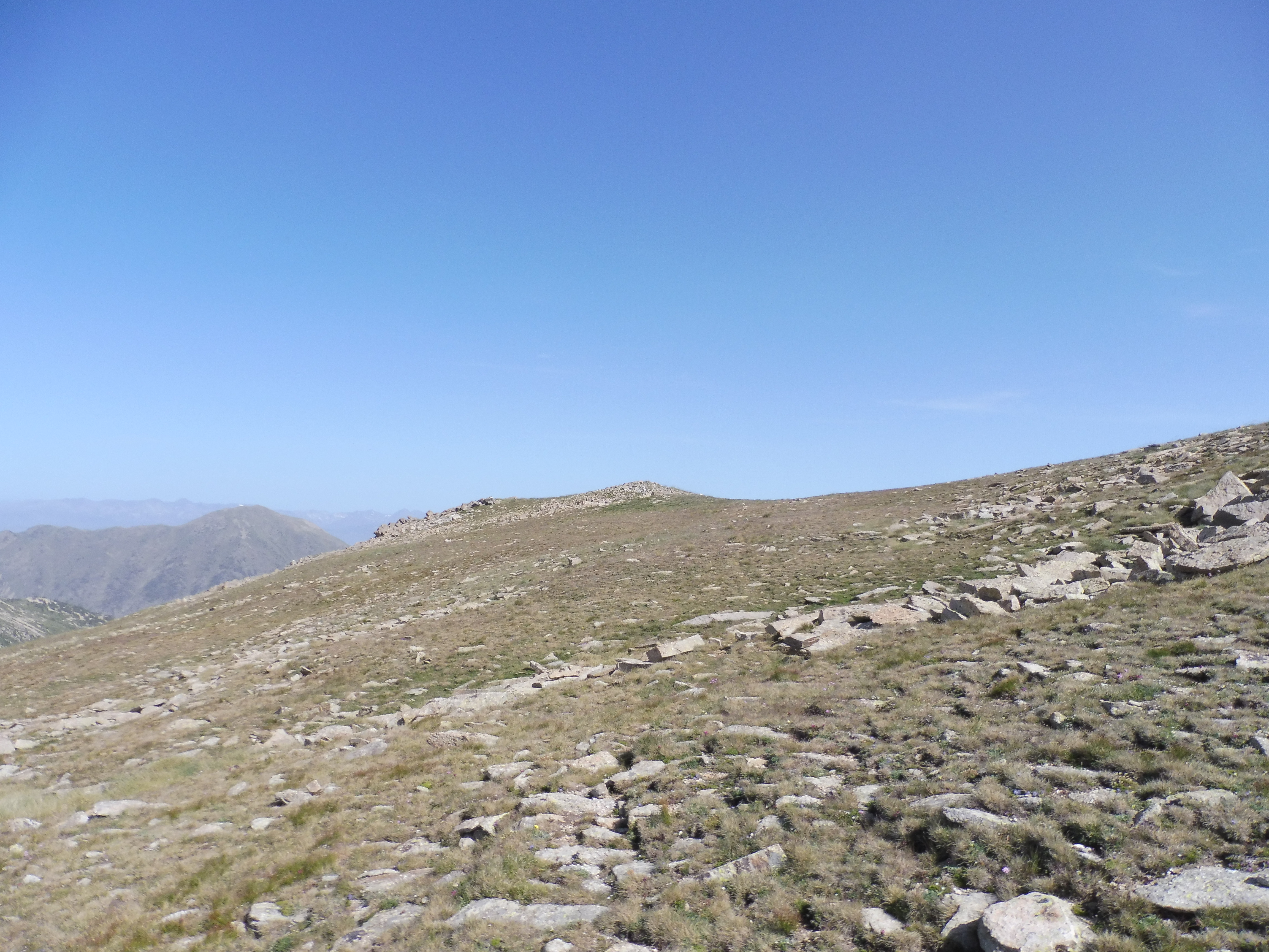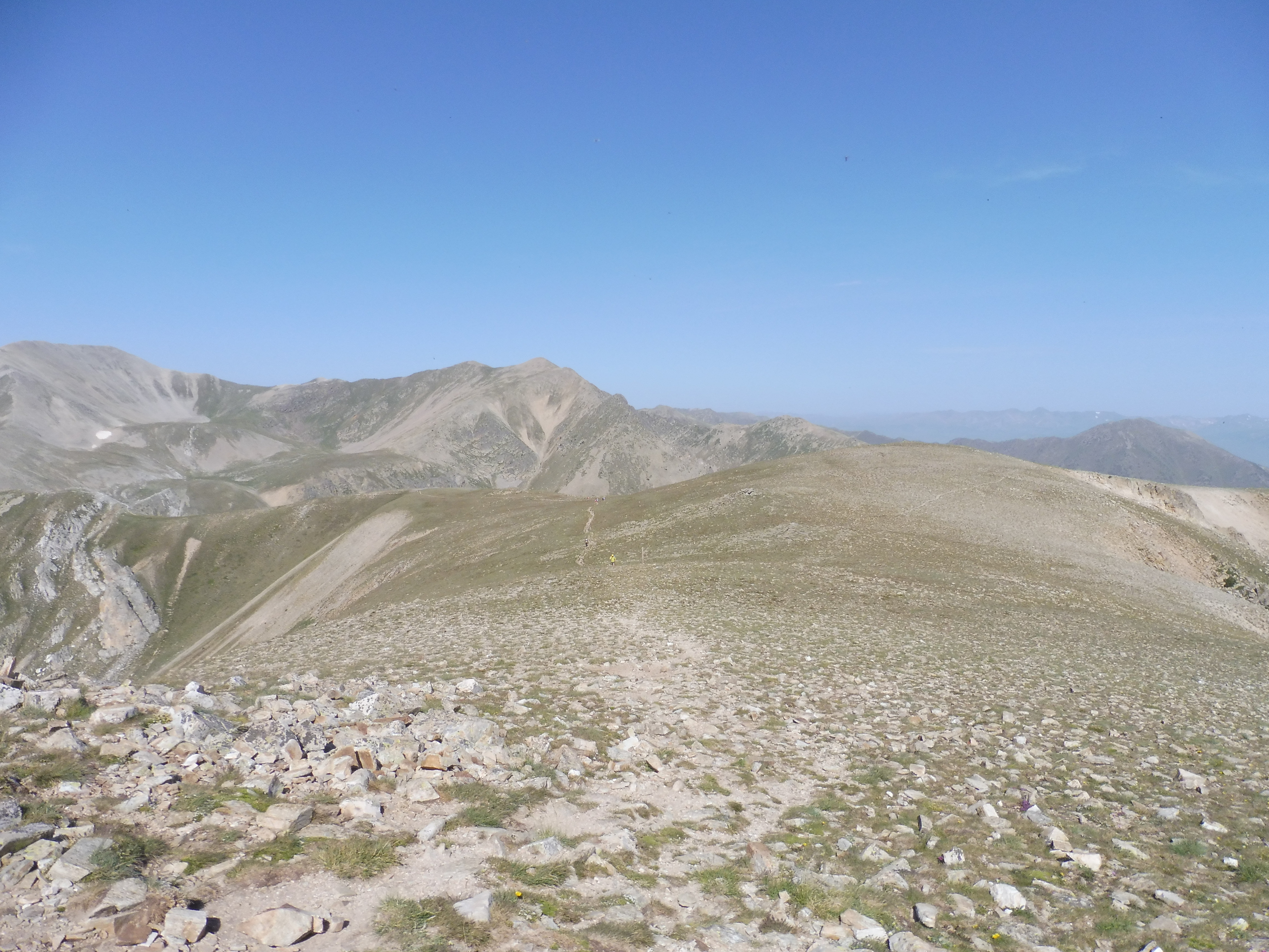 Redescendre du sommet dans le même sens que celui de l'aller en suivant le fil de crête direction Mantet